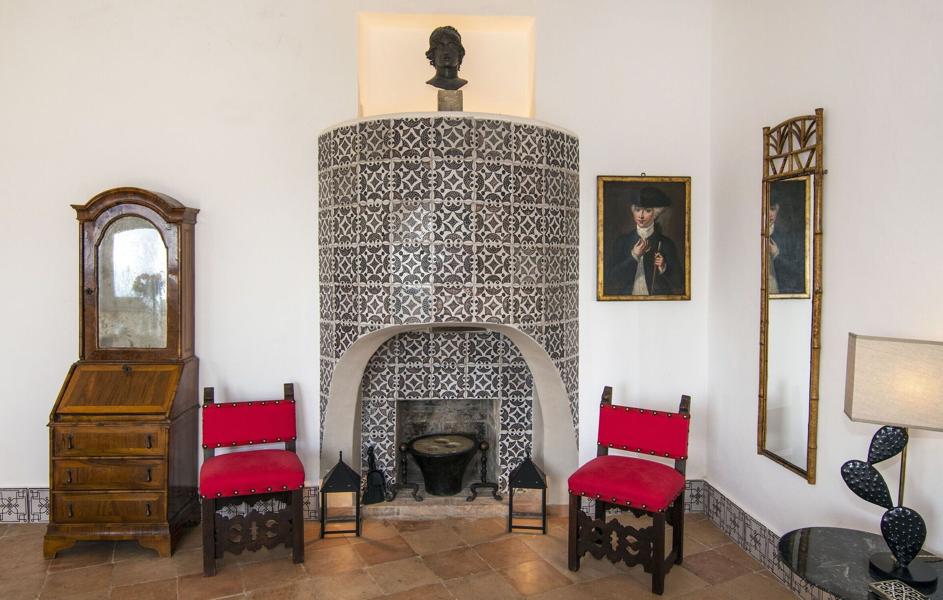 Al primo piano, con accesso da una scala esterna, troverete un ampio soggiorno panoramico con vista mozzafiato. Il comodo spazio è dotato di camino e bagno per gli ospiti.