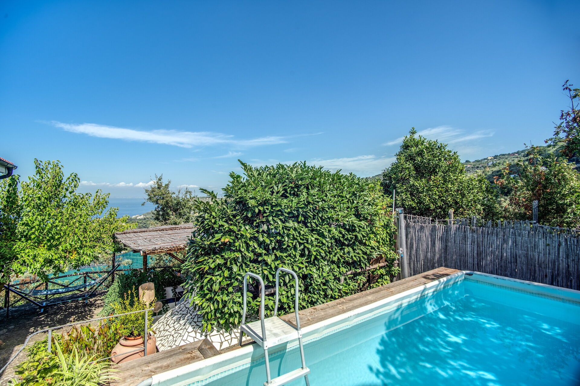 La villa è circondata da giardini mediterranei, con alberi da frutto, ortaggi e una piscina privata. Situata vicino a Sorrento e alla Costiera Amalfitana, offre un'oasi di pace e privacy lontano dal trambusto turistico, con comfort moderni come Wi-Fi, aria condizionata e parcheggio per due auto.