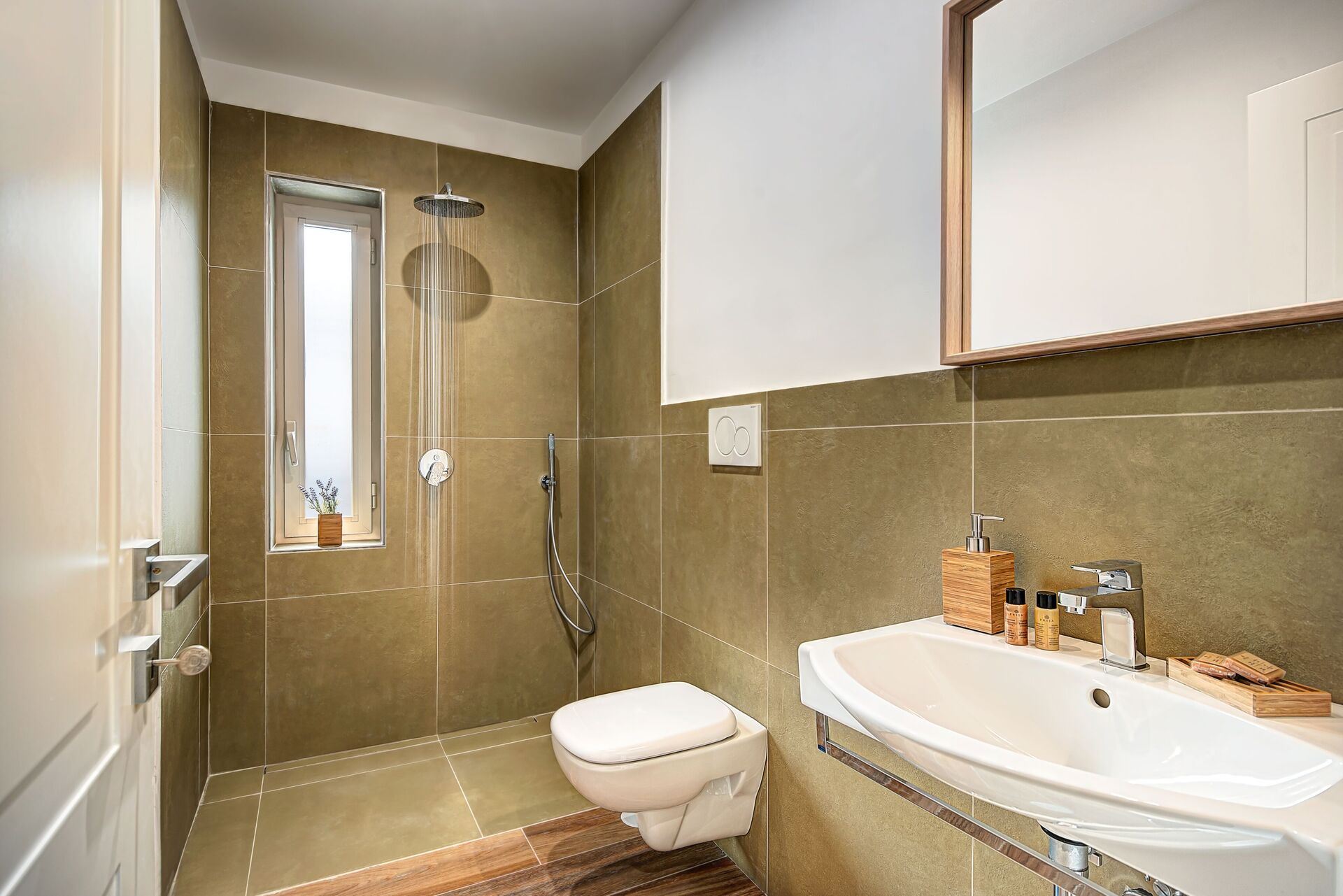 Sorrento Golden Apartment può ospitare fino a otto persone e dispone di tre camere doppie / matrimoniali, ognuna con bagno privato e un comodo divano letto pieghevole. Gli spaziosi bagni con doccia sono dotati di cabina doccia con soffione regolabile a pioggia e doccia a telefono, WC dal design moderno e lavandino. Per coloro che desiderano un totale relax, la camera da letto principale offre una vasca da bagno in camera in modo da poter fare un lungo bagno rilassante, asciugamani e rotolare nel letto.