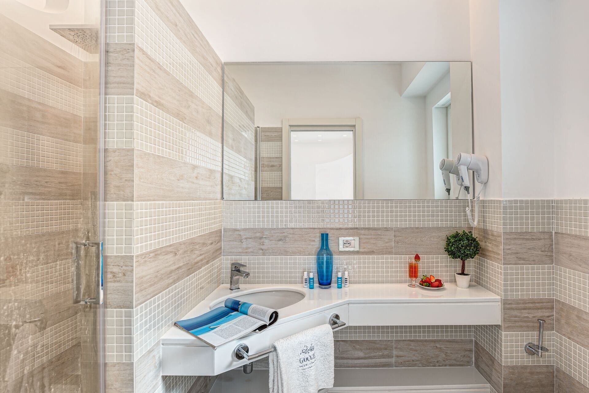 Il bagno principale per gli ospiti è una replica del bagno privato e gode delle stesse funzionalità con cabina doccia, lavabo, bidet e wc.