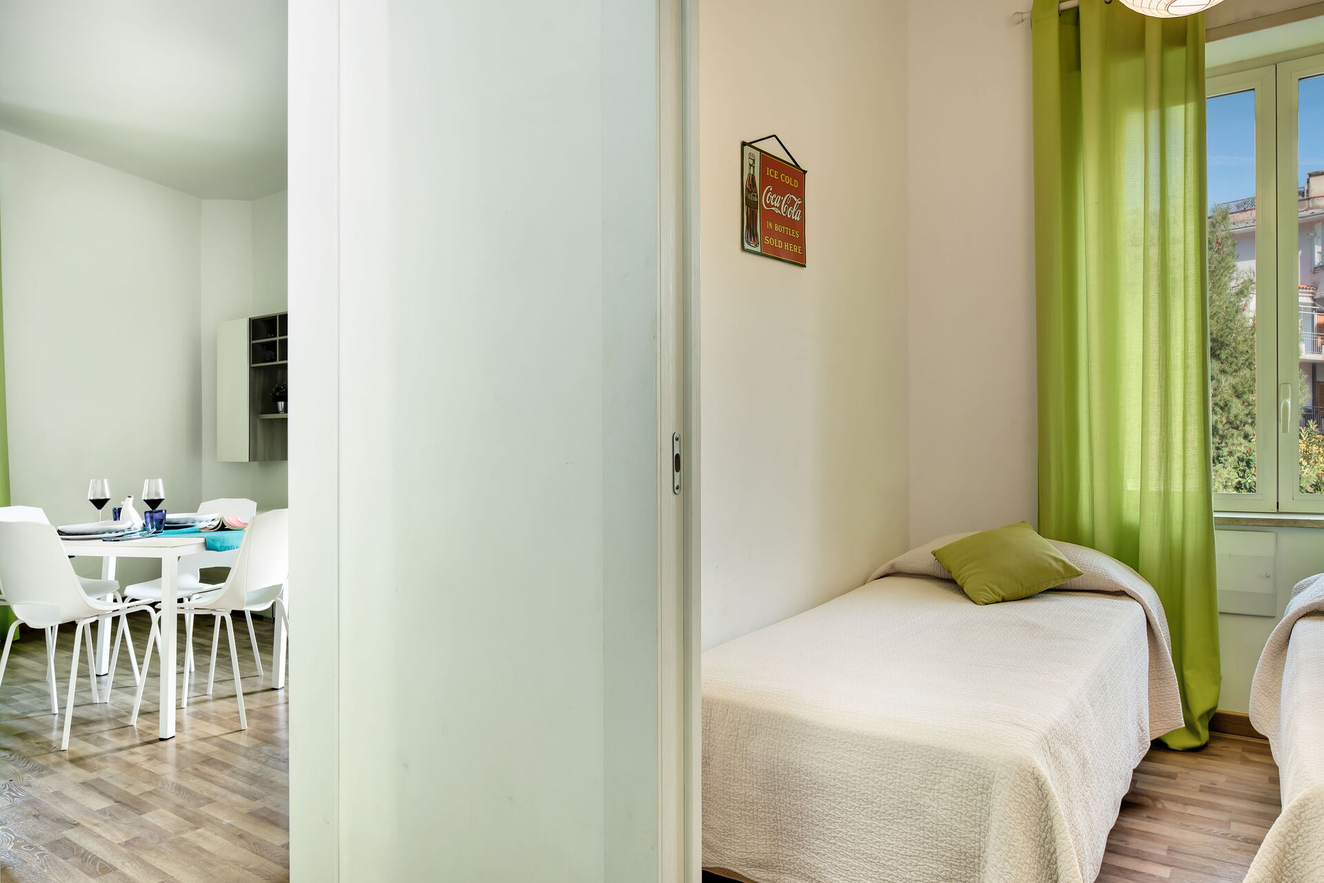 Il tavolo da pranzo può ospitare comodamente 4 persone, mentre un ampio divano a 3 posti può essere goduto dopo una lunga giornata di visite turistiche.