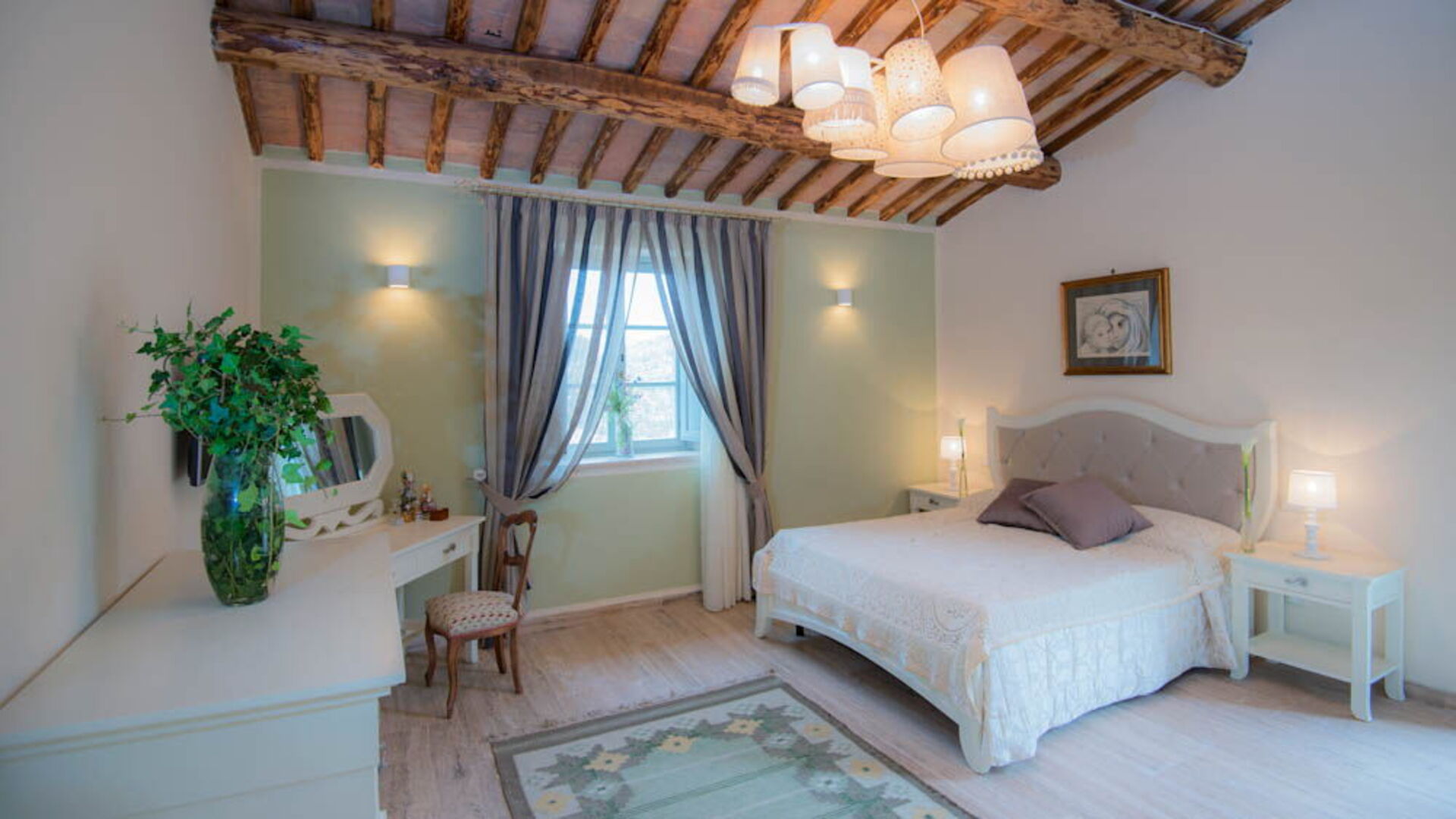 Al primo piano, raggiungibile dall'esterno, si trovano una camera matrimoniale con bagno con vasca e doccia.