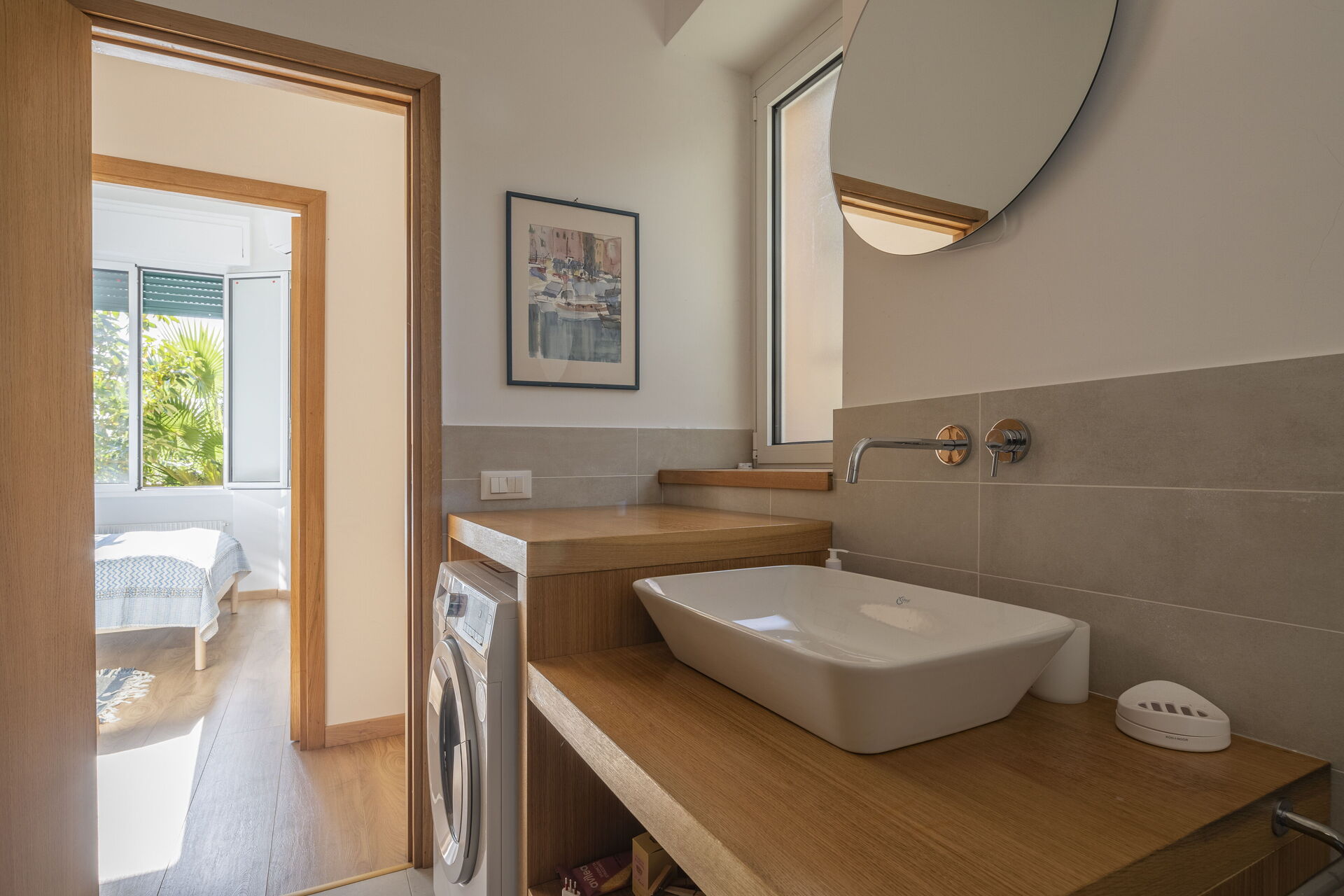 La zona notte è caratterizzata da una camera matrimoniale ben arredata con climatizzatore. Bagno con ampia doccia e lavatrice ad uso degli ospiti.