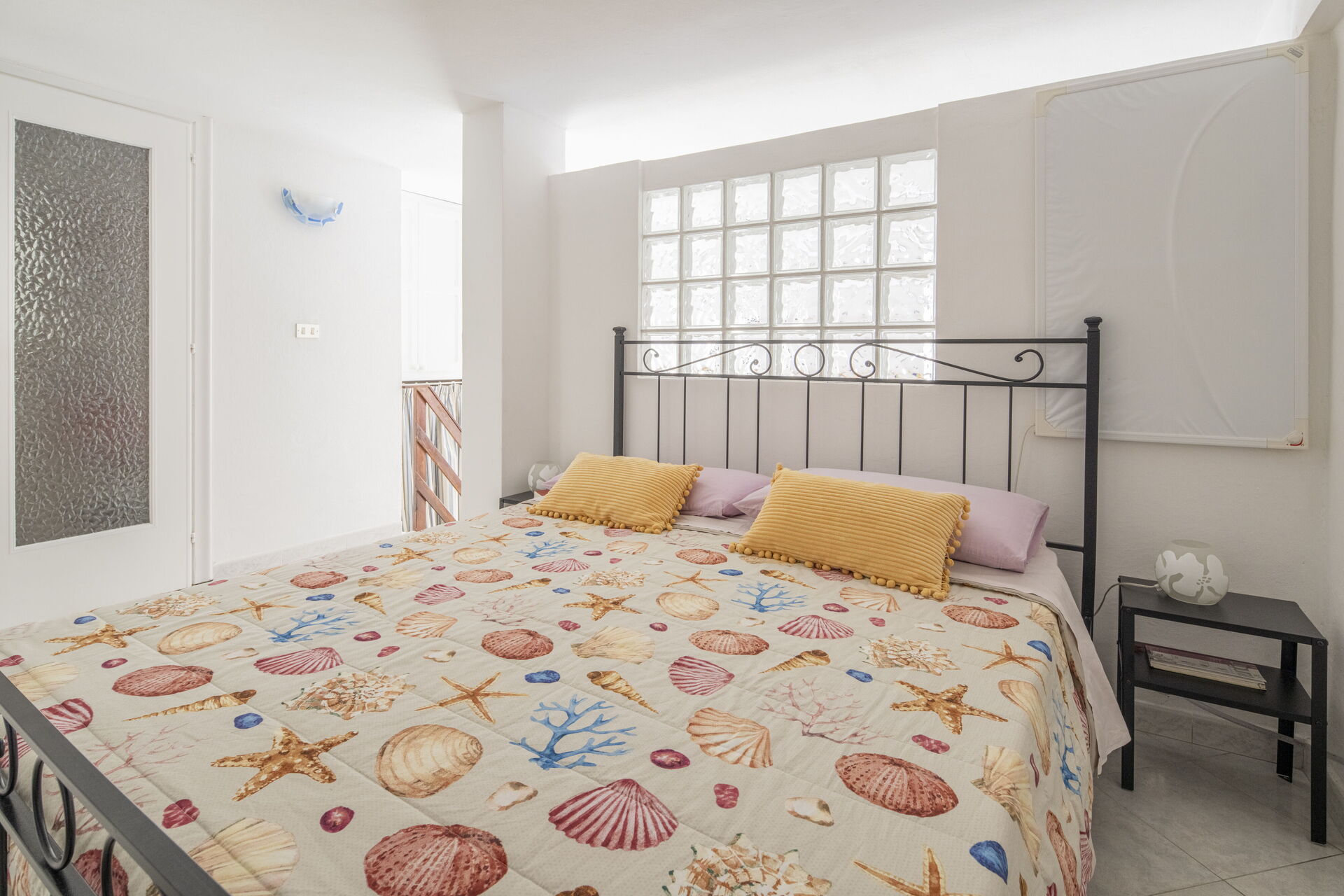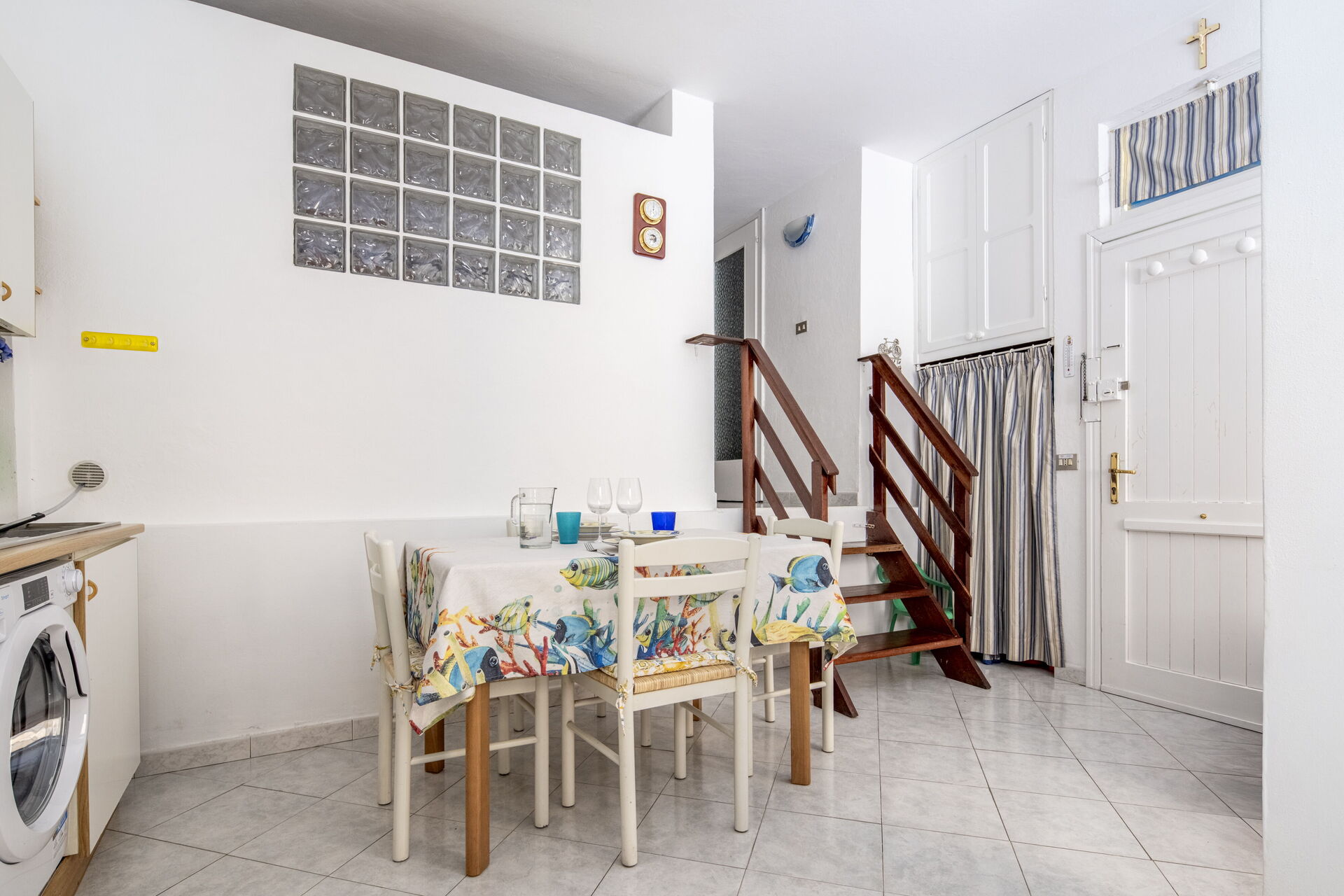 Gli interni sono composti da una cucina-soggiorno: cucina ben attrezzata, frigo, microonde, e soggiorno con 2 divani letto singoli. La zona notte con un letto matrimoniale è leggermente rialzata e separata dalla zona giorno da 3 gradini. All'interno troviamo un bagno con doccia. Nota Bene: non è presente una porta che separa la zona giorno dalla zona notte. Ventilatore a soffitto (presente nella cucina-soggiorno)