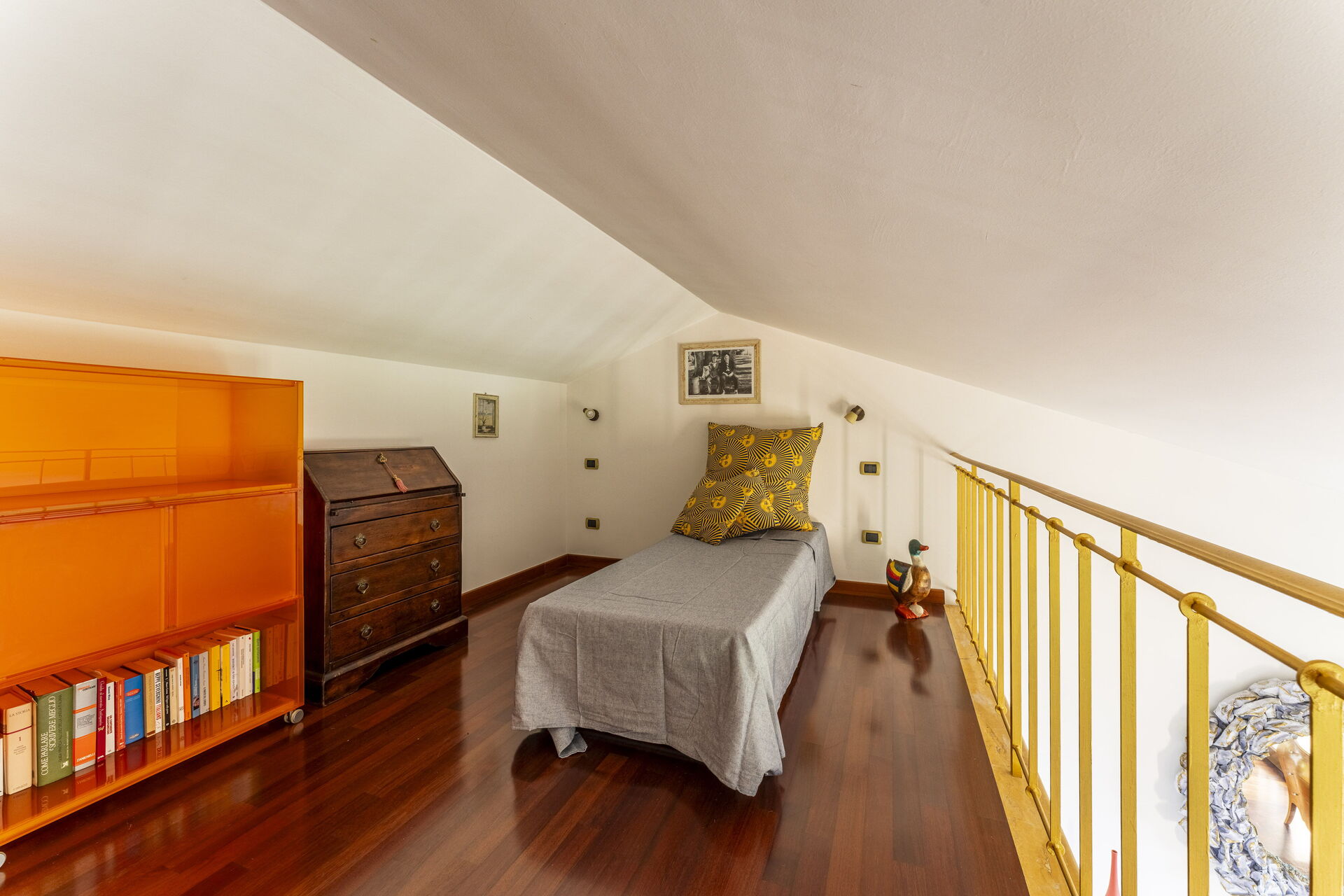 Sulla sinistra del salone, lato opposto all'angolo cottura, c'è l'accesso alla camera da letto matrimoniale, che dispone di una cabina armadio e un altro balcone con vista mare.