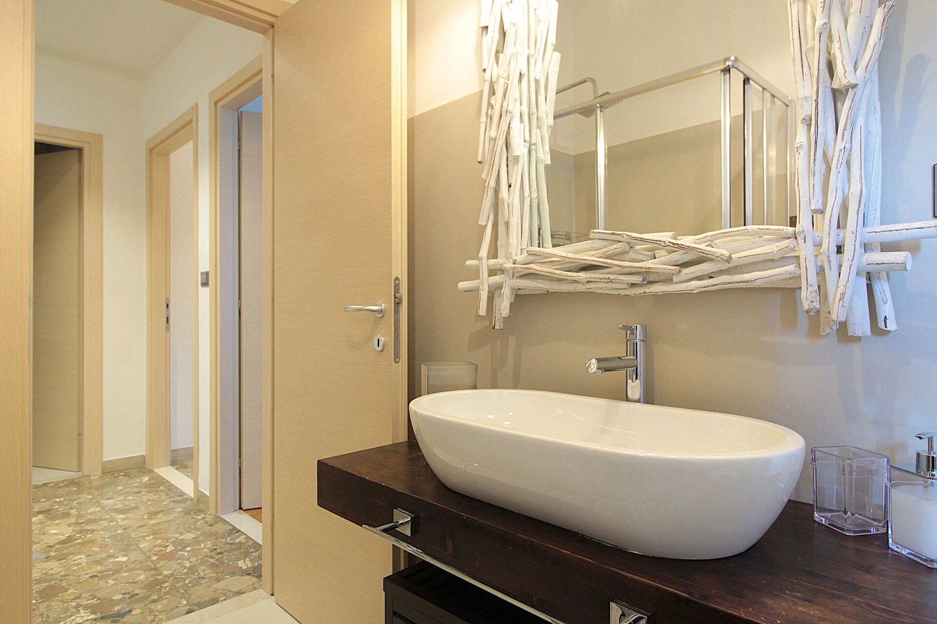 3° piano: soggiorno-pranzo con angolo cottura e divano letto matrimoniale con materasso da 18cm, 2 camere matrimoniali, 2 bagni con doccia, terrazza.