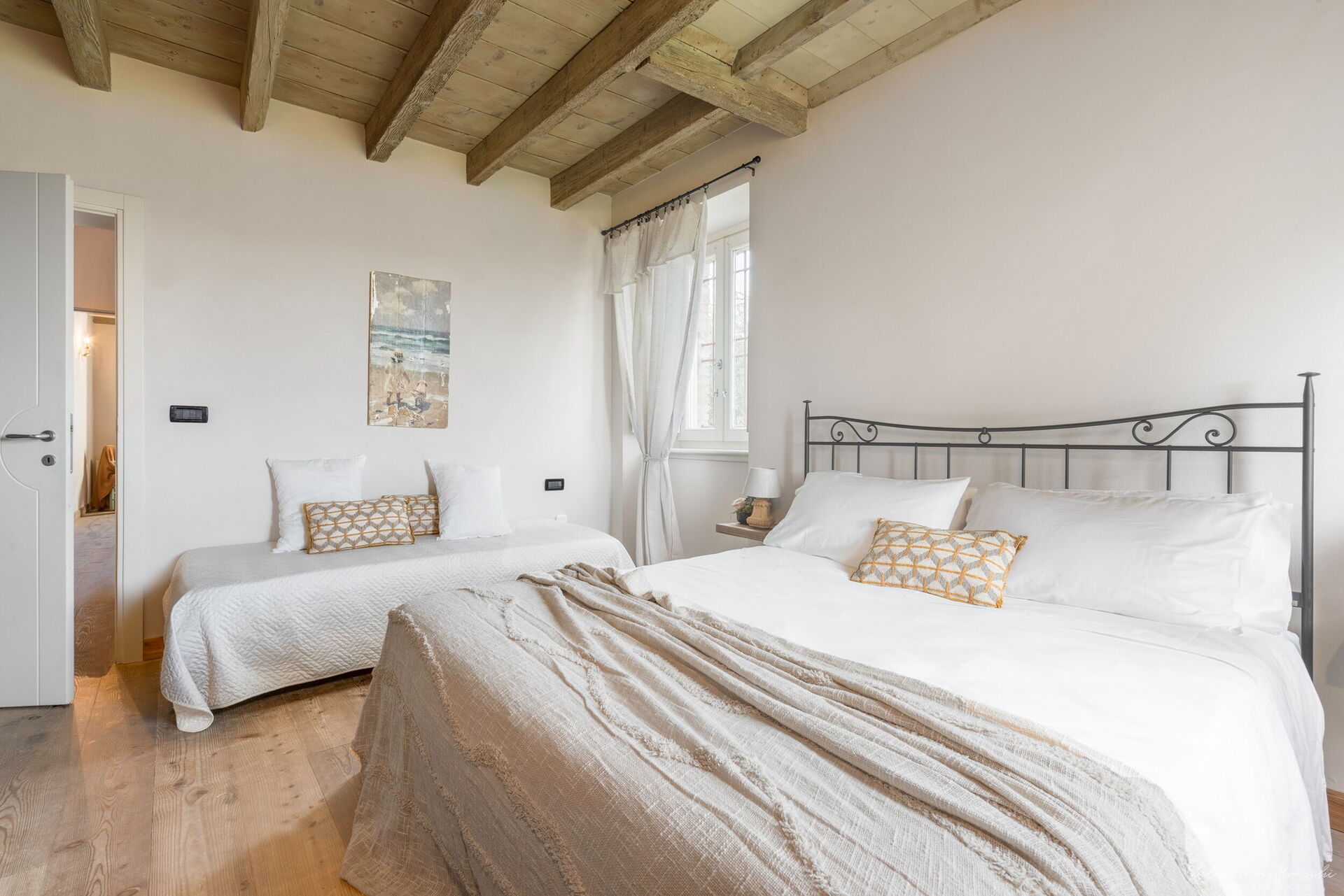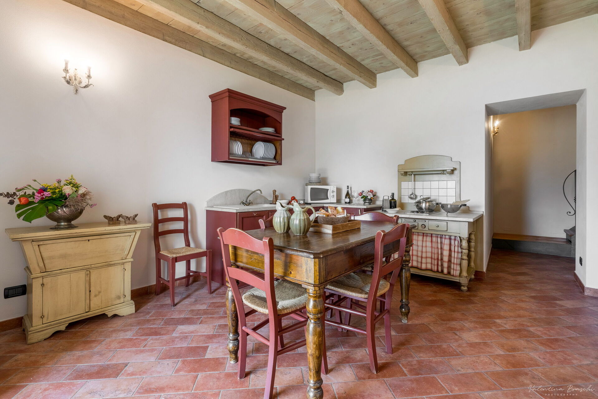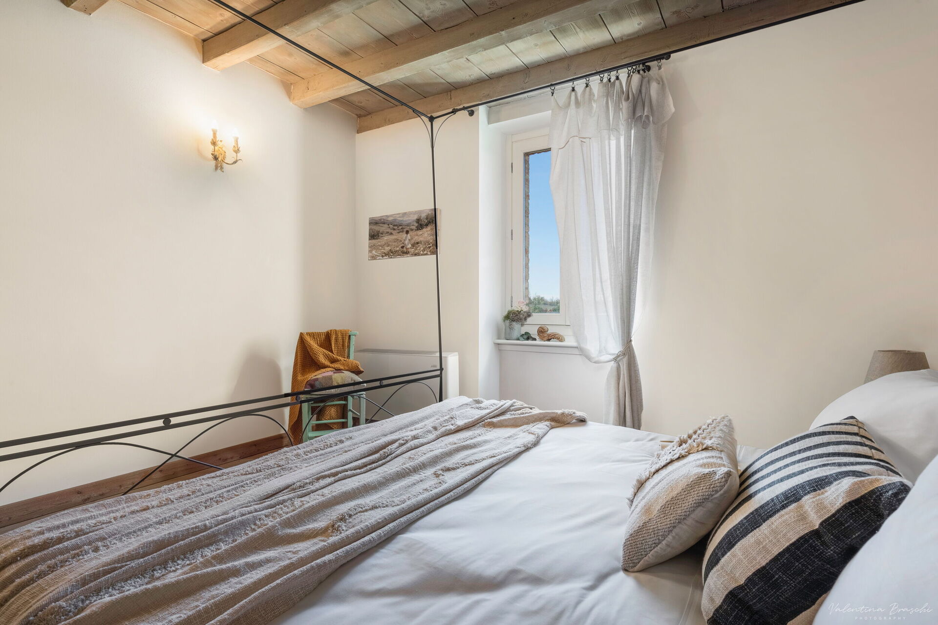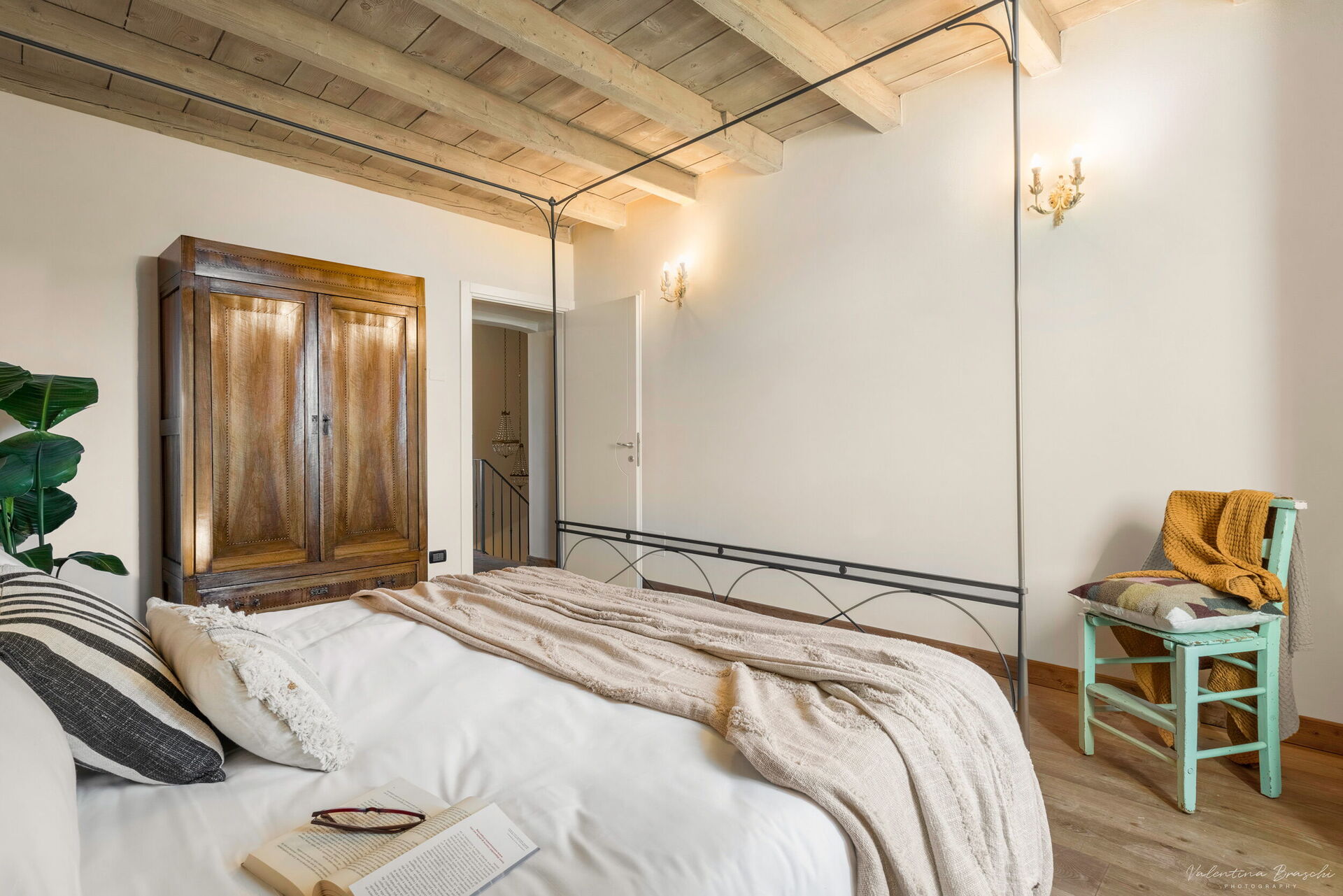 L’appartamento Rosa Canina si sviluppa su due livelli. Al piano terra soggiorno con cucina. Scala interna che conduce al piano superiore. Al primo piano si trova la zona notte: camera matrimoniale. Bagno con doccia. Seconda camera matrimoniale. Bagno privato con doccia.