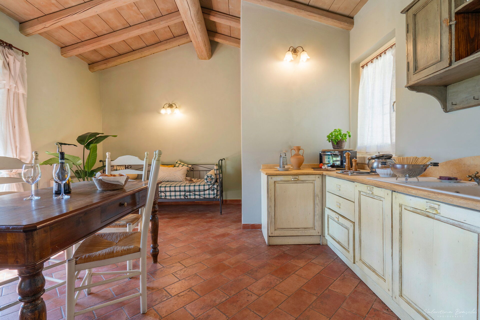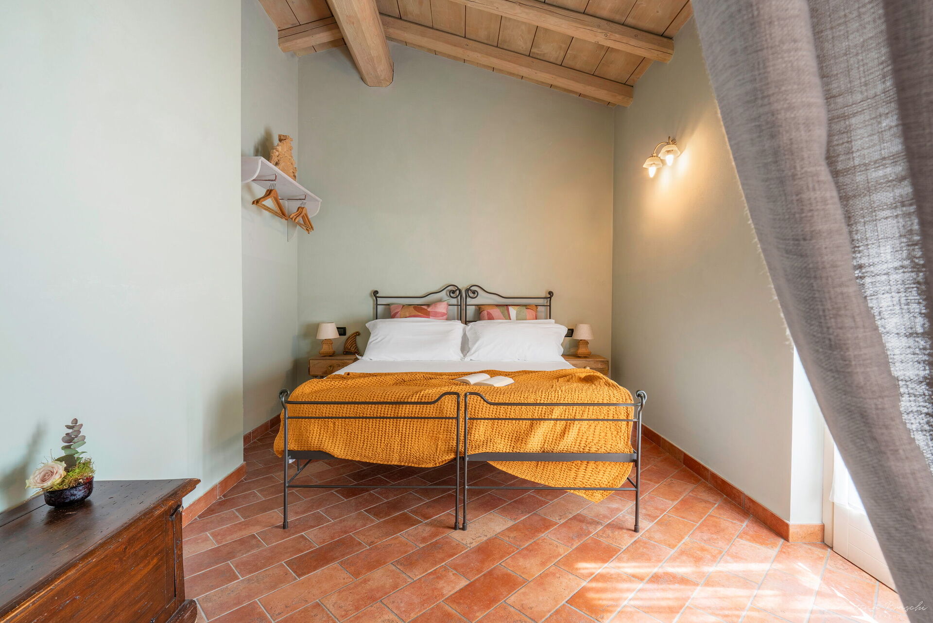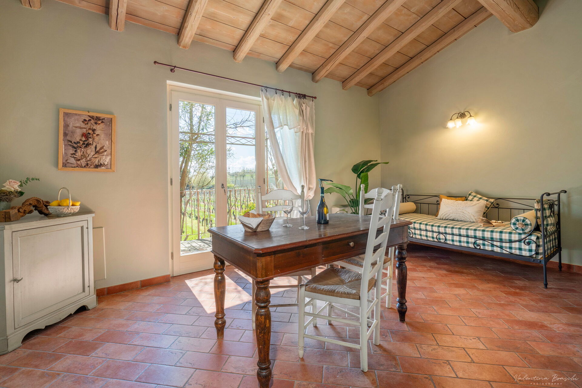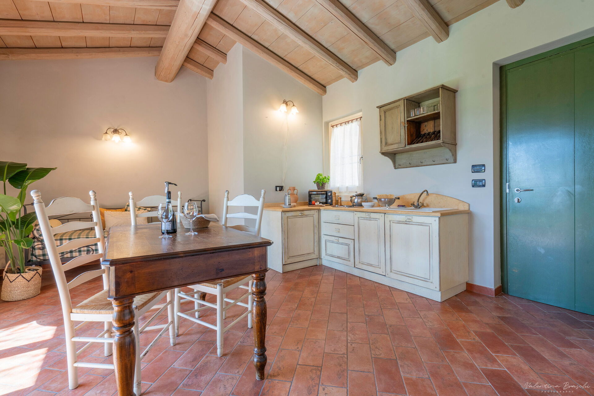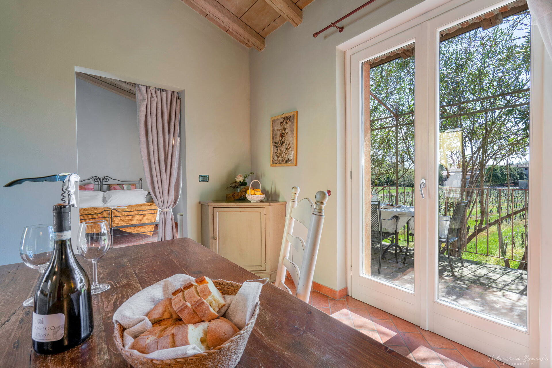 L’appartamento Primula si trova all’interno di una suggestiva corte a ferro di cavallo, in un edificio che un tempo ospitava l’ex scuderia. Ogni alloggio dispone di uno spazio esterno privato con affaccio su una graziosa pergola, arredata con tavolo e sedie. Composto da una camera matrimoniale, bagno con doccia e un soggiorno con cucina a vista, completo di divano.