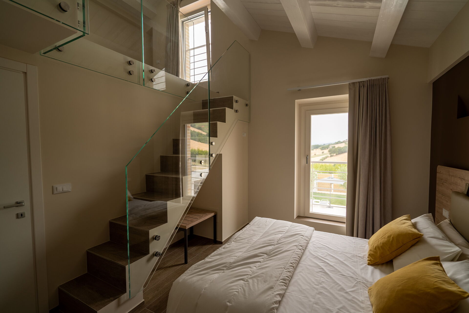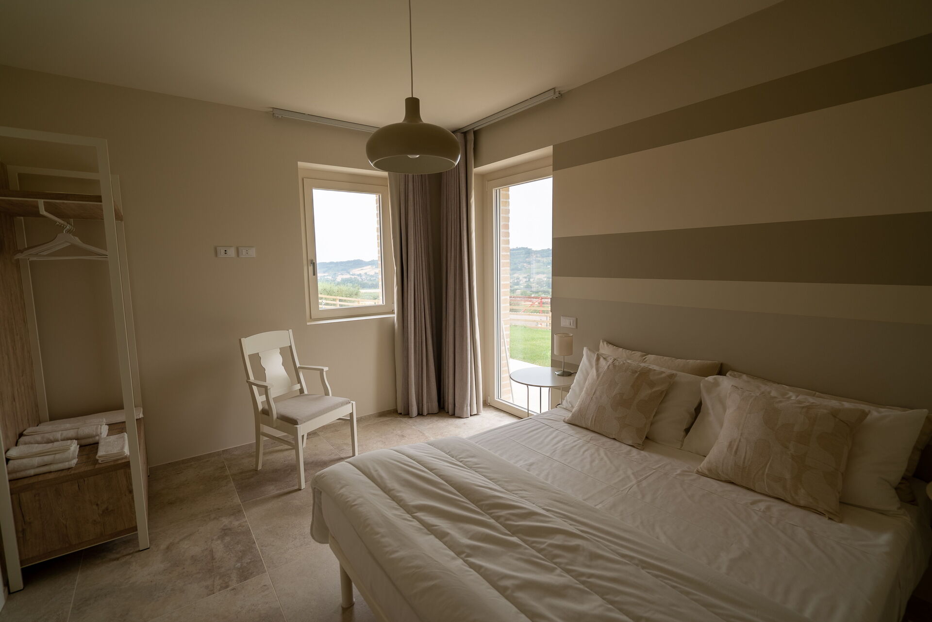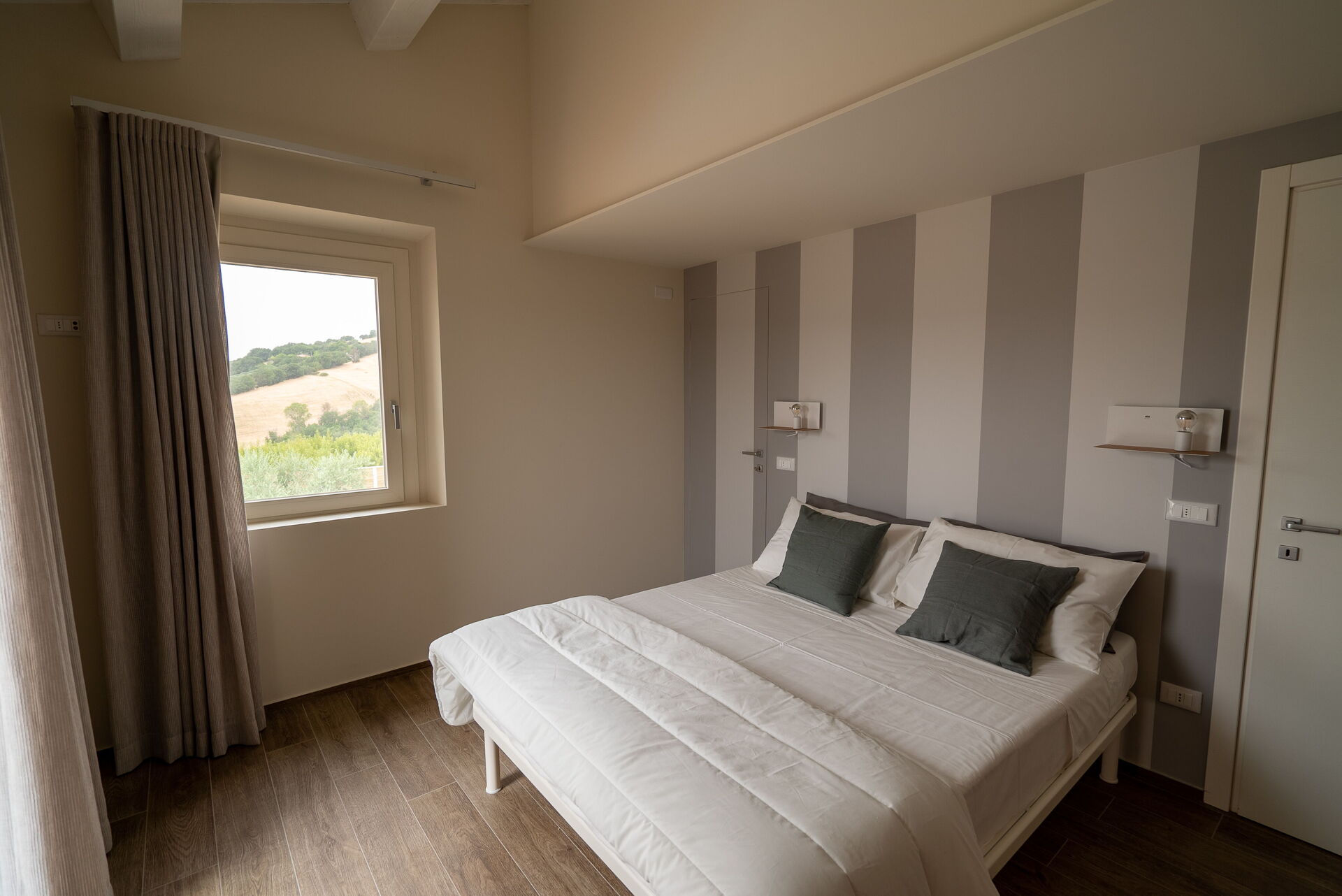 Pulite, molto ampie e luminose grazie alla scelta di colori tenui per le pareti: così si presentano le stanze della zona notte, dove ritroverete la cura per i dettagli negli arredi, che qui è davvero di casa. Grande anche la ricerca per la scelta della biancheria e dei tendaggi.