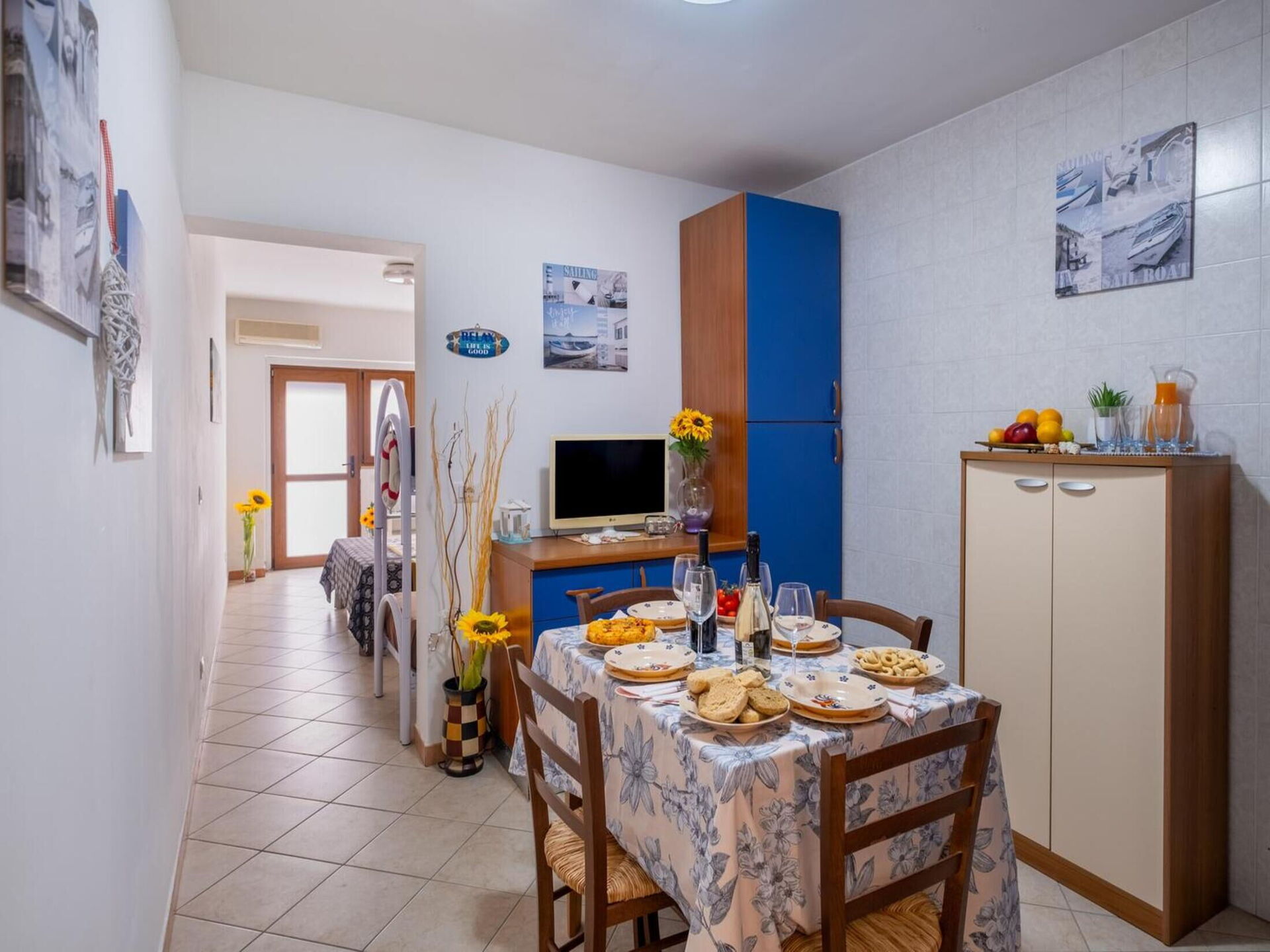 Interni accoglienti in stile marinaro con finiture di pregio, gli spazi sono suddivisi in una camera da letto matrimoniale. Ampia zona living dov'è possibile aggiungere una brandina aggiuntiva. Cucina completamente attrezzata con frigo, forno e tv. Bagno ampio con doccia e bidet. Aria condizionata e wifi a disposizione.