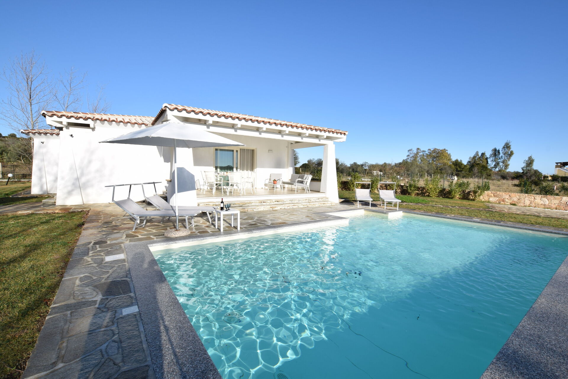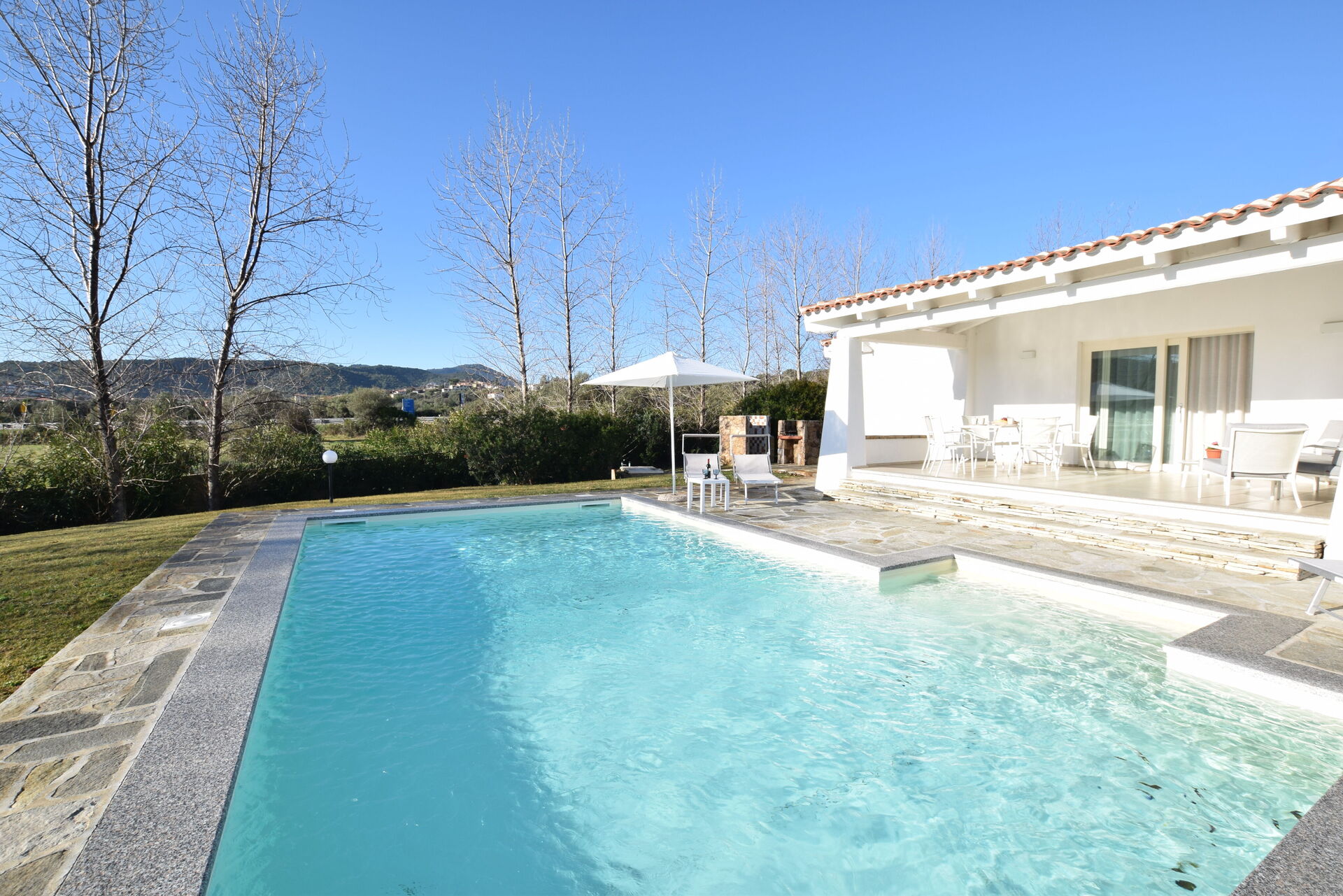 Di recente costruzione, Villa Helios è una moderna villa sita in Budoni, uno dei principali centri turistici della Sardegna orientale, riconosciuta Bandiera Blu 2023.