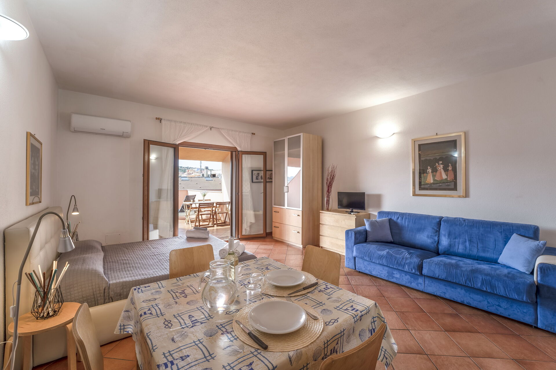 Aria condizionata, Cucina ben attrezzata, Forno, Freezer, Frigo, Internet WiFi, Letto matrimoniale, Piano Cottura, Tavolo da pranzo, Televisione, Microonde, Divano letto matrimoniale