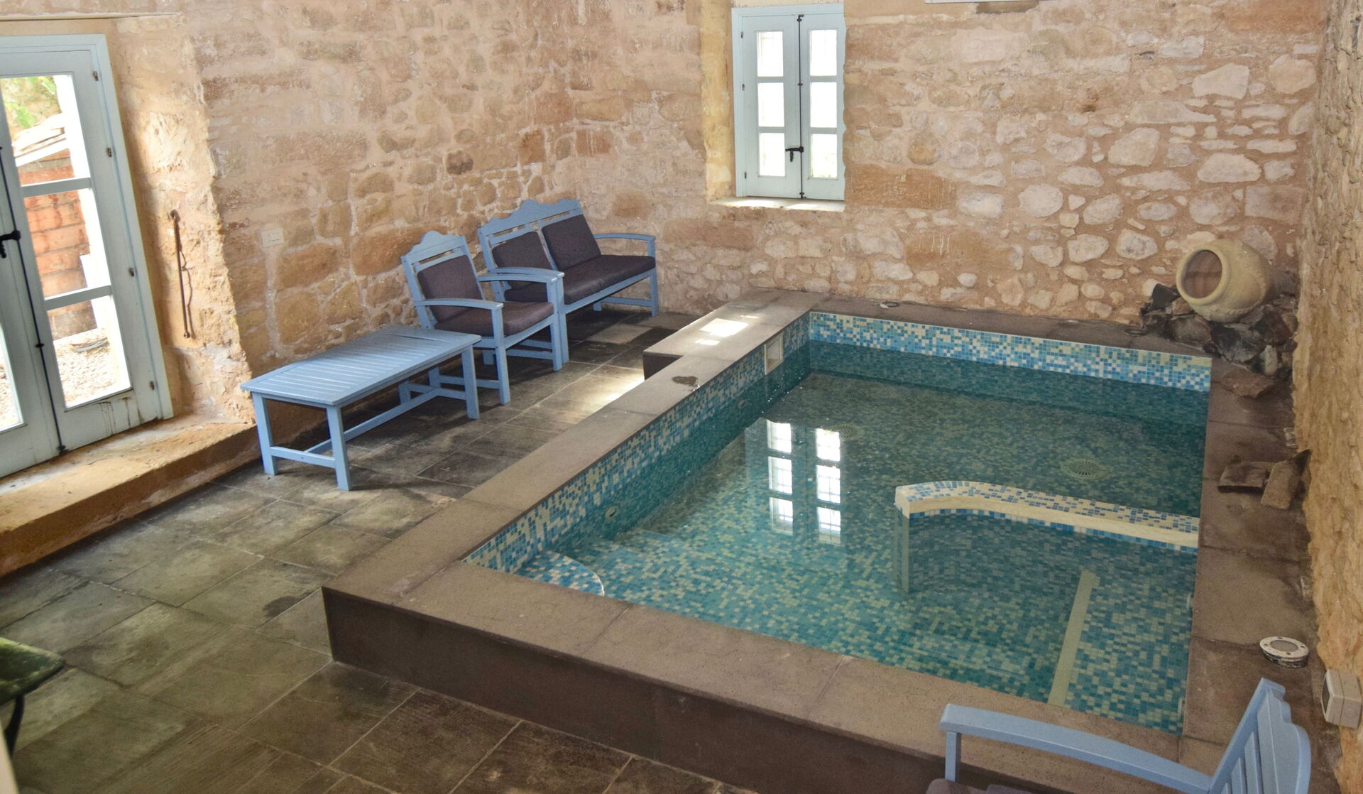 All’interno, la villa sorprende con una raffinata piscina interna riscaldata con jacuzzi, situata al seminterrato e raggiungibile tramite una suggestiva scala a chiocciola. Completa di bagno e doccia, rappresenta un’oasi di benessere perfetta in ogni stagione.