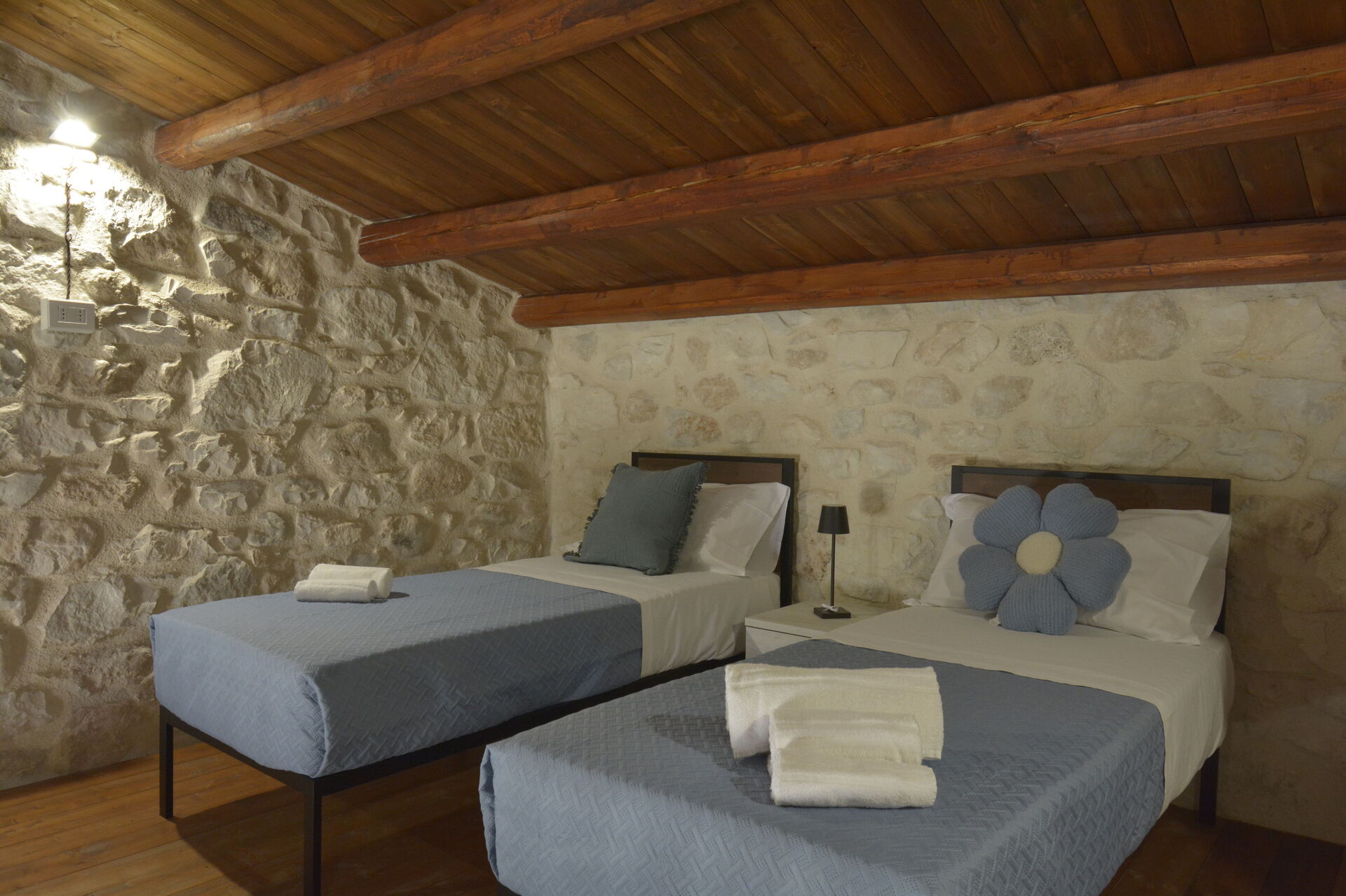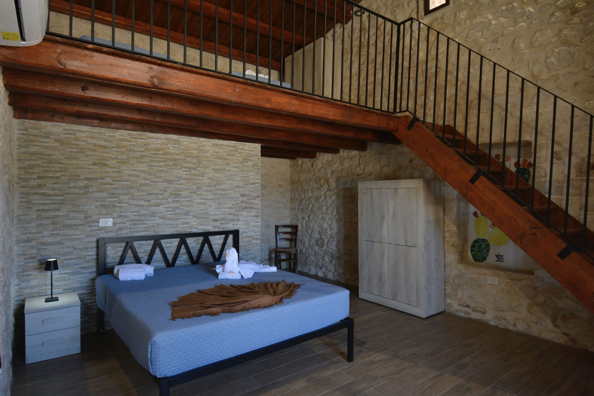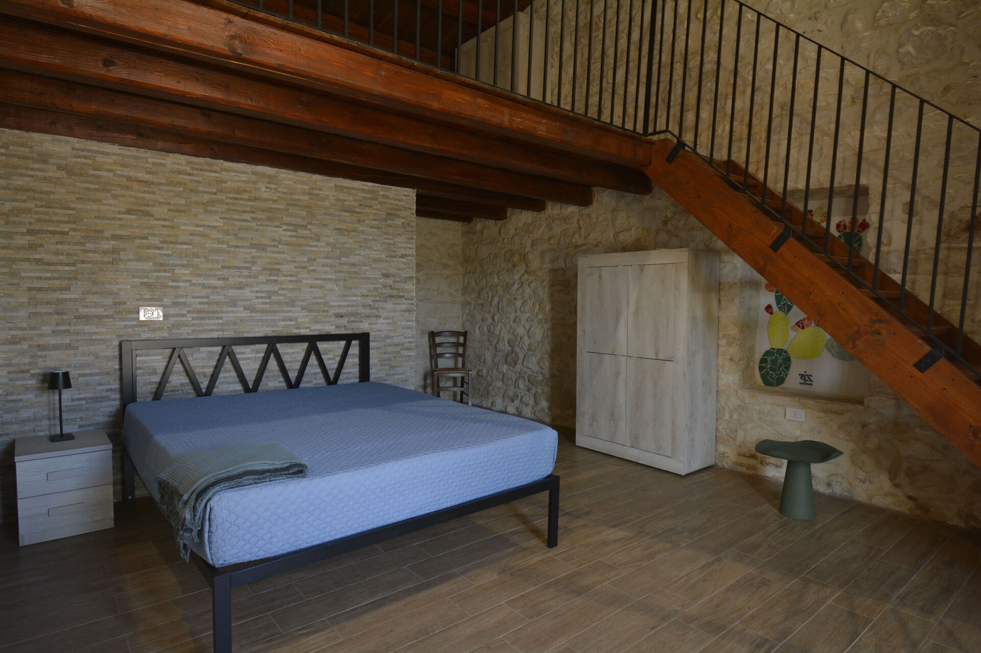 Tutti gli ambienti sono climatizzati e con accesso alla veranda esterna. Ampia cucina-soggiorno attrezzata con divano letto matrimoniale e bagno. Completa la struttura la sala storica “Il Palmento”, salotto con TV e ulteriore divano letto matrimoniale. Dispone di una camera tripla (matrimoniale + singolo soppalcato) con bagno privato e di una camera quadrupla (matrimoniale + doppia soppalcato) con bagno in camera.
