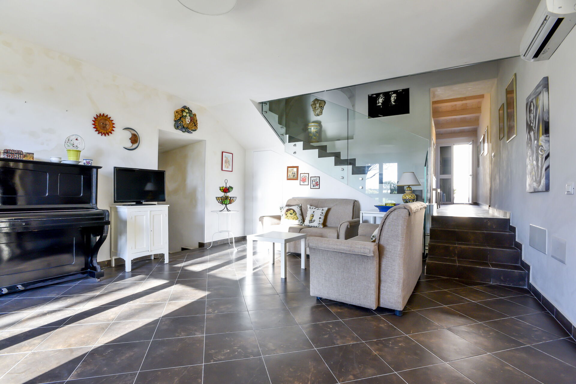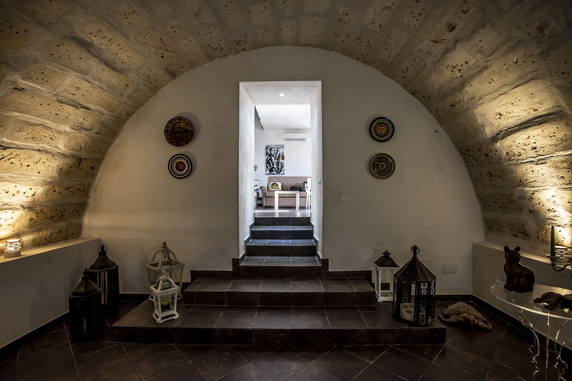 Composta da due camere matrimoniali e due camere triple. Due bagni completi interni e un ulteriore bagno completo esterno. Ampio e luminoso salone, dotato di divano letto matrimoniale, area TV e una confortevole zona pranzo. La cucina è completamente attrezzata. Secondo salone, ricavato dalla ristrutturazione di un’antica cisterna d’acqua ed è stato arredato per creare uno spazio accogliente. Climatizzazione (riscaldamento/raffreddamento)
