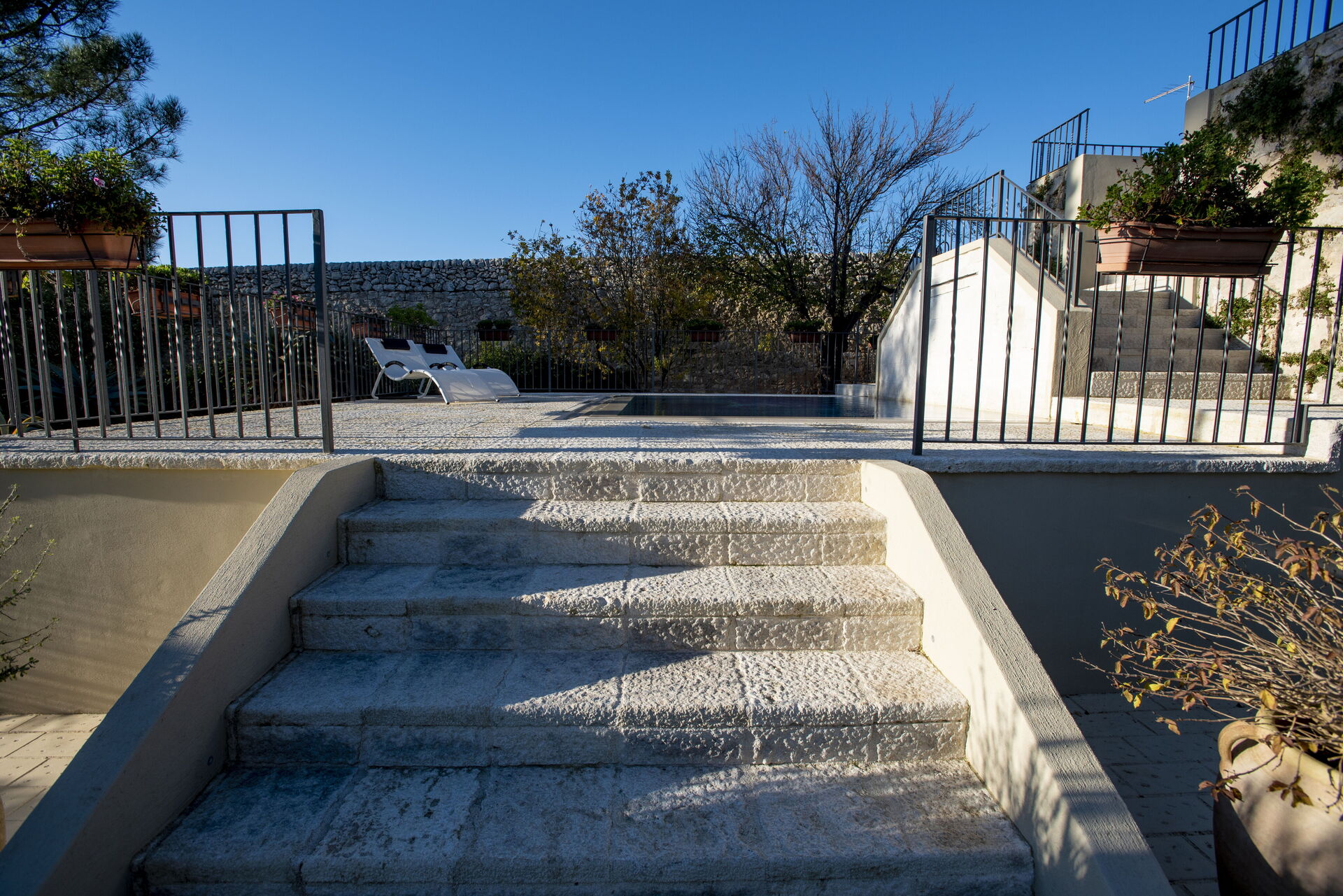 Gli ampi spazi esterni, perfettamente curati, offrono un’oasi di pace e privacy assoluta. La piscina privata è il cuore della proprietà, ideale per momenti di relax totale. Diverse aree lounge arredate con gusto permettono di vivere appieno l’atmosfera mediterranea, tra sole, silenzio e convivialità.