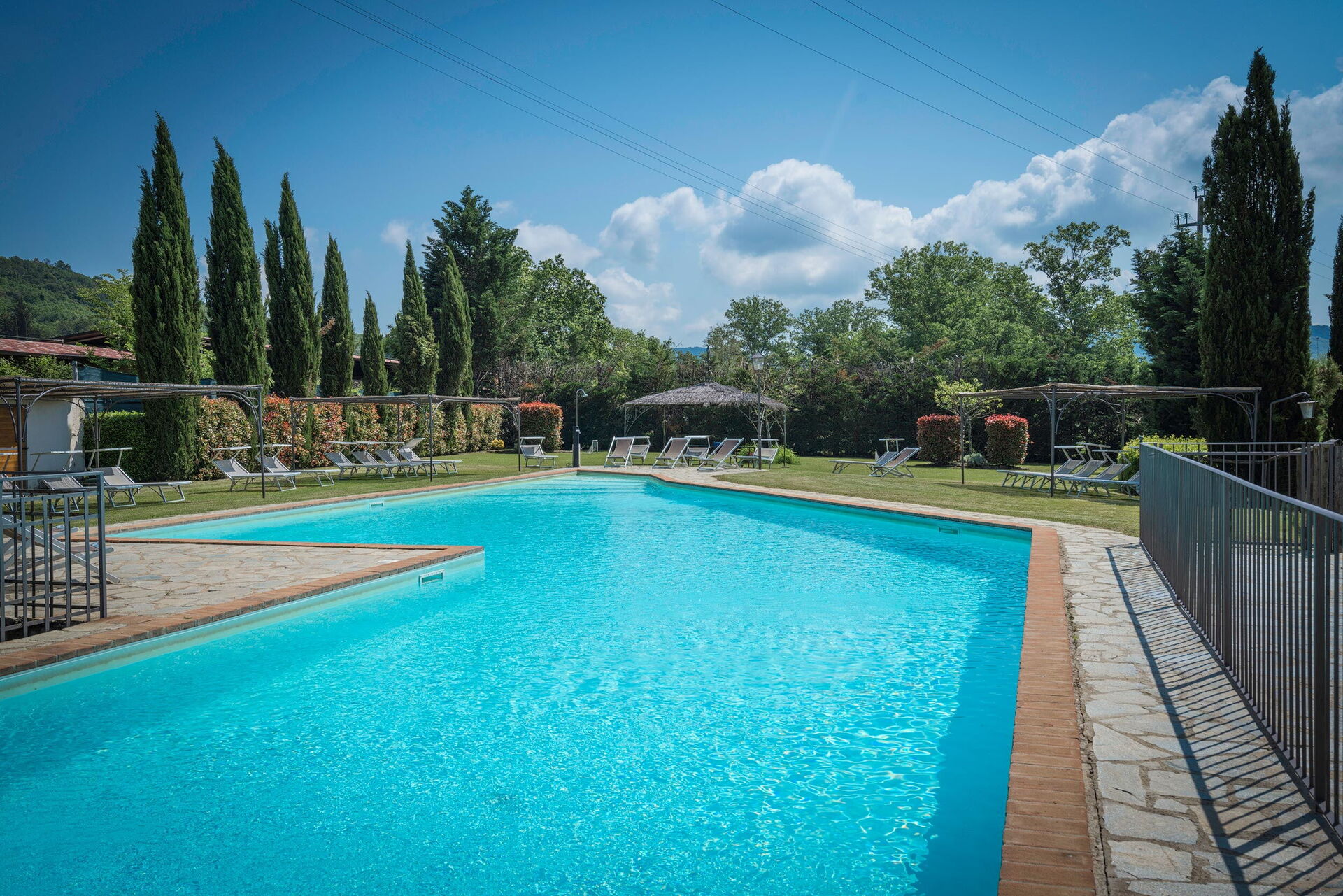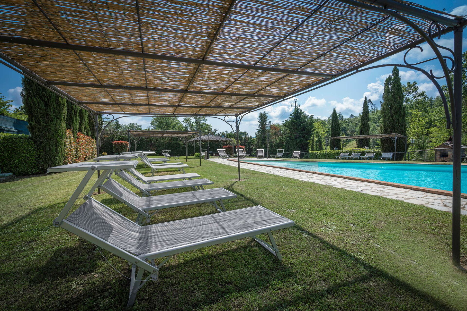 Alla piscina gazebo prendisole, lettini prendisole.