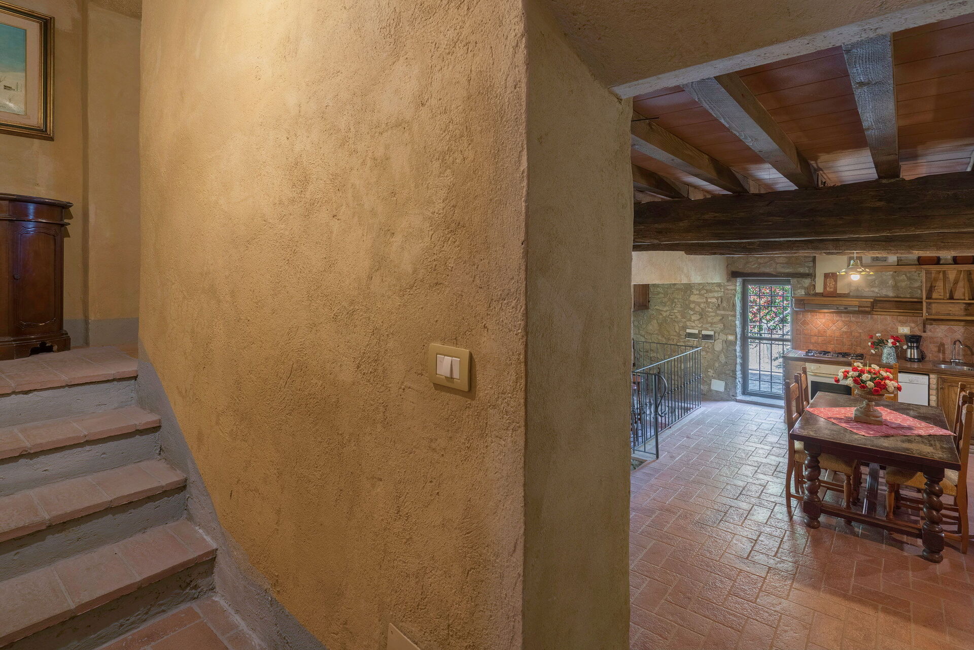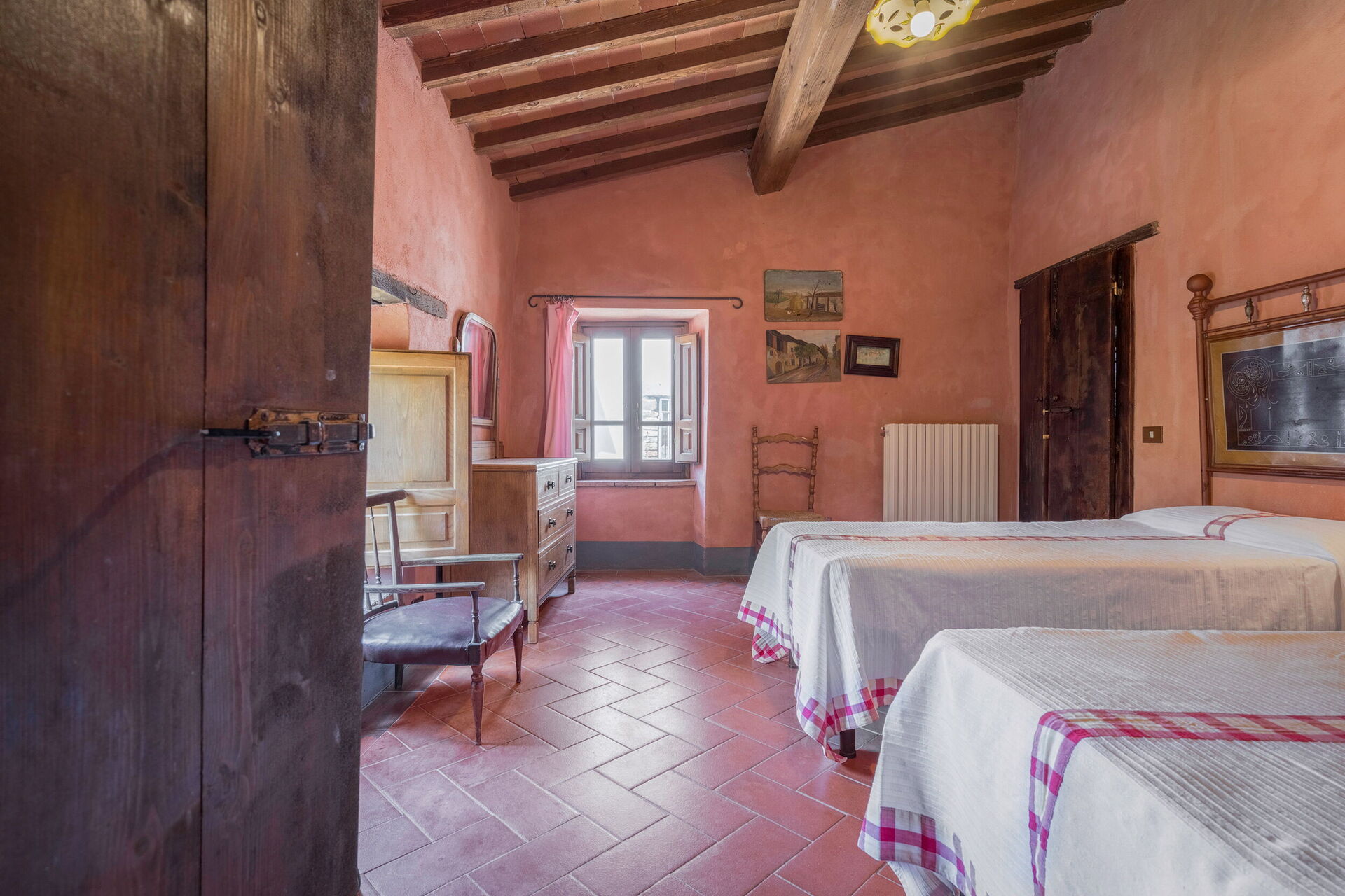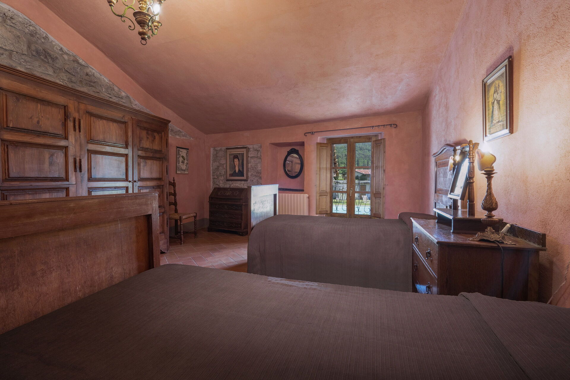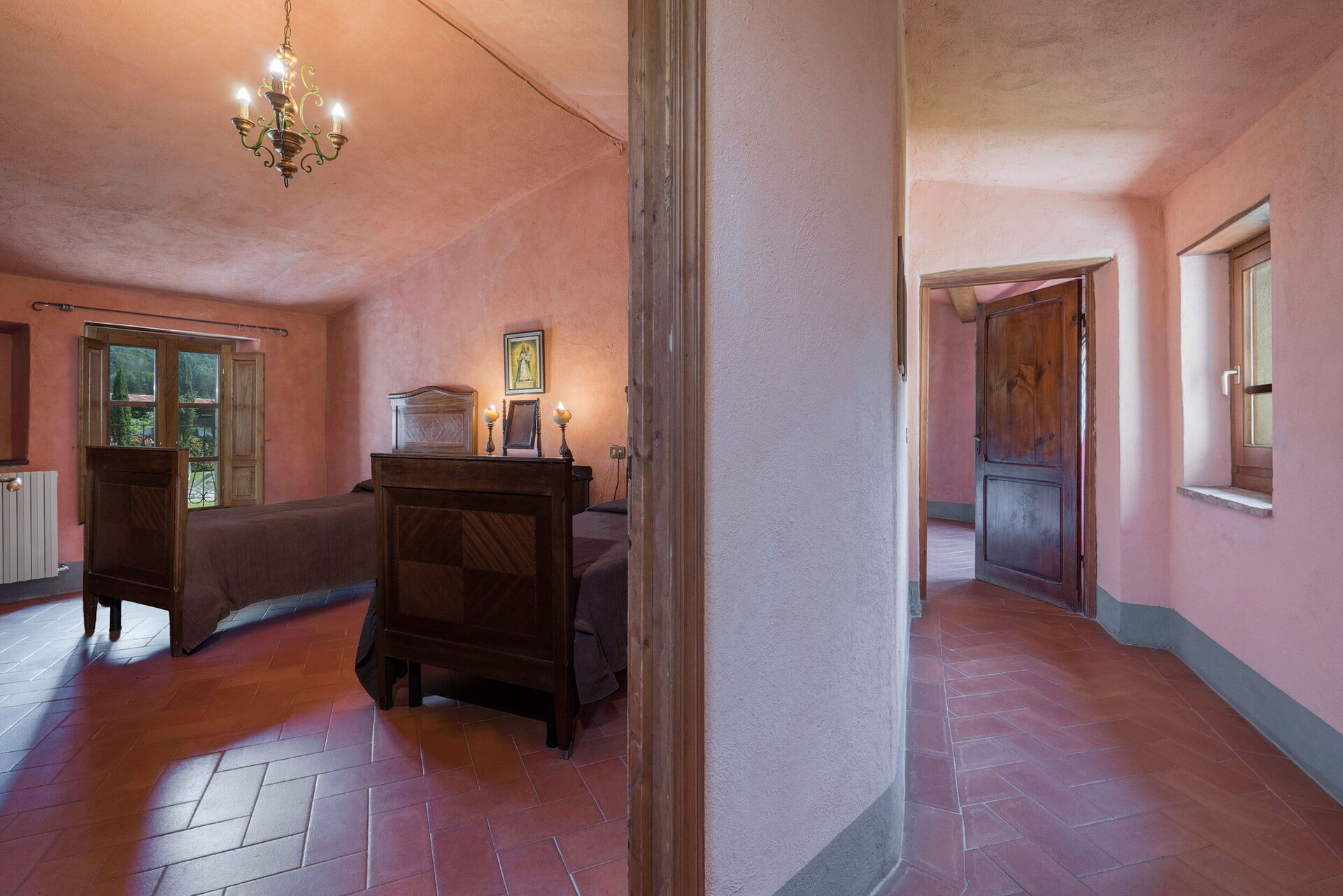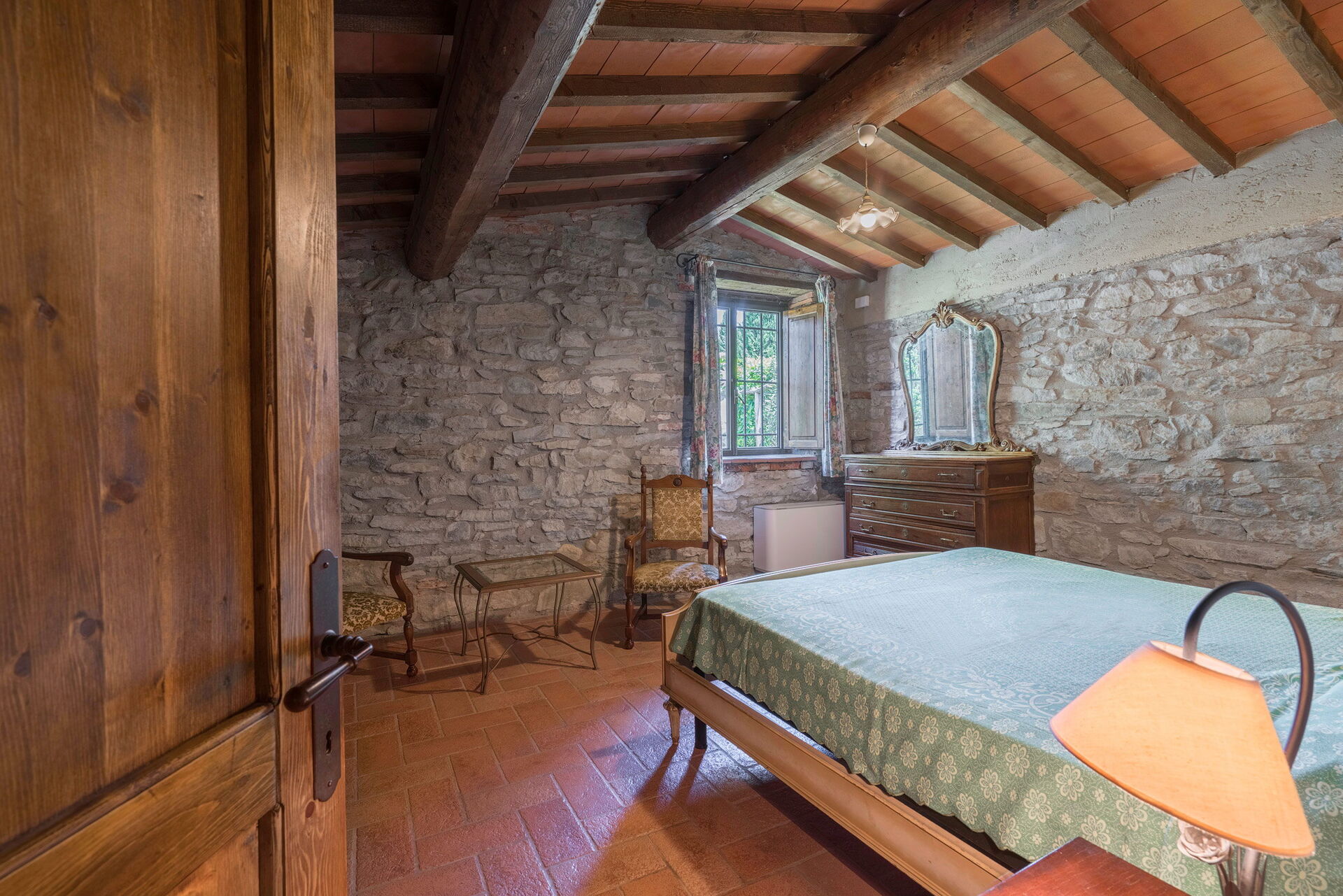 Salendo 10 scalini: 1 camera a 2 letti, 1 camera matrimoniale, 1 bagno con doccia.
