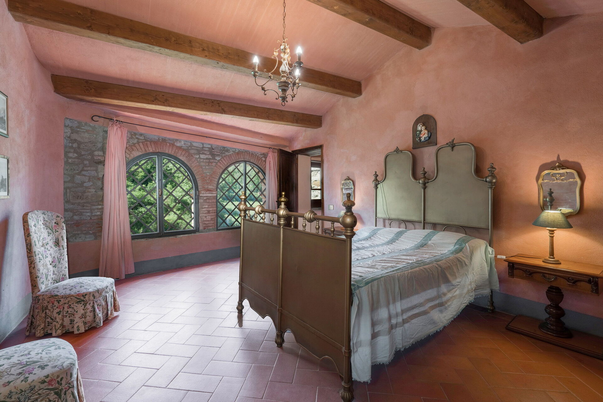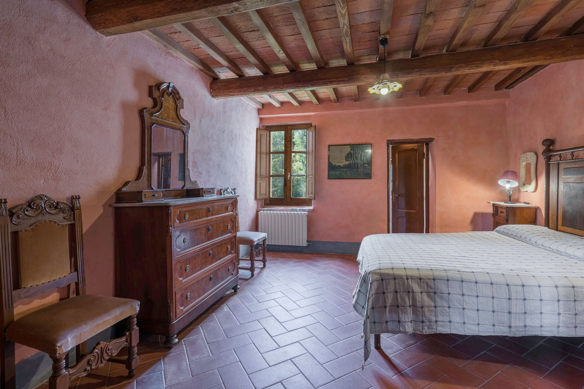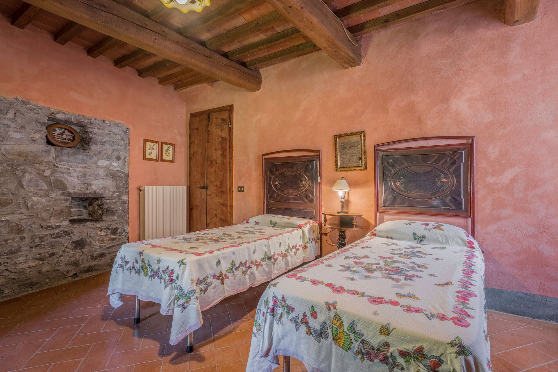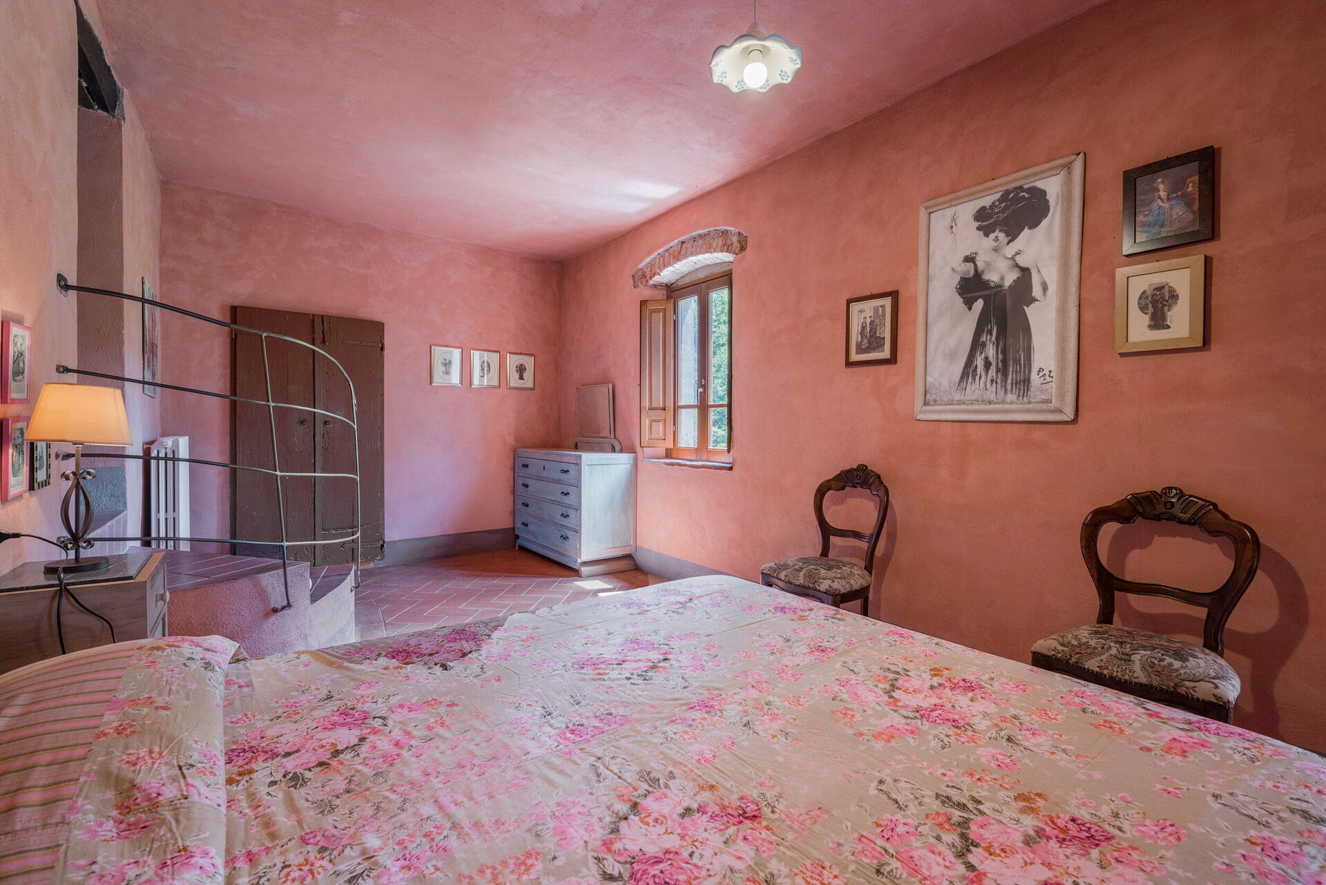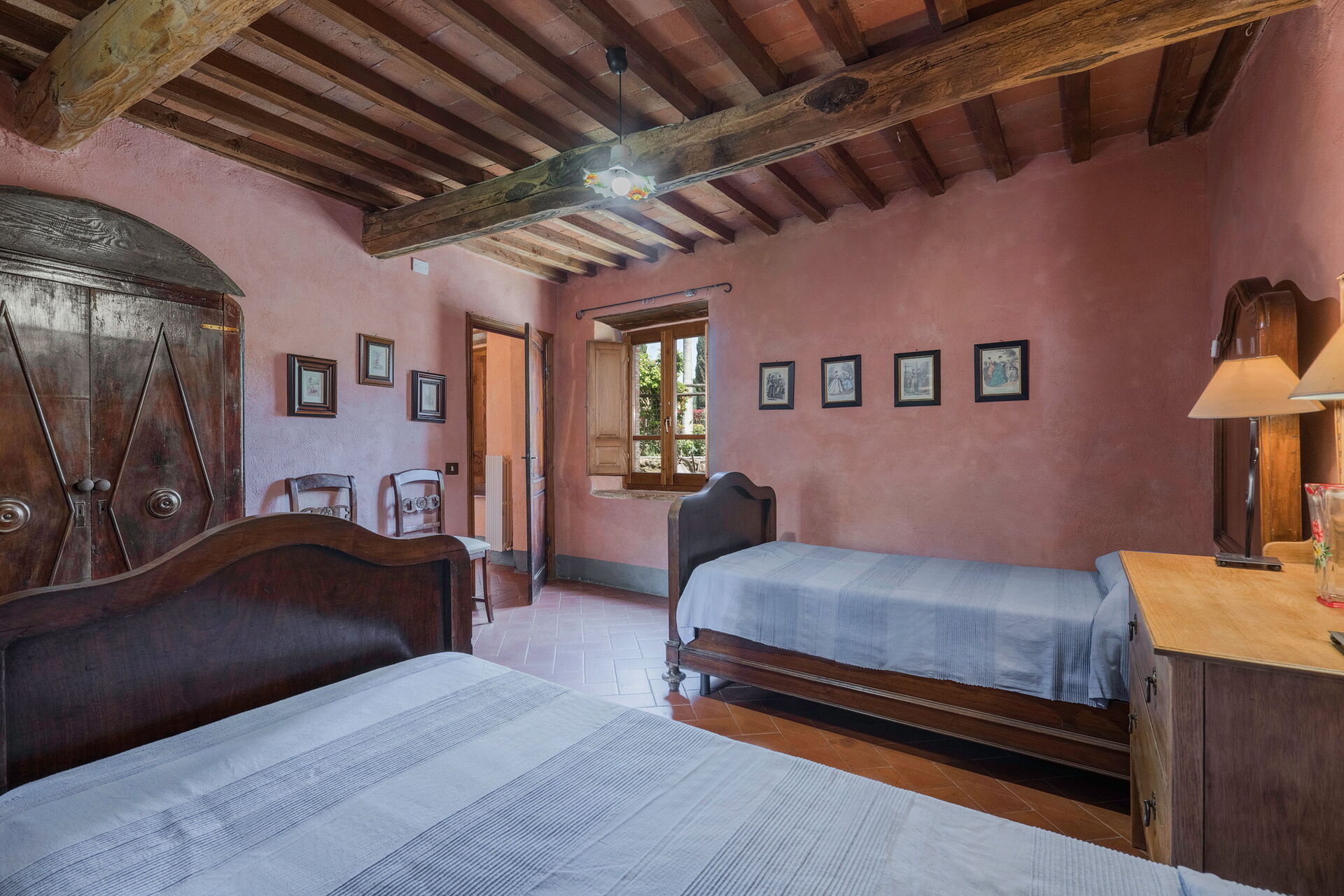 Salendo 10 scalini: 1 camera a 2 letti, 1 camera matrimoniale, 1 bagno con doccia.