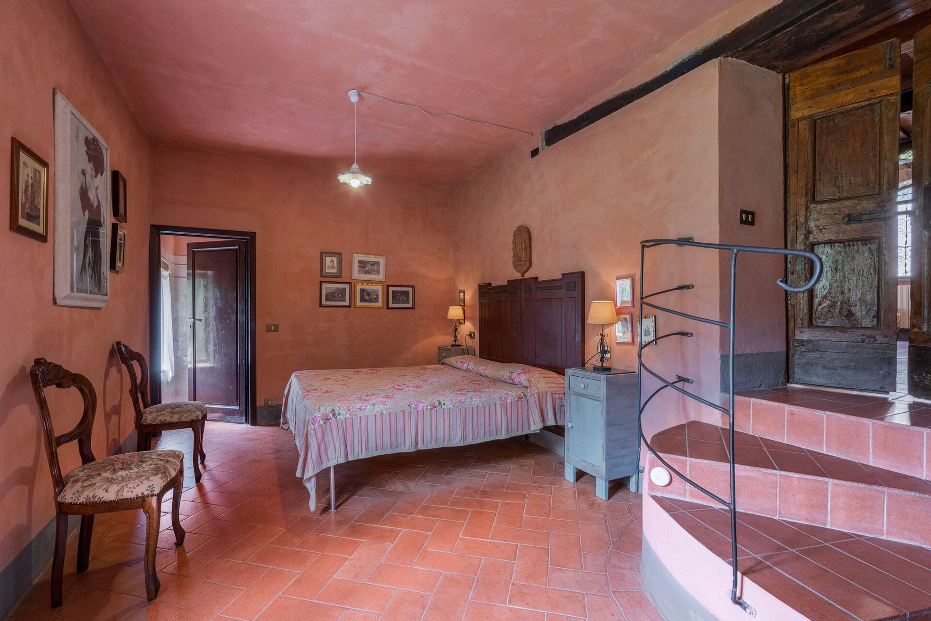 Si salgono 6 scalini e troviamo 1 camera a 3 letti di cui 2 francesi con all’interno bagno completo di doccia.