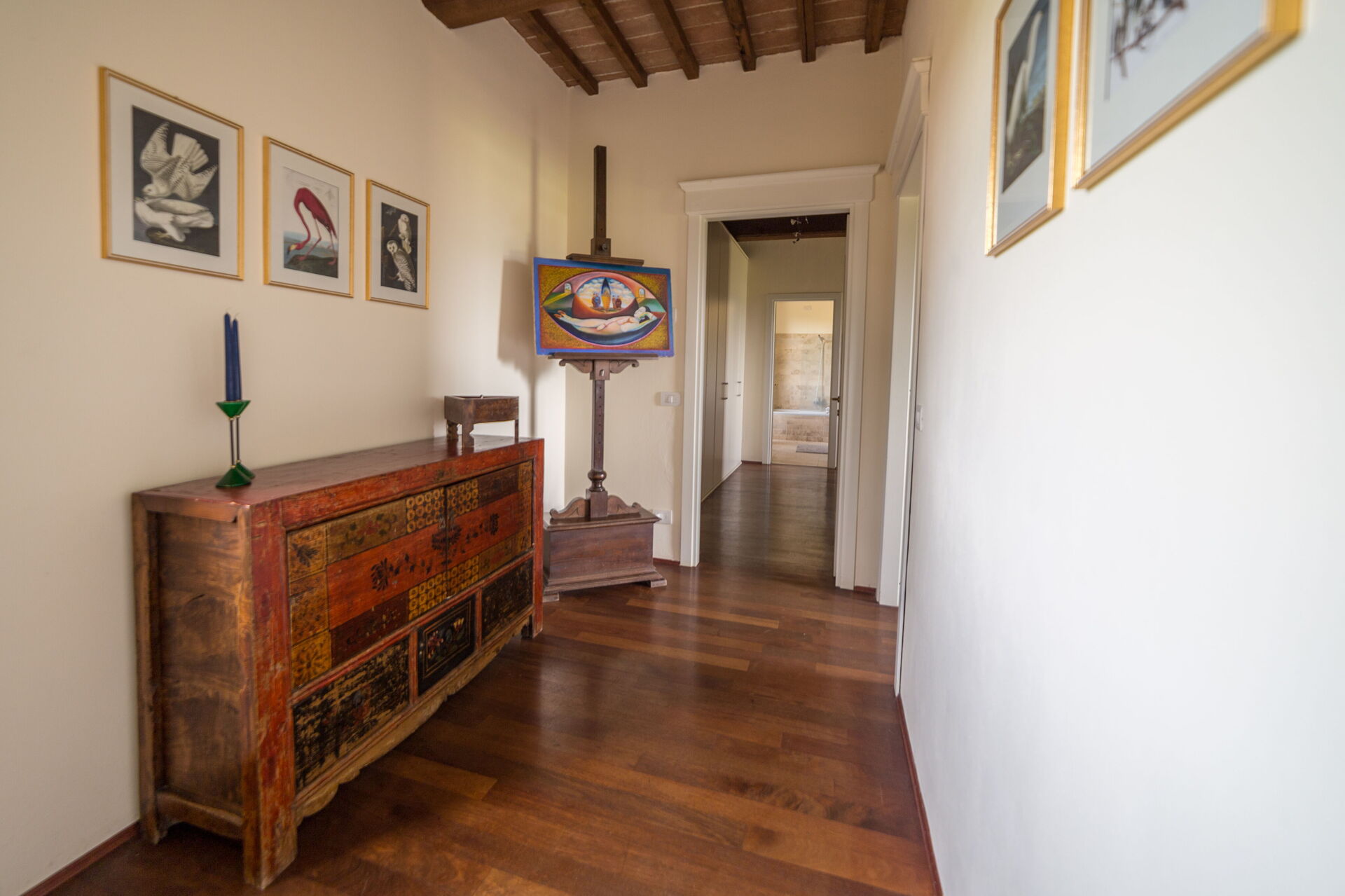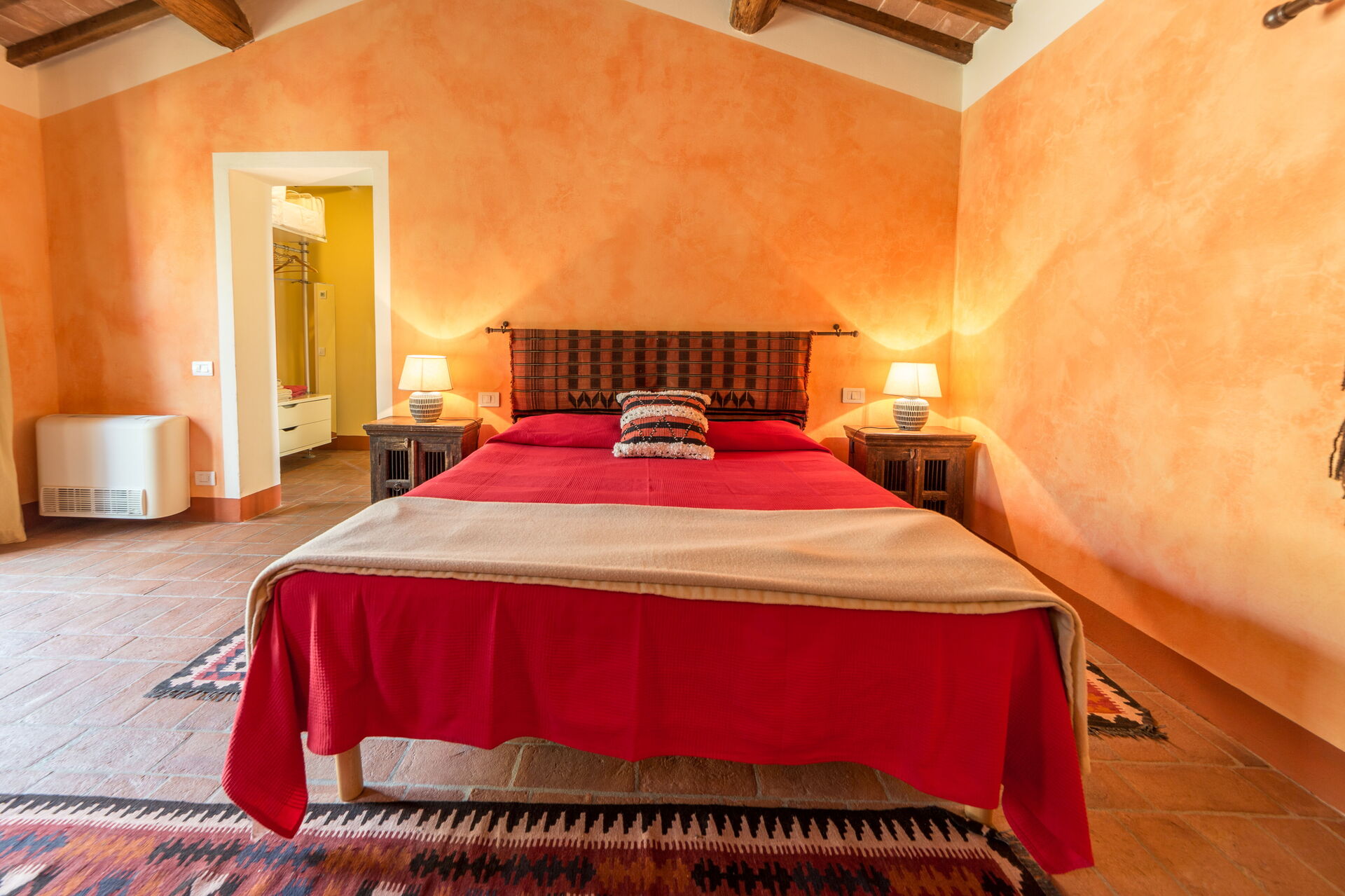 Nobiliari le stanze della zona notte con mobili antichi, dettagli di pregio, travi in legno a vista, pavimenti in parquet ma anche in cotto e pezzi etnici che i proprietari hanno inserito all’interno della dimora dopo aver viaggiato per il mondo. Ecco allora che troverete la camera africana con cuscini berberi e lampade marocchine o quella thailandese con elefante thai e testata stile asiatico. Due delle camere hanno accesso diretto a un ampio balcone in pietra.