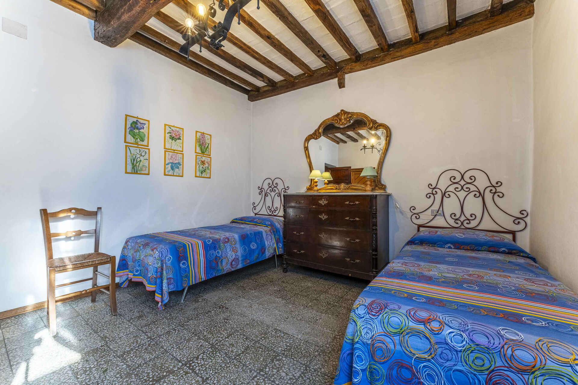 Al primo piano la zona notte composta da due camere matrimoniali e due camere doppie. Presente un'ulteriore zona soggiorno e un bagno con vasca.