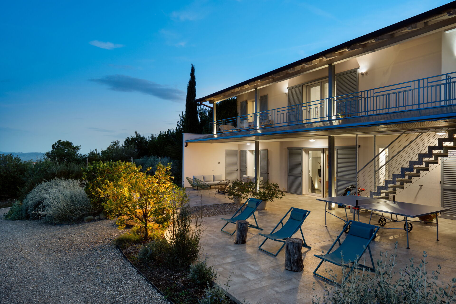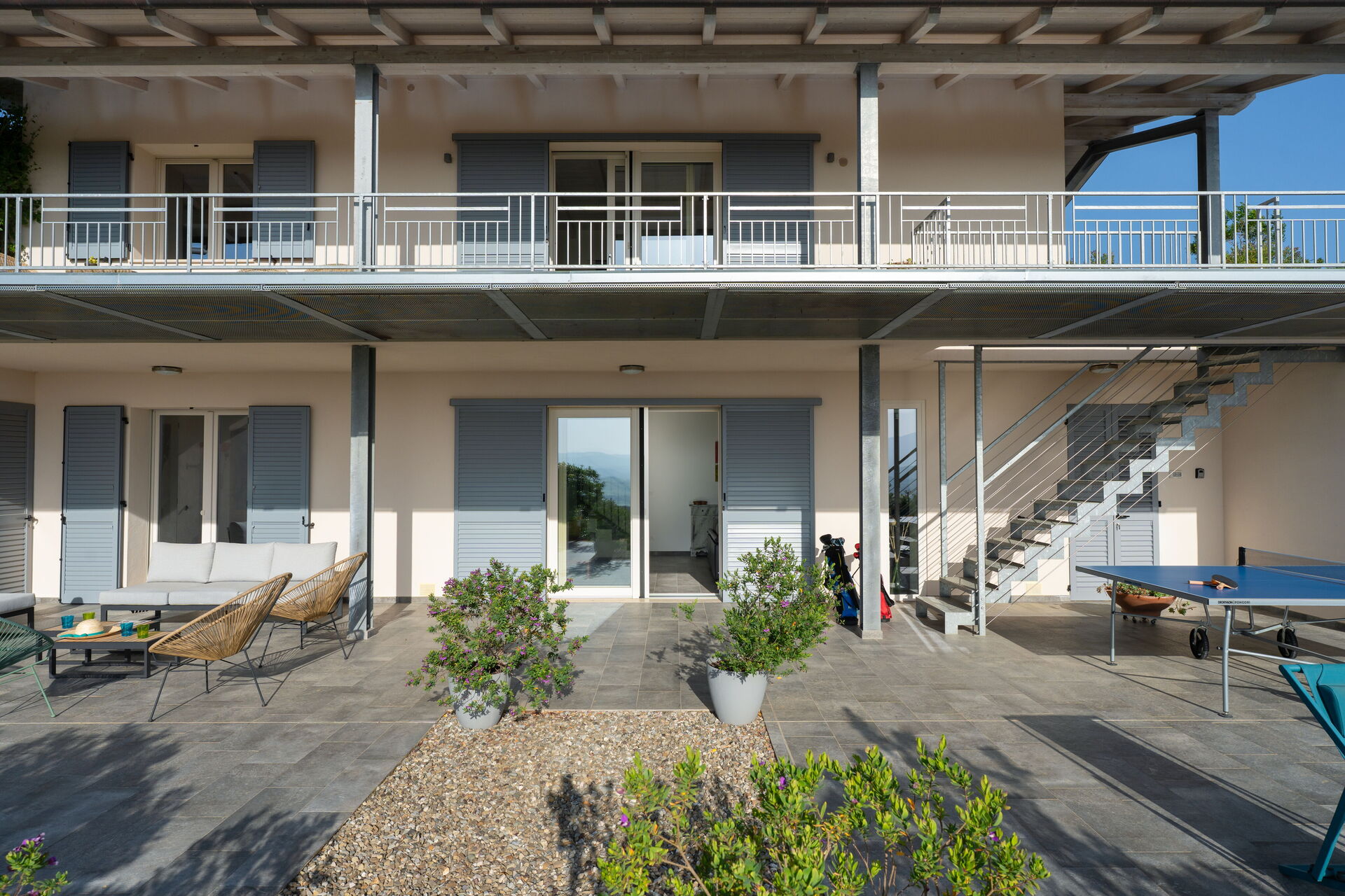 Villa moderna di 160 mq disposta su due piani, con accesso principale dal primo piano.