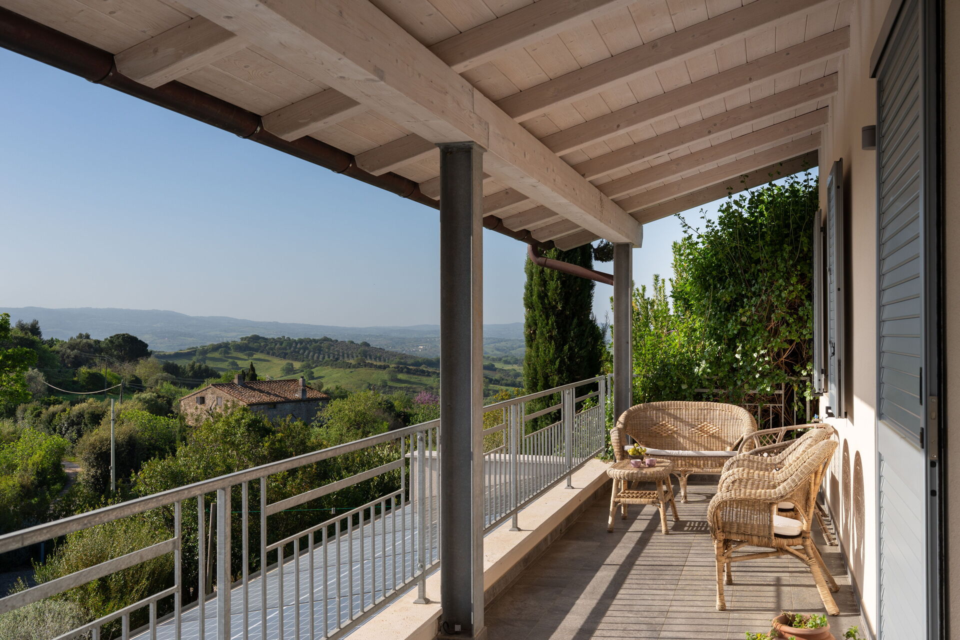 Ricavata dalle antiche scuderie di Villa Ambretta, Villa Ombrone è stata completamente ristrutturata nel 2021 per ospitare 6 persone. Con una superficie di 160 m2, le sue terrazze e il suo giardino si affacciano sull'immenso panorama della valle dell'Ombrone. Alimentata da energia solare, dotata di un sistema di riscaldamento e/o raffreddamento a pavimento, Villa Ombrone è un luogo eccezionale, moderno, confortevole e immerso nel cuore di una natura incontaminata. La piscina privata (10 m x 8 m x 1,20 m di profondità, sicura per i bambini, con una “zona spiaggia” di 0,30 m di profondità, inserita nella piscina principale), permette soggiorni confortevoli durante tutto l'anno. La proprietà dispone anche di una bella terrazza attrezzata per pranzi e cene all'aperto (barbecue, fornello e lavello). Parcheggio privato nella proprietà con ricarica per auto elettriche. Internet Wi-Fi gratuito.