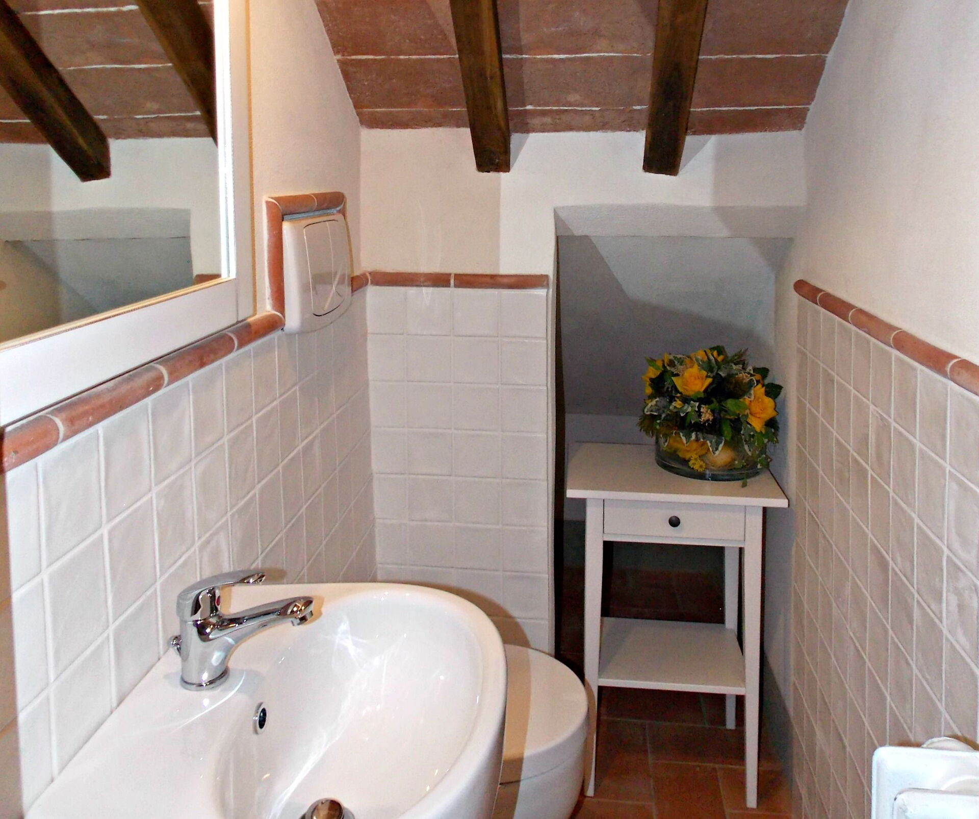 Al primo piano: 1 camera doppia con letto matrimoniale e 1 bagno con doccia (wc/bidet).