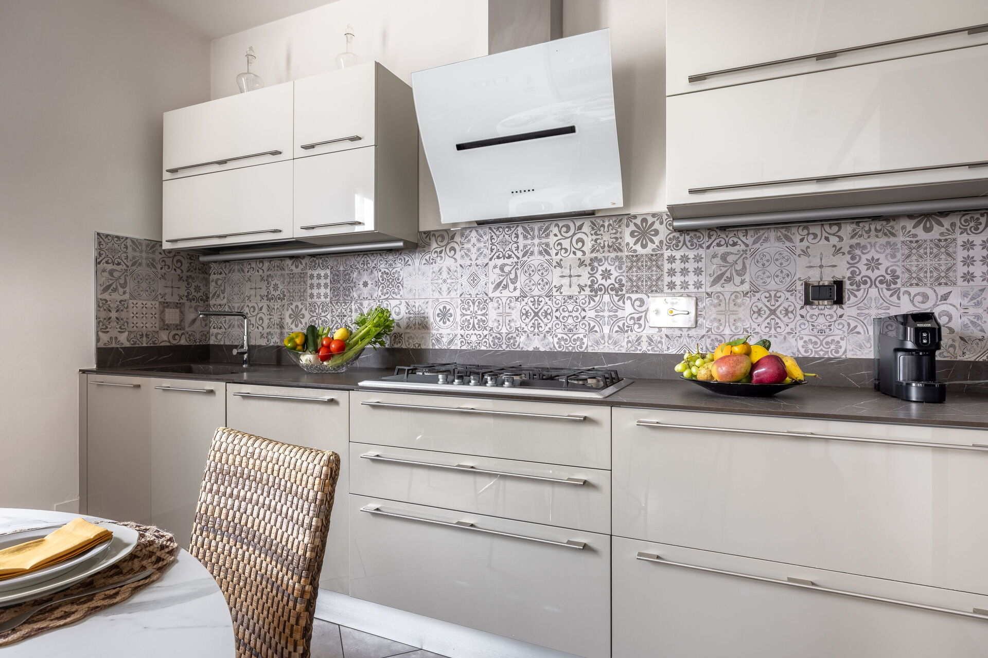 Cucina ben attrezzata, Forno, Frigo, Internet WiFi, Lavastoviglie, Macchina da caffè (Italiana), Piano Cottura, Rilevatore di CO2, Rilevatore di fumo, 2 Tavolo da pranzo, Tostapane, Uscita sul balcone