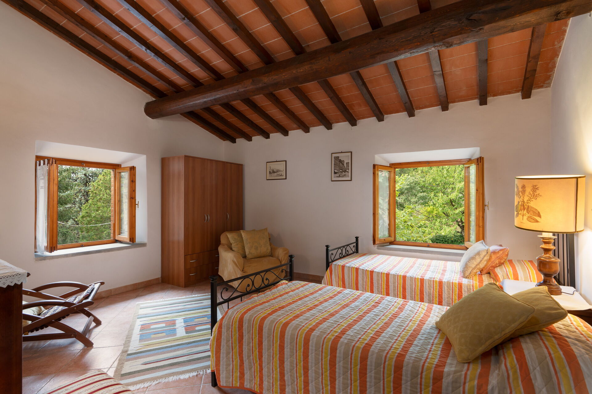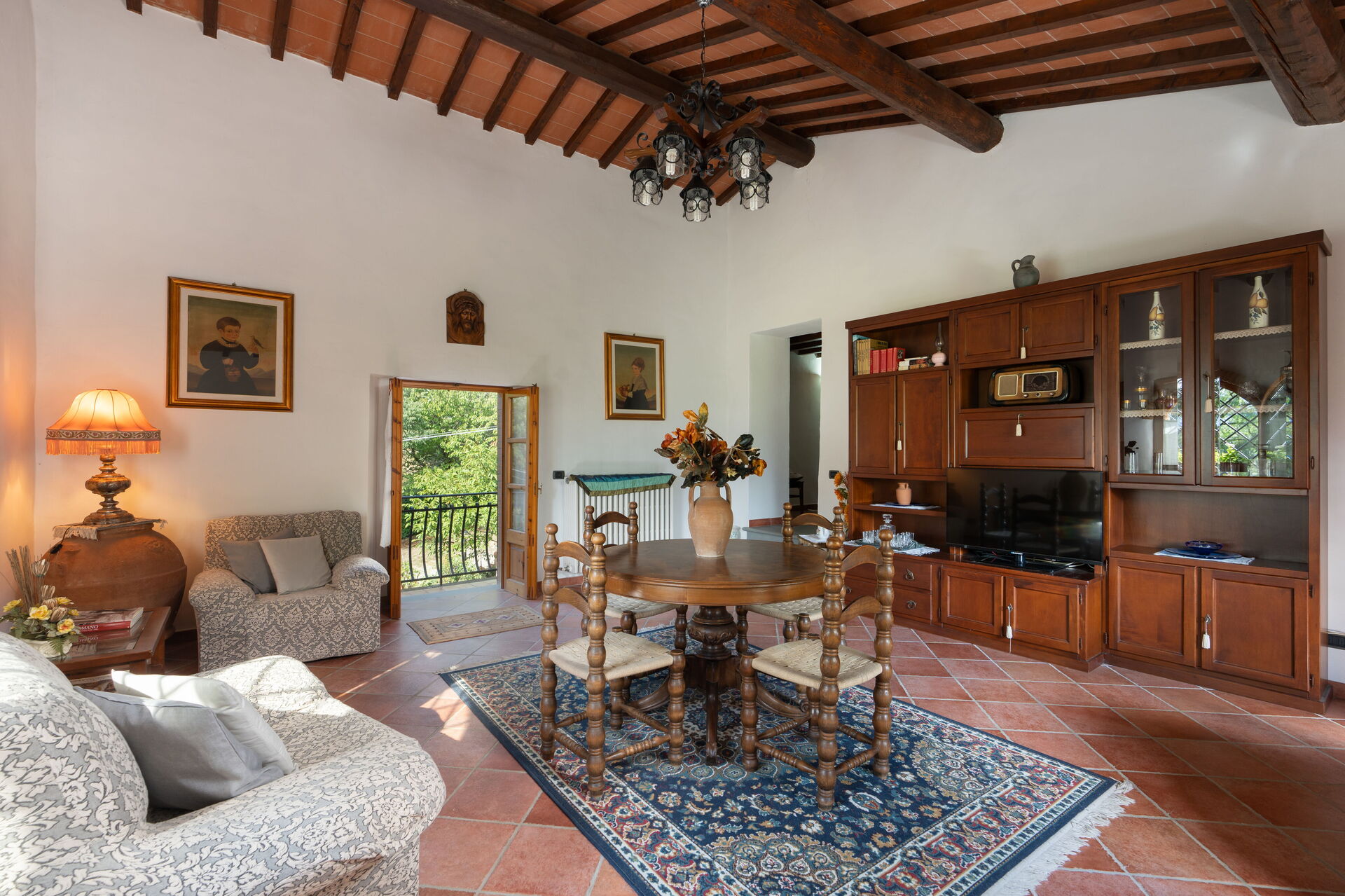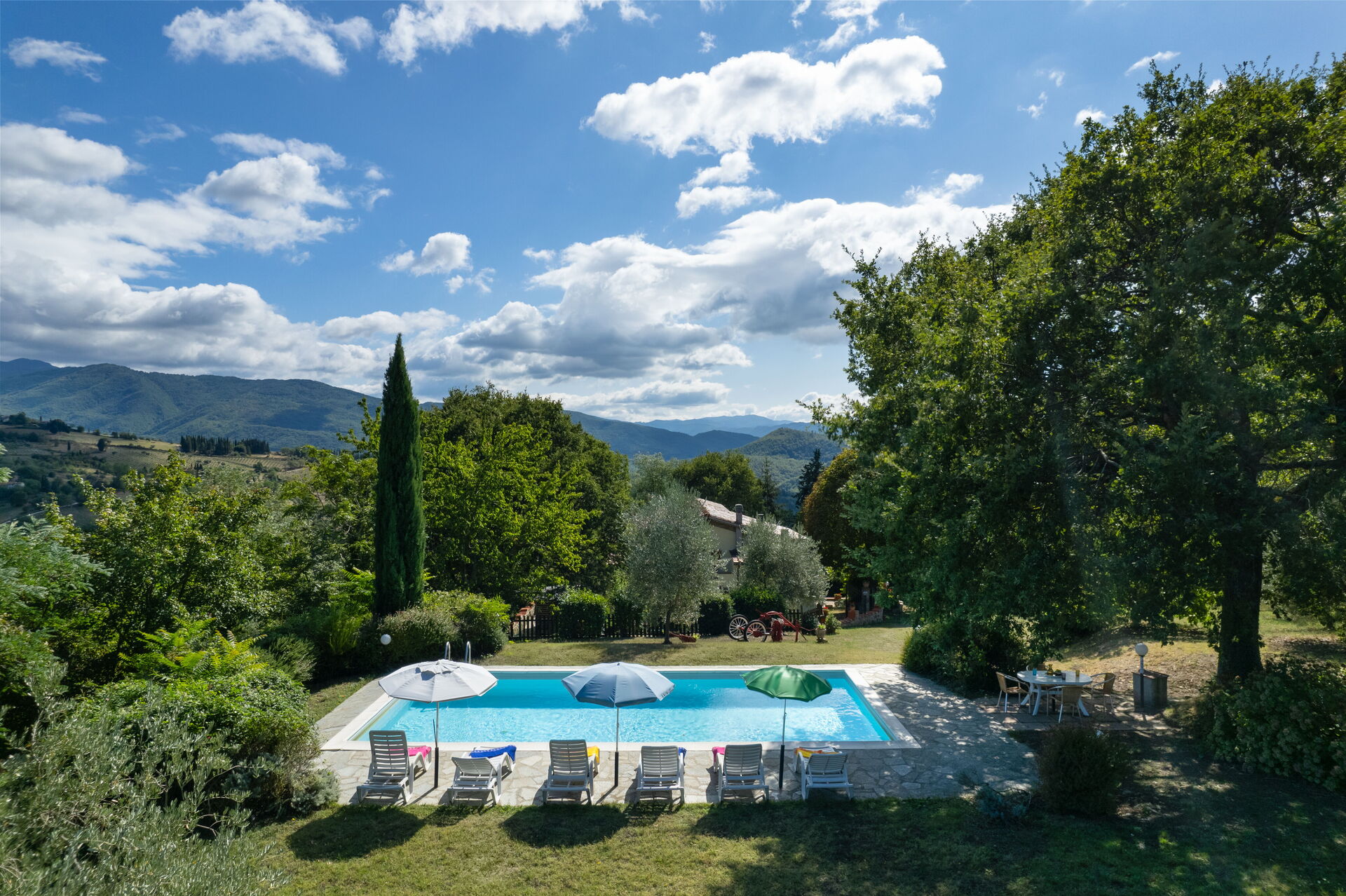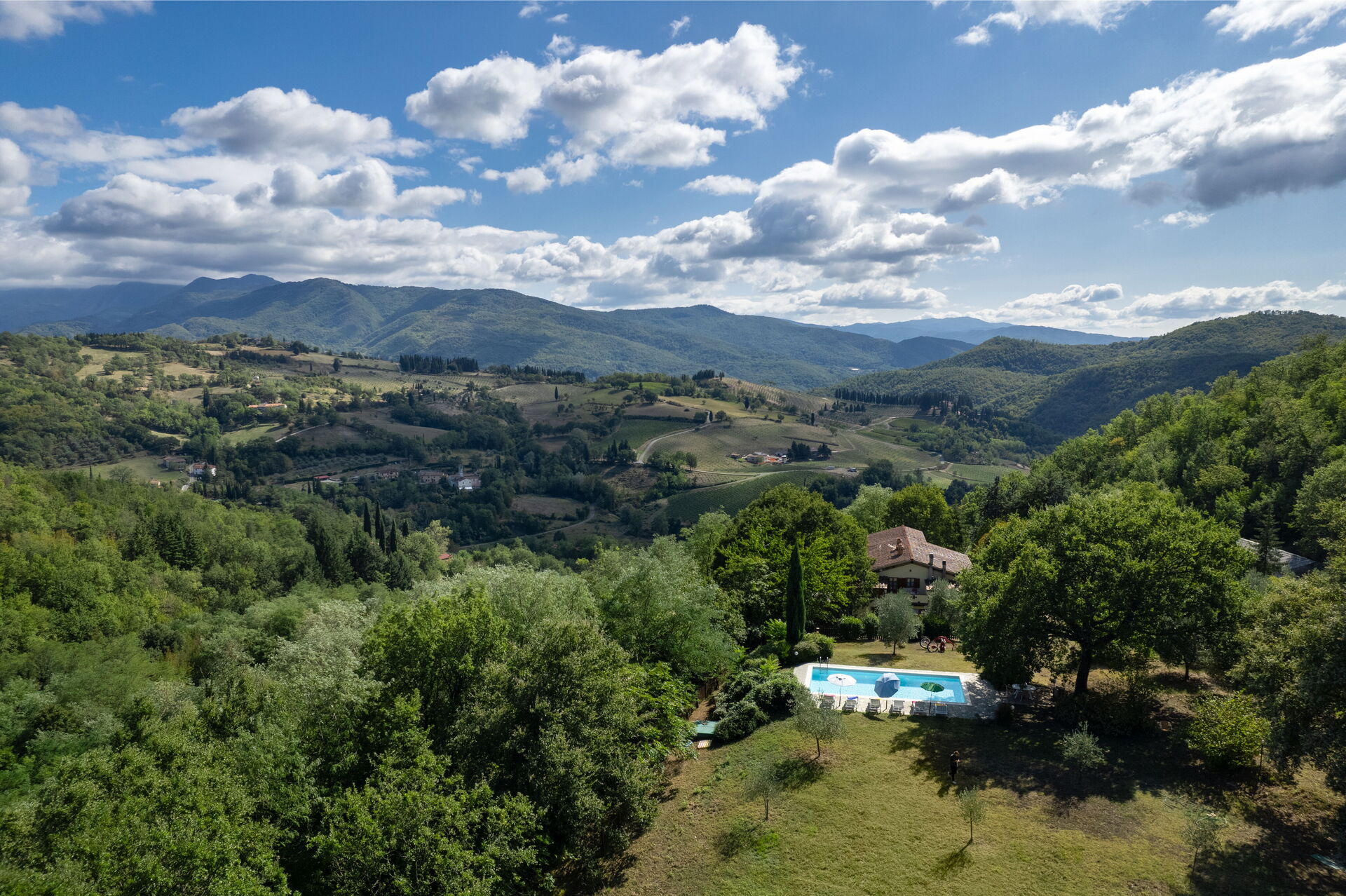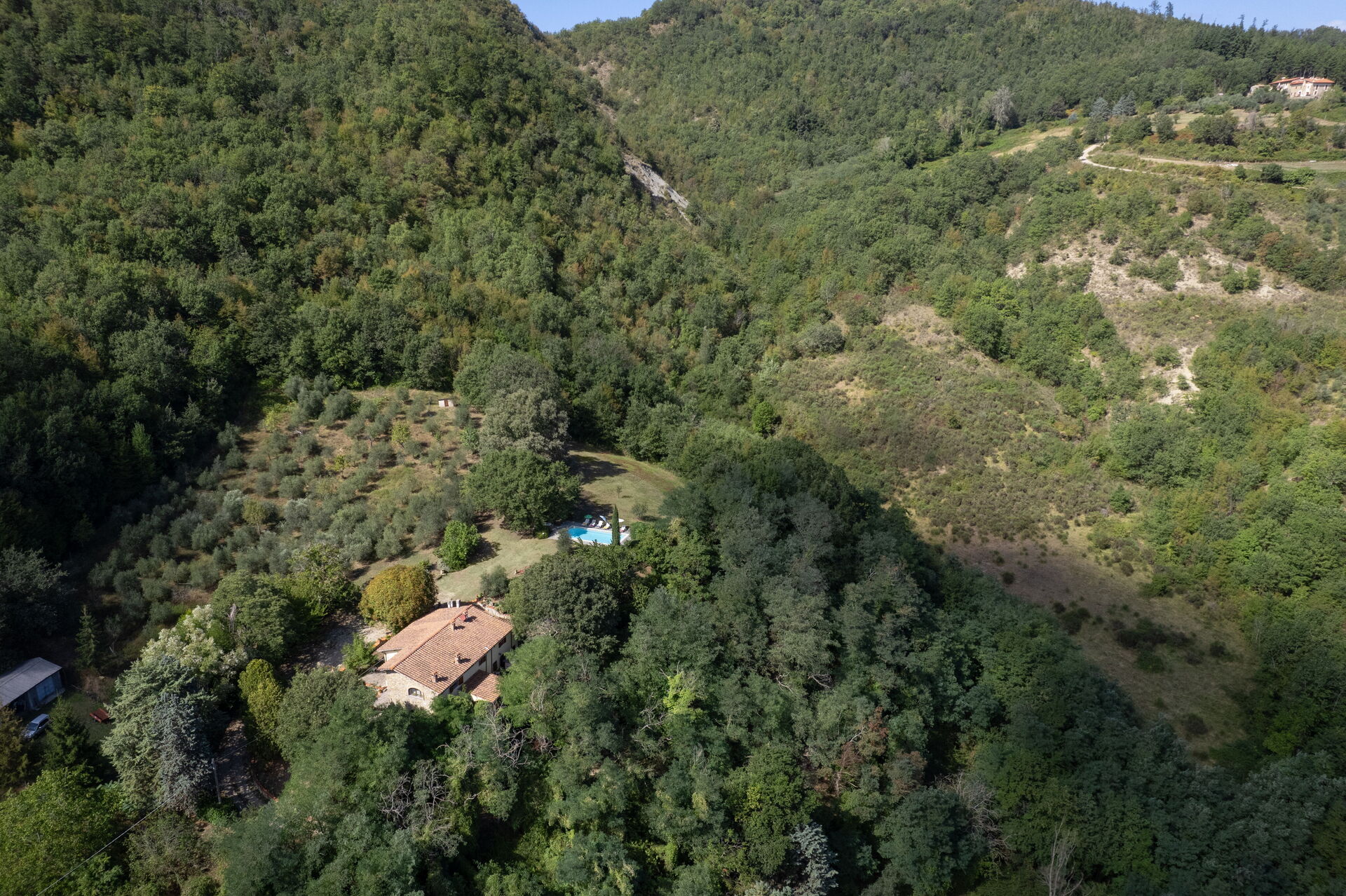 Graziosa casa per vacanze su due piani immersa nel verde sulle colline coperte di boschi nel cuore della Toscana nel territorio del Mugello, in posizione tranquilla. La casa è circondata da un bel giardino di 3.000mq. attrezzato con piscina ad uso esclusivo degli ospiti (10m. x 5m. prof. 140cm.) con doccia esterna. La proprietà dispone inoltre di spazi attrezzati con barbecue per pranzi e cene all’aperto. Parcheggio privato nella proprietà. In due stanze adiacenti alla villa abita saltuariamente l'addetto alla manutenzione. La casa si trova a 4,5km. dal piccolo centro abitato di “Corella”, a 45km. da Firenze, a 32km. dal “Barberino Designer Outlet” (oltre 100 negozi di grandi marchi della moda italiana e internazionale) e dal lago di “Bilancino” (canoa, vela, windsurf), a 27km. dal “Poggio dei Medici golf club”.
