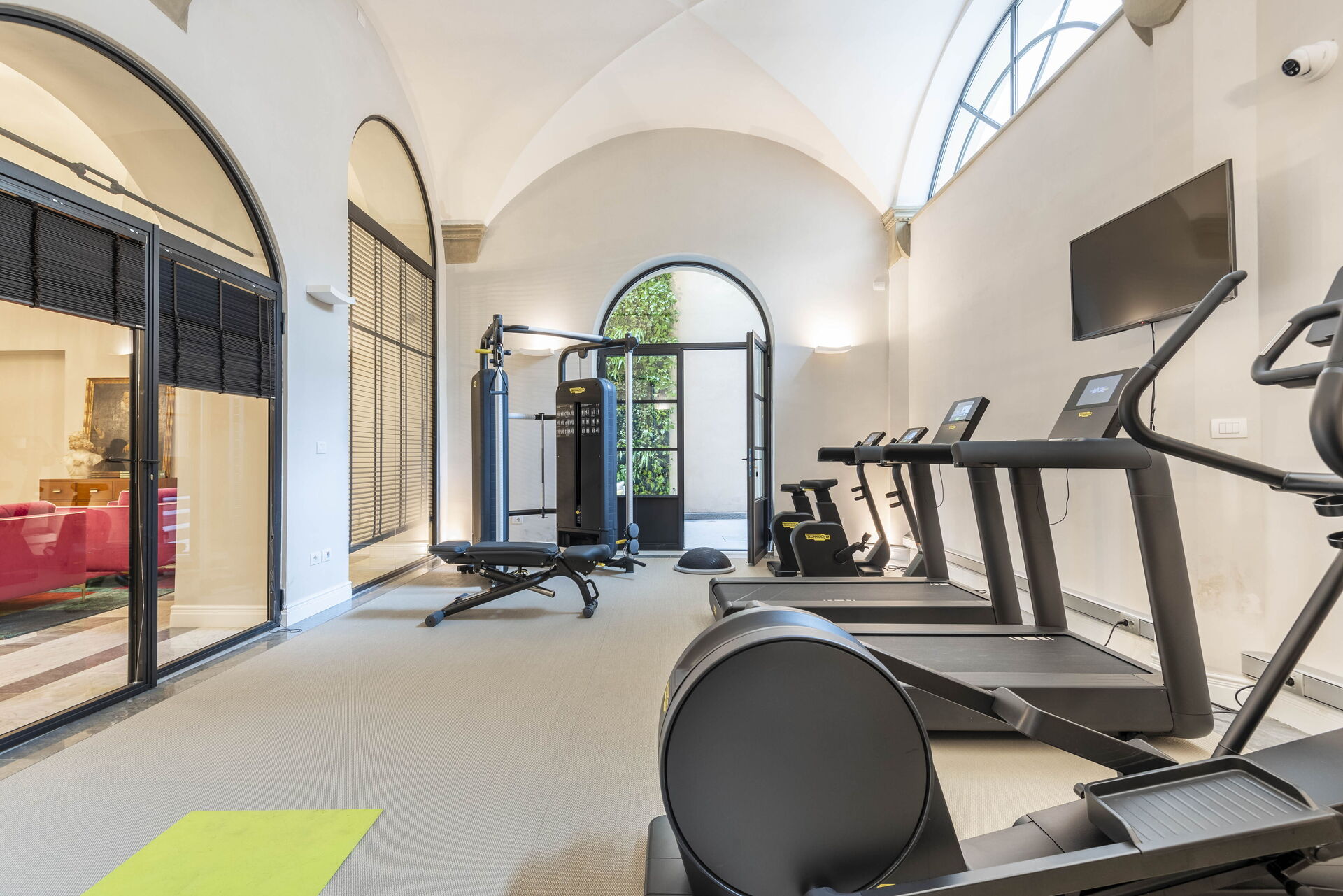Gli spazi esterni includono una splendida terrazza e un cortile interno nel cuore pulsante di Firenze. Per chi desidera mantenersi in forma, è a disposizione una palestra privata completa con macchinari Technogym di ultima generazione.