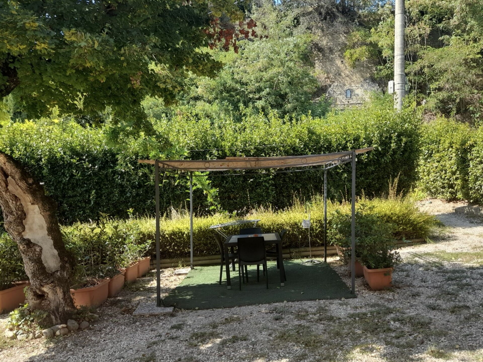 L'appartamento La Nonna dispone anche di un angolo di giardino privato, completo di gazebo e tavolo, dove gli ospiti possono rilassarsi all'aperto e godere della tranquillità della campagna toscana.