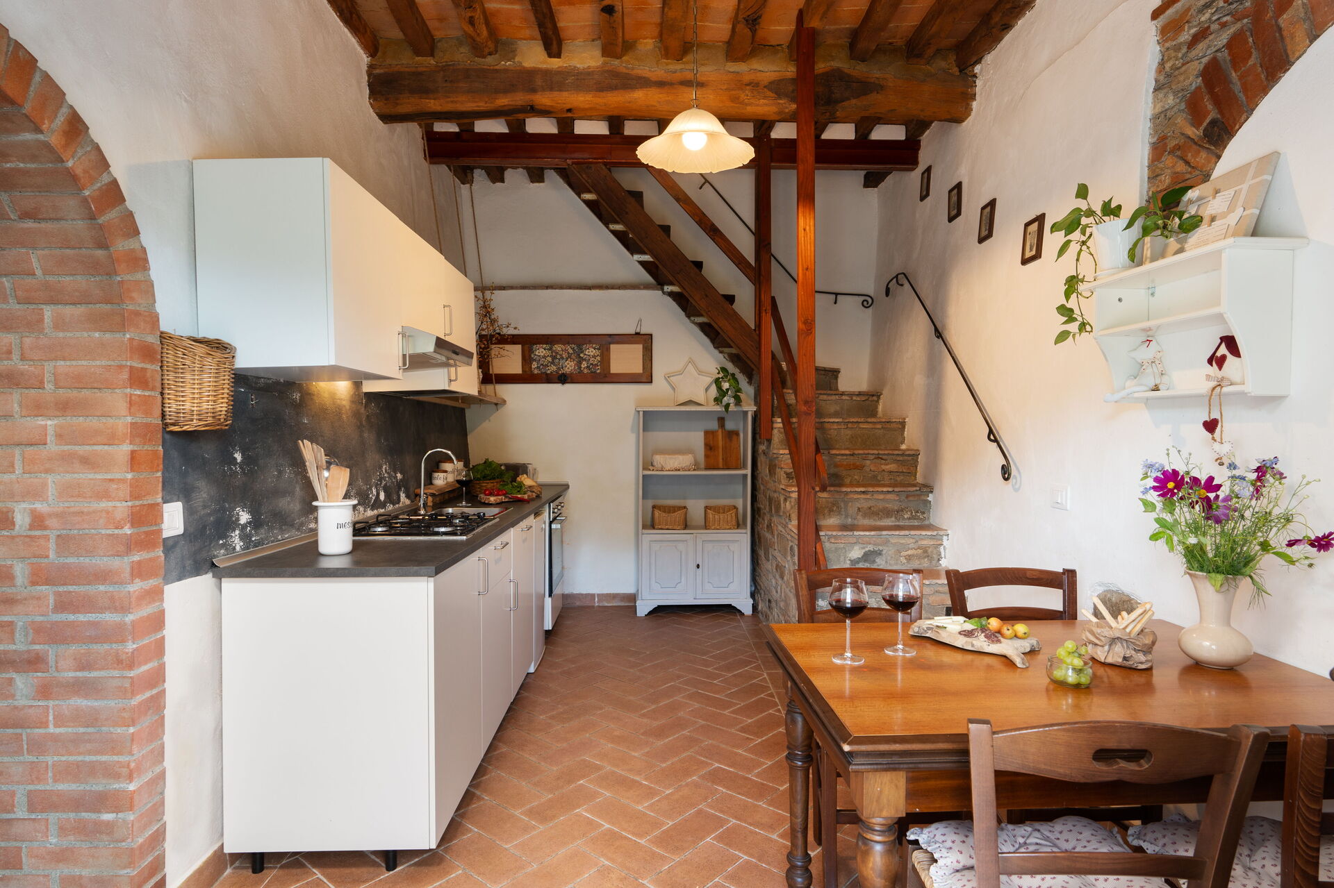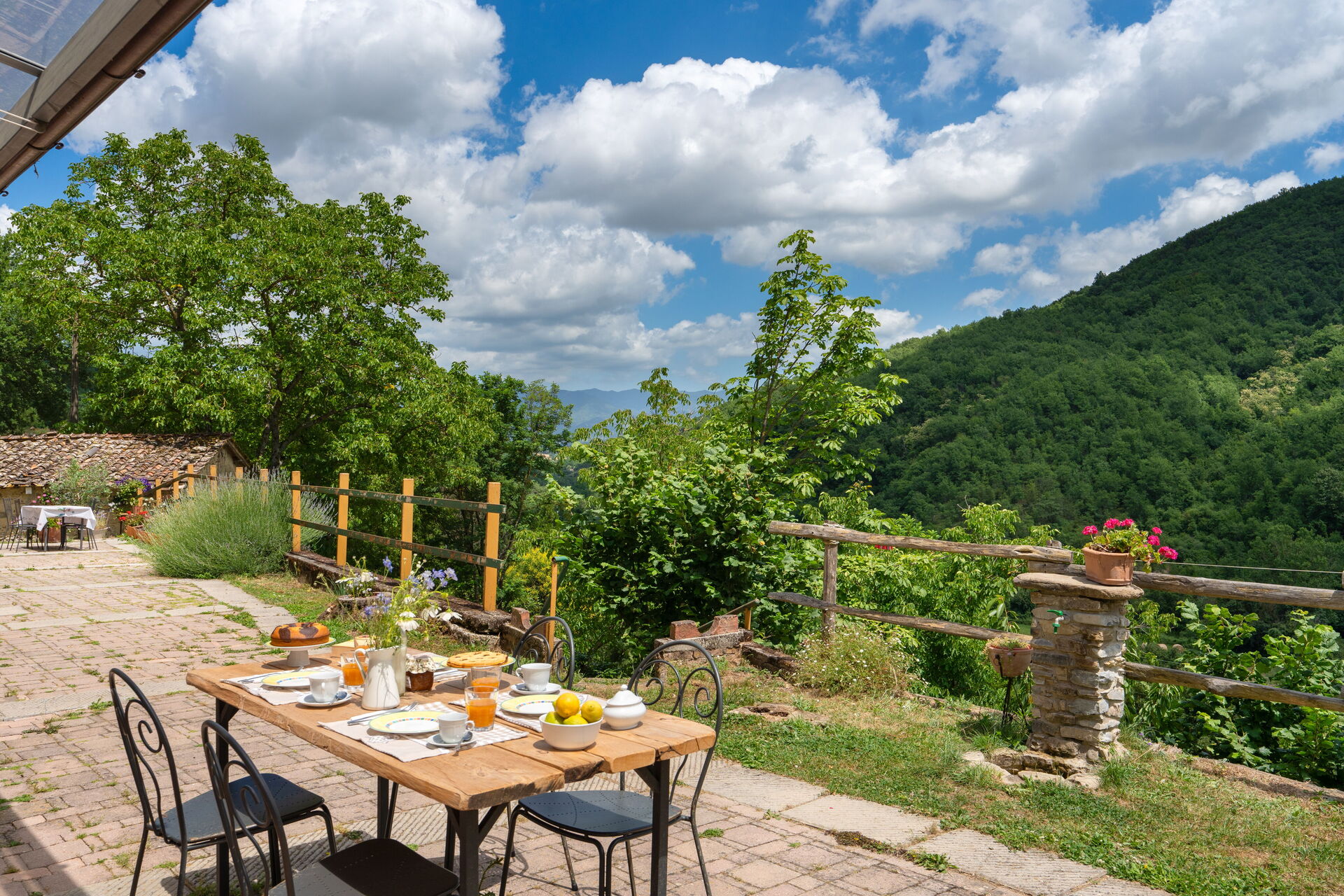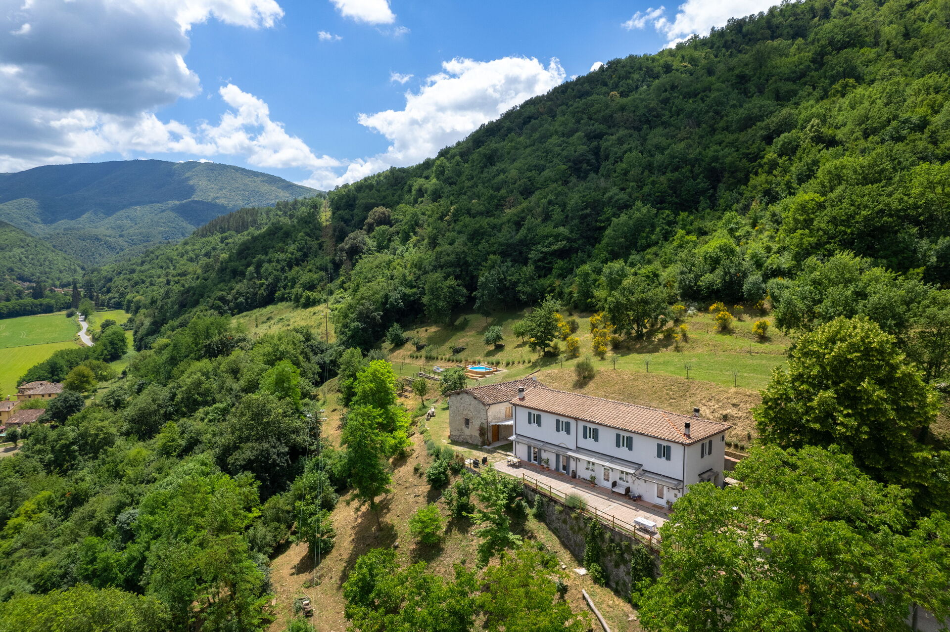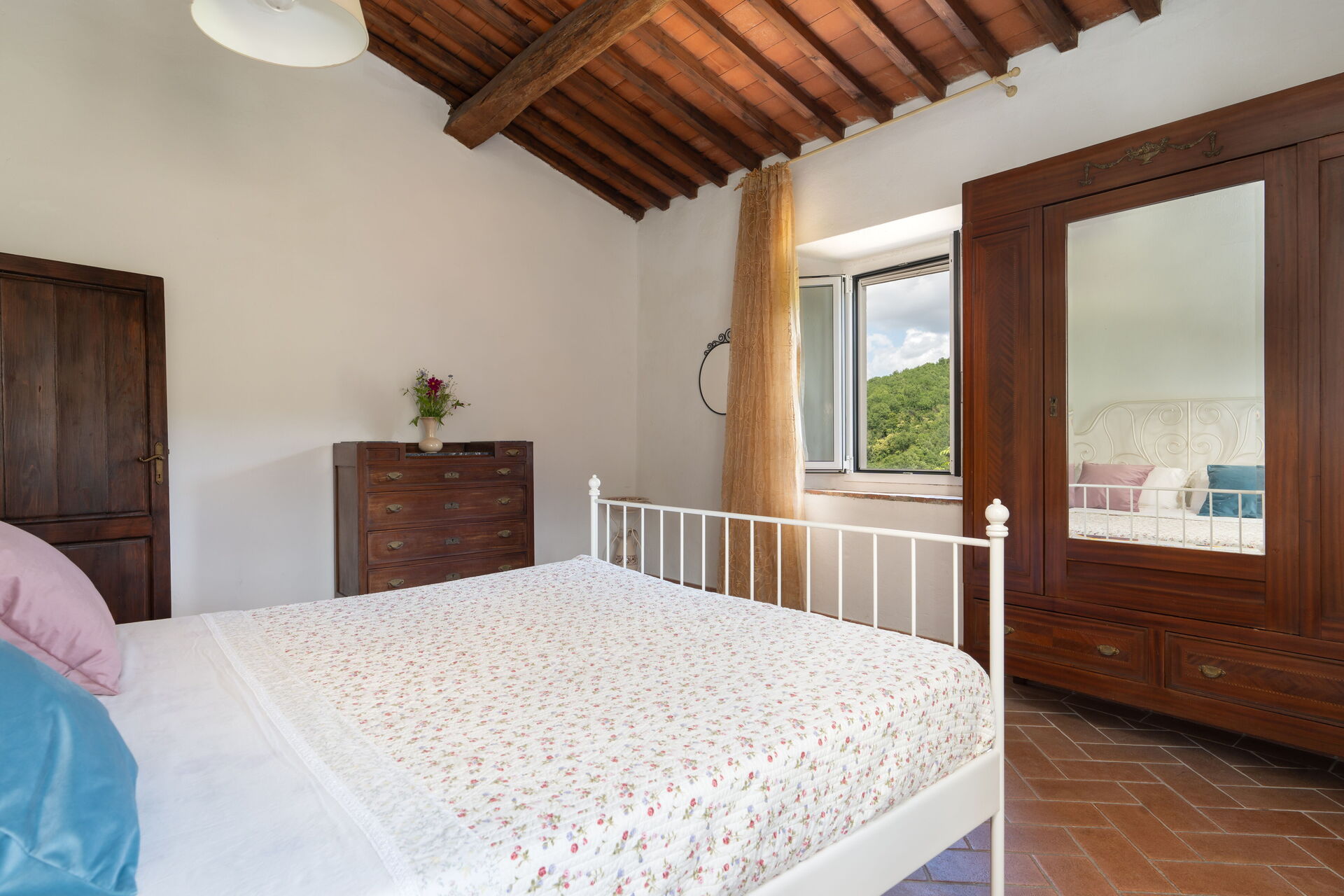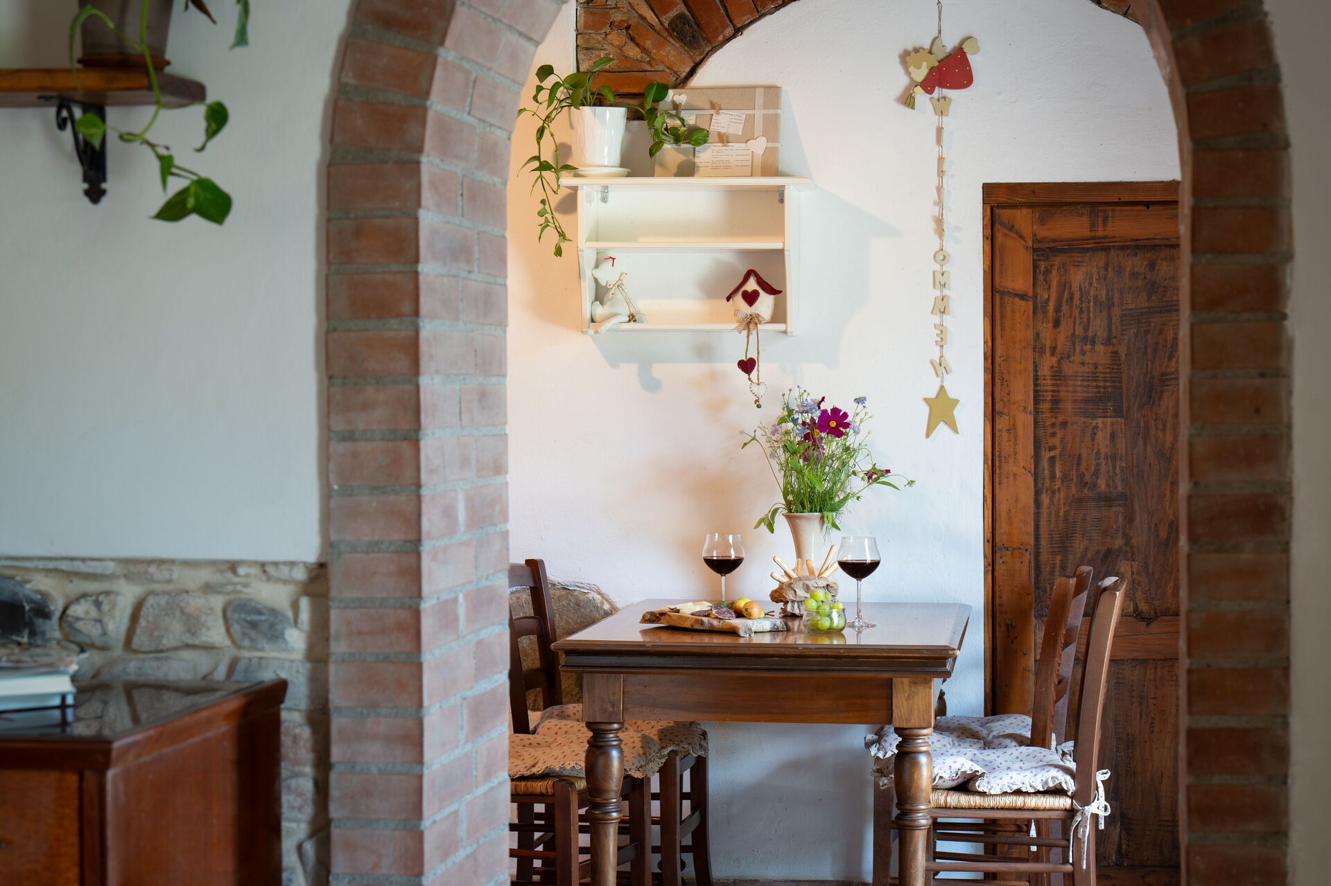 Casa colonica recentemente ristrutturata nel rispetto della tradizione toscana, situata in posizione panoramica nelle alte e verdi colline del Mugello. La proprietà, alla quale si accede attraverso circa 200 metri di strada bianca, è immersa nel verde e nel silenzio della campagna toscana ed è circondata da boschi di querce. Una parte della struttura, con accesso indipendente, è abitata dai proprietari.