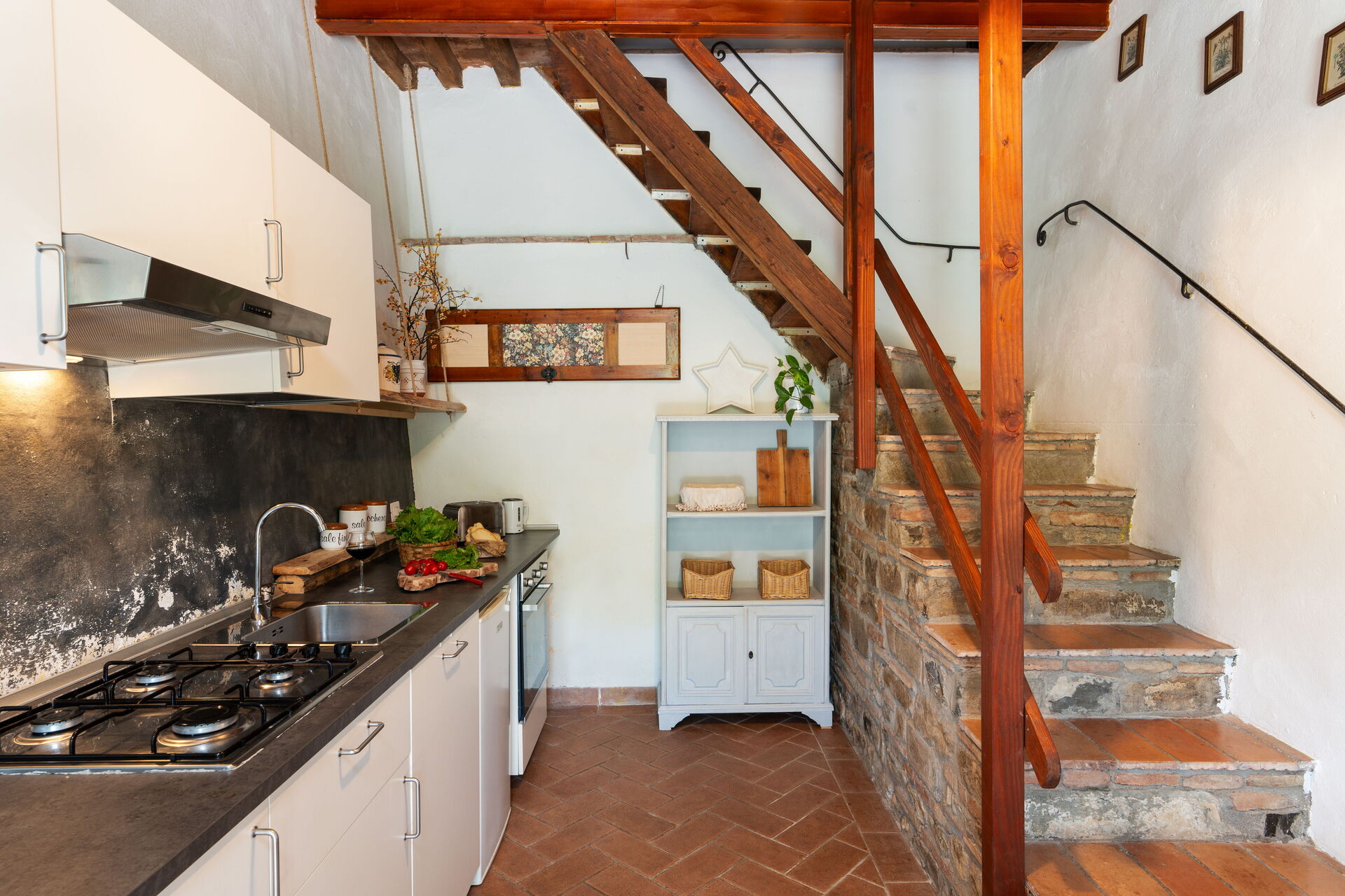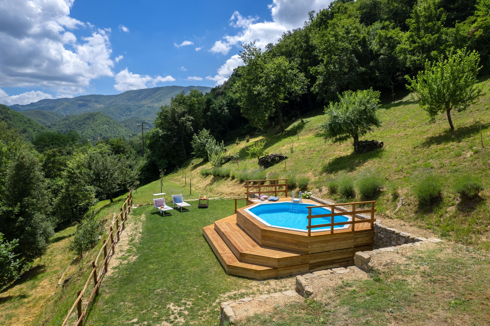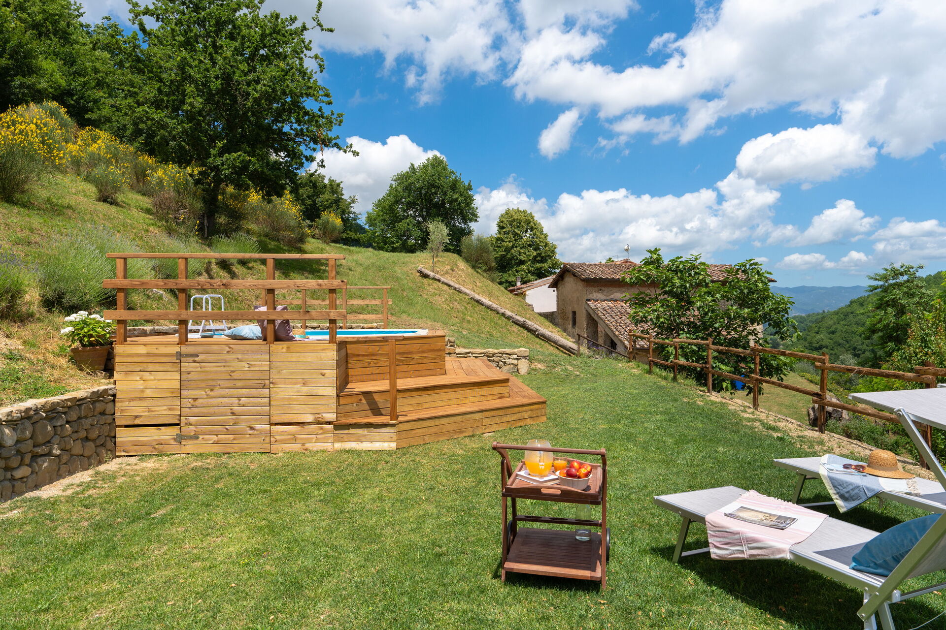 La casa è disposta su due piani e presenta un arredamento confortevole in stile rustico; all’esterno troviamo un giardino di circa 1000 mq. attrezzato con piscina ad uso esclusivo degli ospiti (5 mt. x 3,60 mt. prof. 1,20 mt.). E’ inoltre presente un loggiato utilizzabile per pranzi e cene all’aperto, barbecue. Posizione ideale per gli amanti del trekking e mountain-bikes, con itinerari tra i boschi e le cime dell'Appennino Toscano. Parcheggio privato nella proprietà. La casa si trova a 4,5 km. da Borgo San Lorenzo (acquisti di ogni genere), a 25 km. da Firenze, a 18 km. dal “Barberino Designer Outlet” (oltre 100 negozi di grandi marchi della moda italiana e internazionale) e dal lago di “Bilancino” (canoa, vela, windsurf), a 12 km. dal “Poggio dei Medici golf club”.