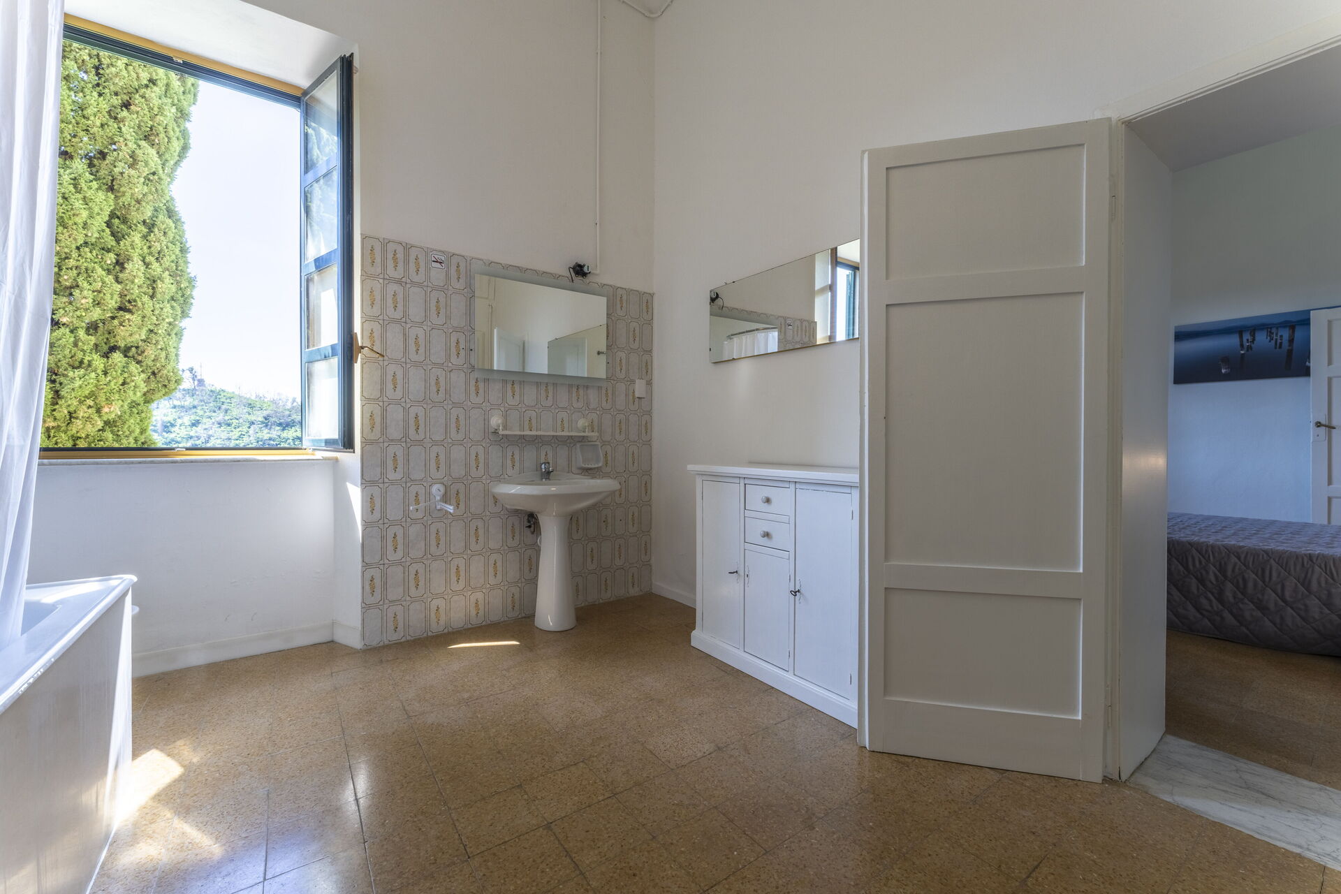 Camera da letto 6: letto matrimoniale, armadio, scrittoio con specchiera, poltrona, aria condizionata. Bagno: lavandino, wc, bidet, doccia, vasca da bagno, internet WIFI