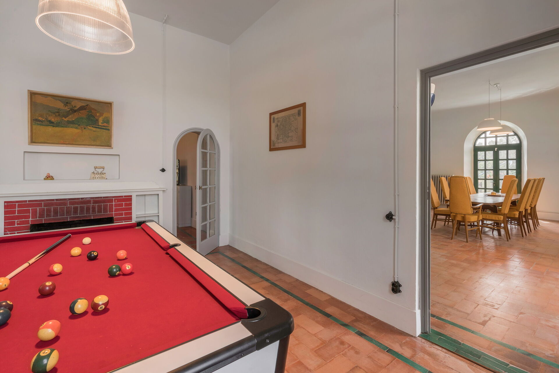 Piano terra: Sala da pranzo: porta ingresso, tavolo da pranzo 12 posti, porta uscita sulla piscina, internet WIFI. Soggiorno: caminetto, 3 divani, televisione da collegare con piattaforme streaming, internet WIFI, Stanza relax: caminetto, biliardo (pool biliard games), poltrona internet WIFI. Cucina: cucina ben attrezzata, forno, 2 frigoriferi con freezer, lavastoviglie, macchina da caffè (italiana), macchina del caffè (americano), macchina del caffè a cialde, tostapane, bollitore, piano cottura ad induzione, tavolo da pranzo con sgabelli, internet WIFI. Lavanderia: lavatrice, asciugatrice, tavolo da stiro, ferro da stiro a vapore, aspirapolvere. Bagno: lavandino, wc, internet WIFI Camera da letto 1: letto matrimoniale, appendiabiti, poltrona, aria condizionata con annesso bagno completo di lavandino, wc, bidet, doccia, internet WIFI