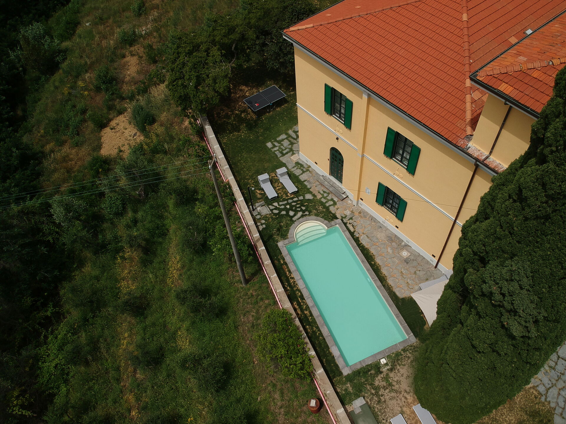 Die Ausstattung ist völlig ausreichen und durch den Billardtisch, Pool und Tischtennisplatte wird einem auch vor Ort nie langweilig. Die Lage des Hauses ist perfekt man ist alleine etwas erhöht am Berg mit einer tollen Aussicht, verkehrstechnisch sehr gut angebunden und im Bedarfsfall erreicht man auch zu Fuß ein Lokal oder ähnliches in Massarossa. Wir würden das Haus jederzeit wieder mieten. Danke nochmal an Monica für den tollen Service vor Ort.