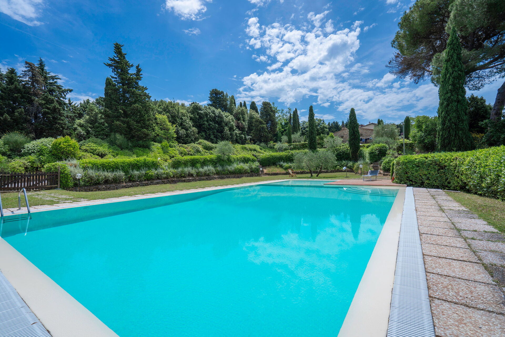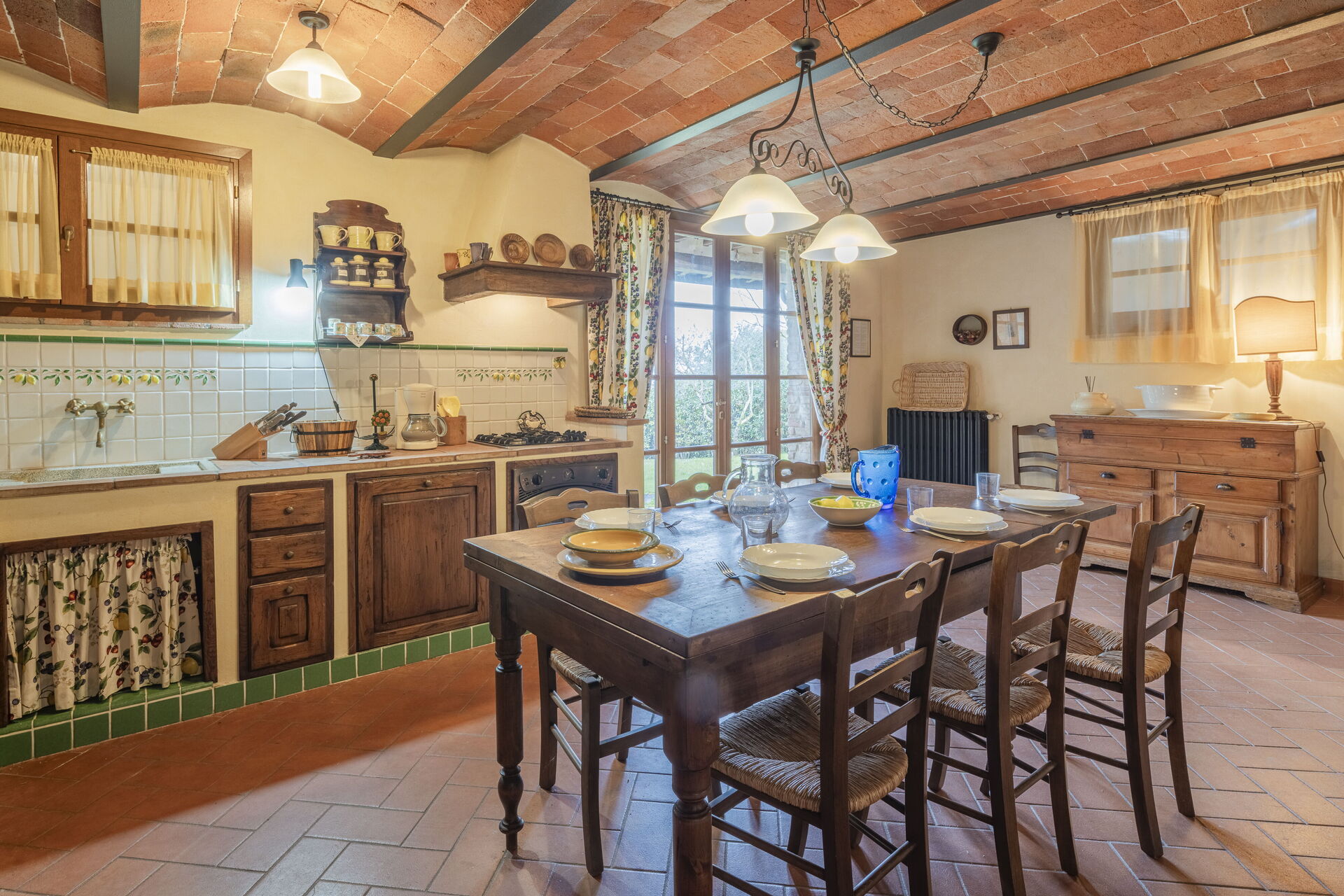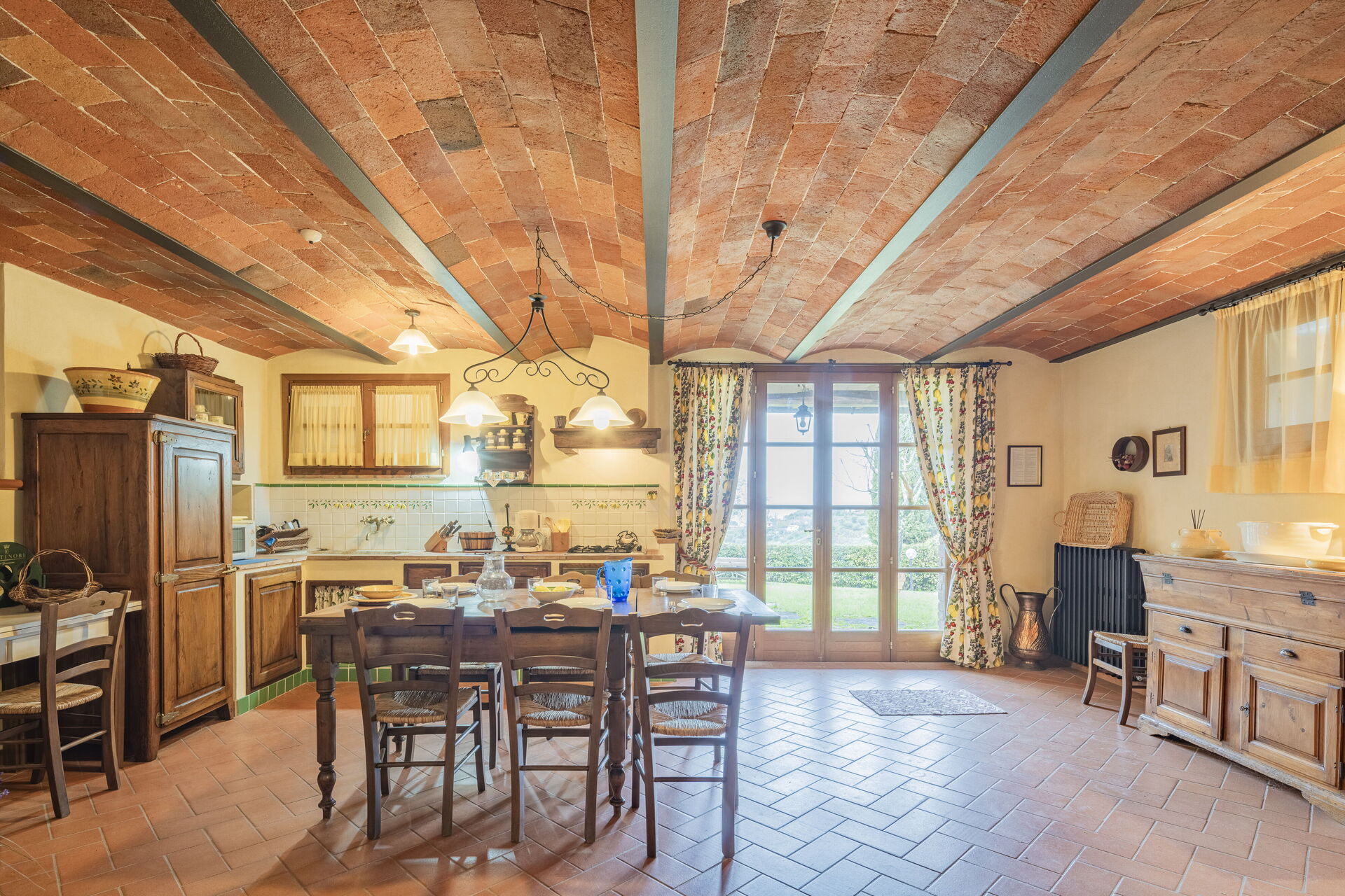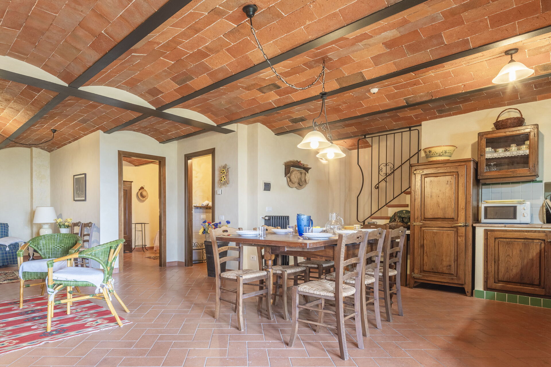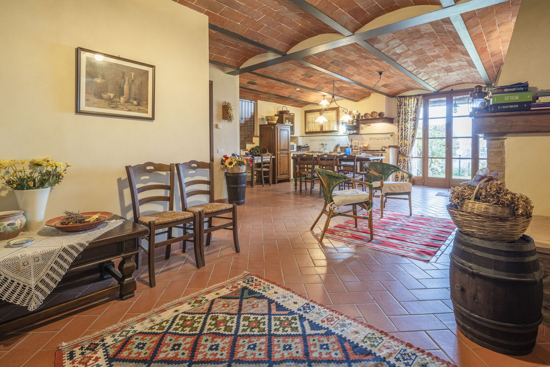 Casa indipendente con piscina ad uso condiviso a Montaione. Lo spazio esterno è attrezzato con barbecue, tavolo e sedie per cucinare e mangiare all'aperto. Dalla casa c'è accesso diretto sul giardino con veranda coperta di pertinenza degli ospiti.