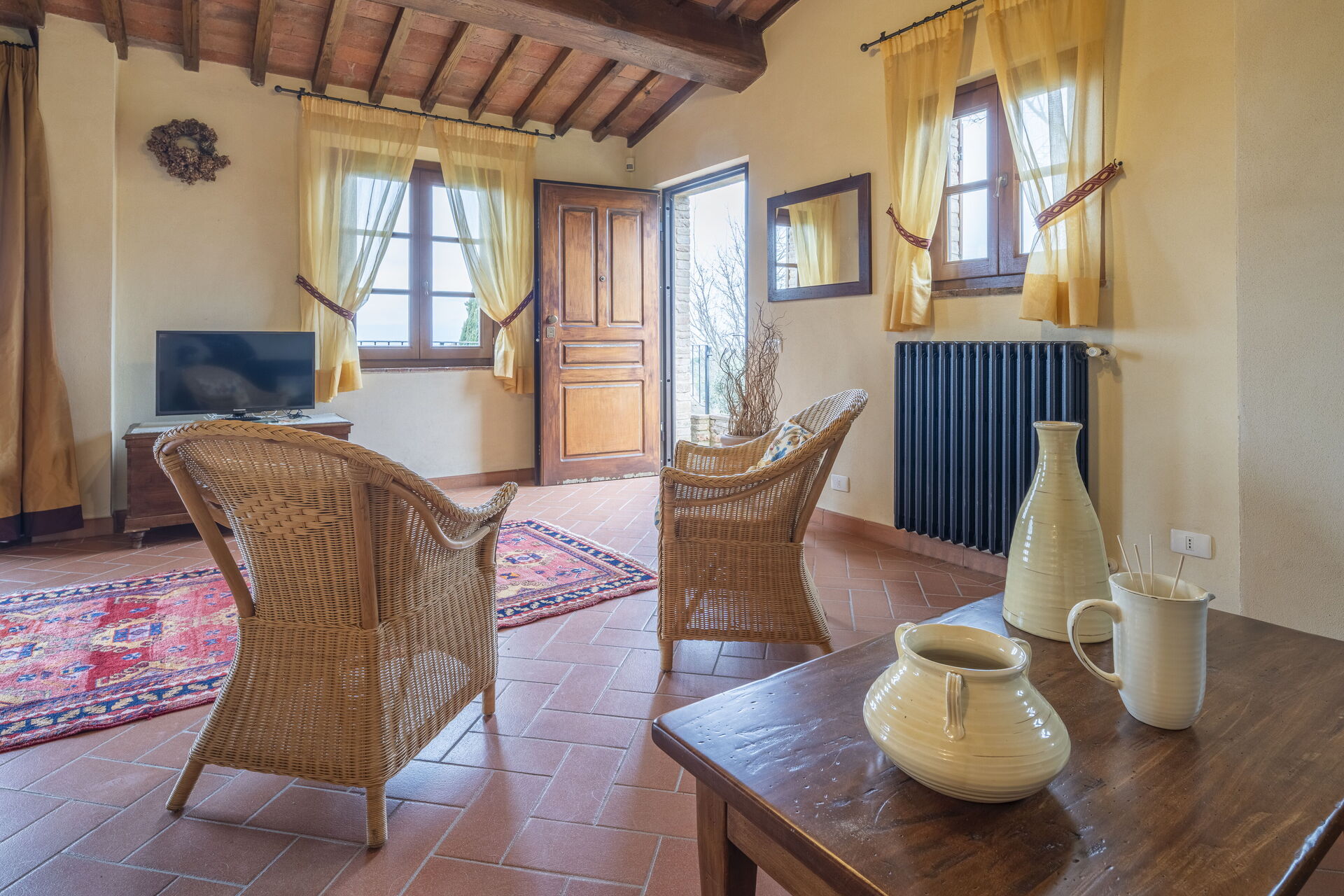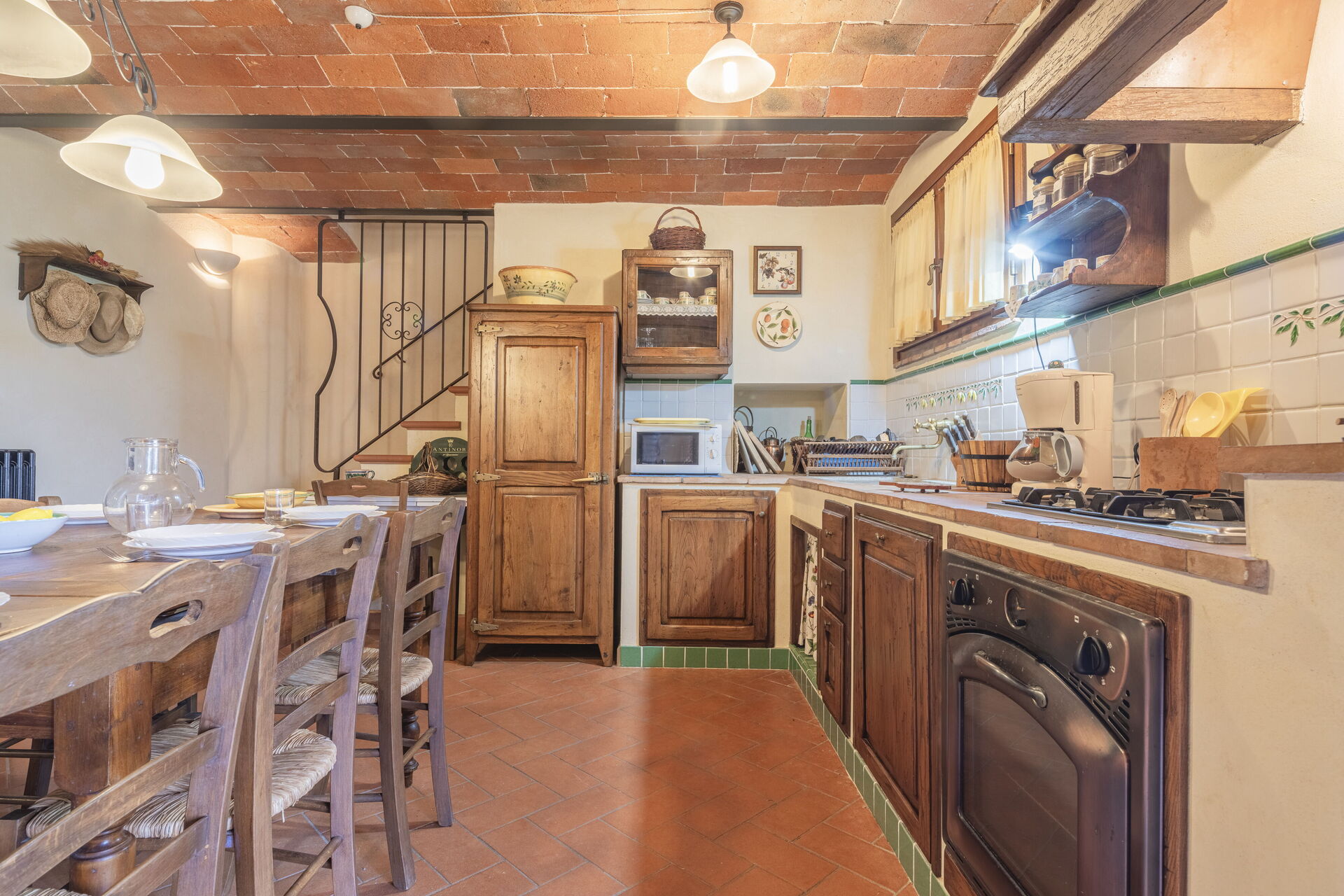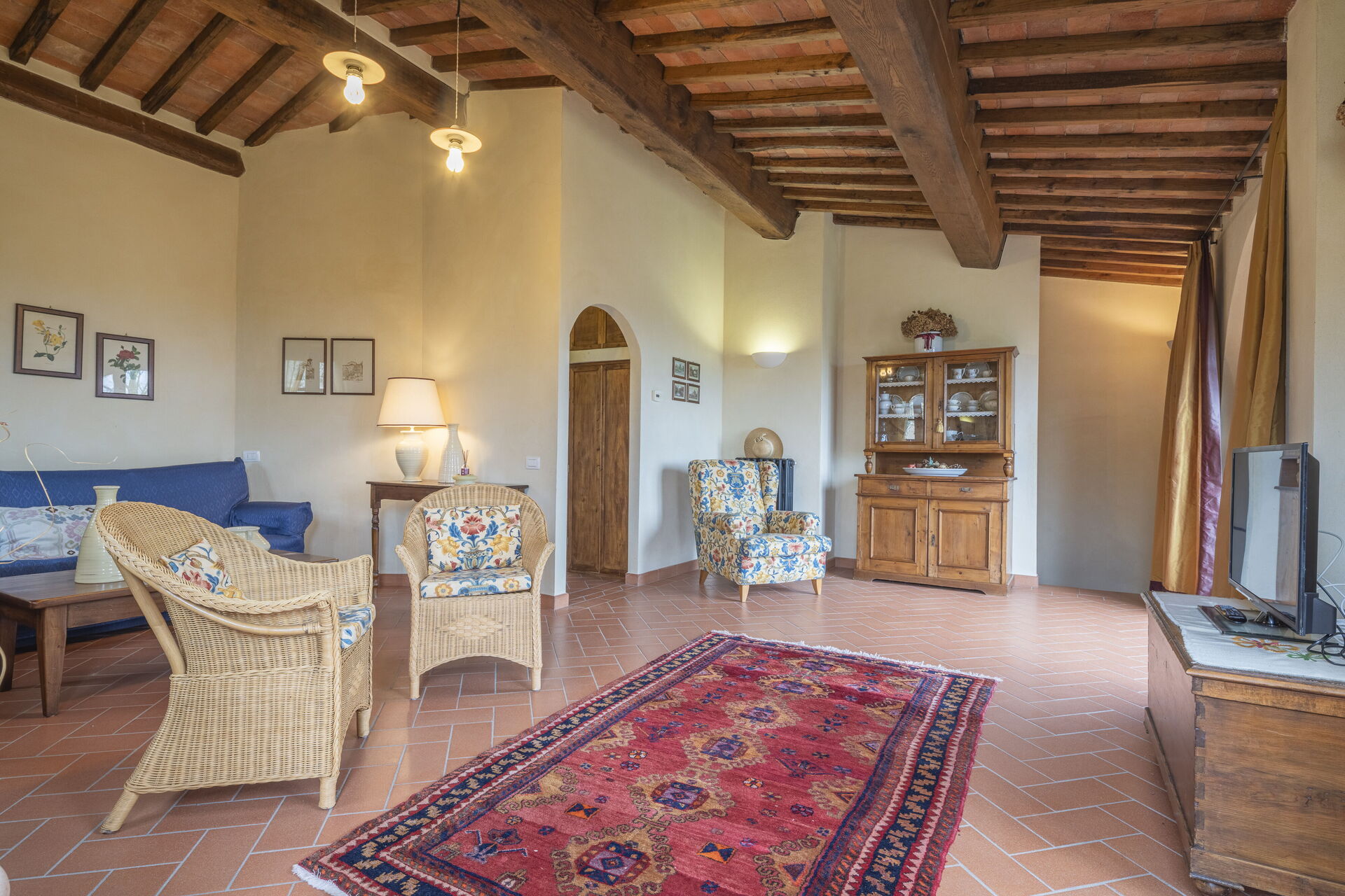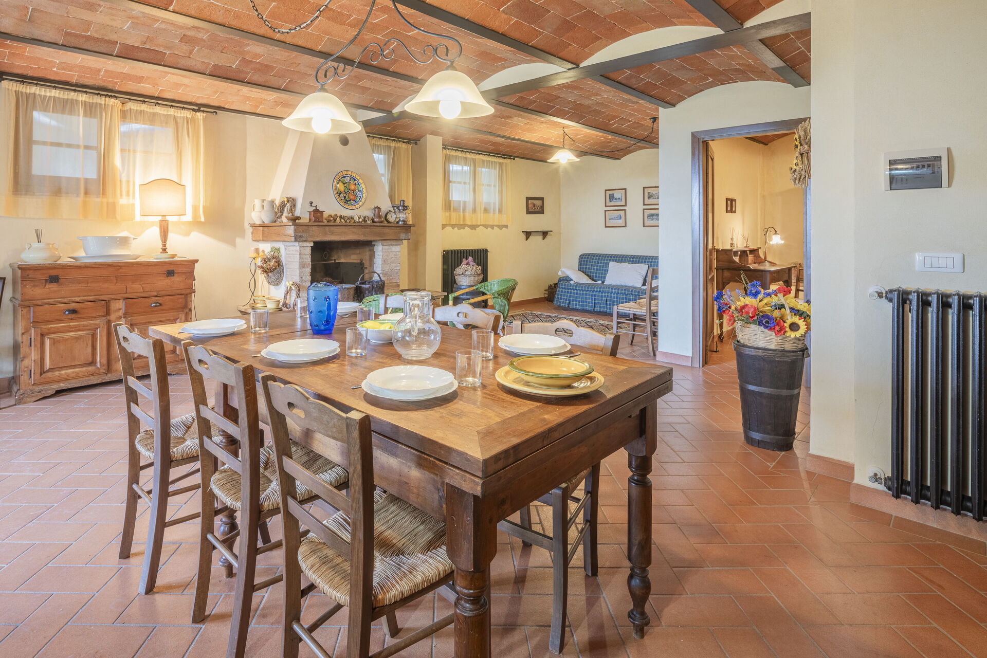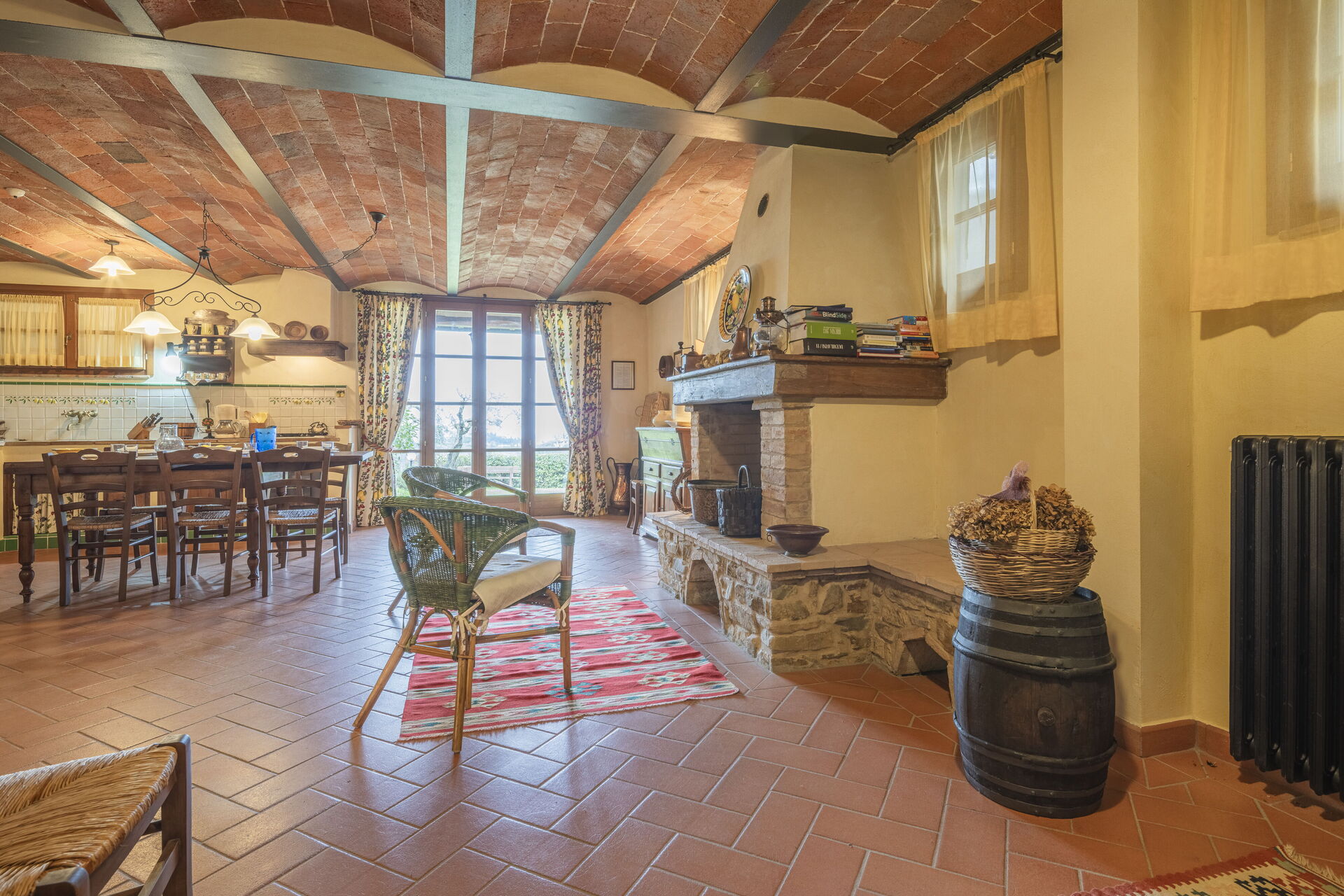 Casa indipendente con piscina ad uso condiviso a Montaione. Lo spazio esterno è attrezzato con barbecue, tavolo e sedie per cucinare e mangiare all'aperto. Dalla casa c'è accesso diretto sul giardino con veranda coperta di pertinenza degli ospiti.