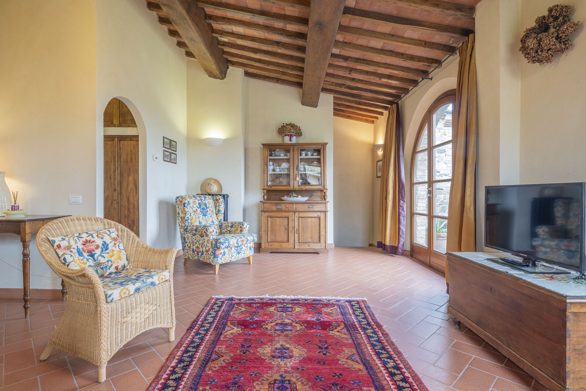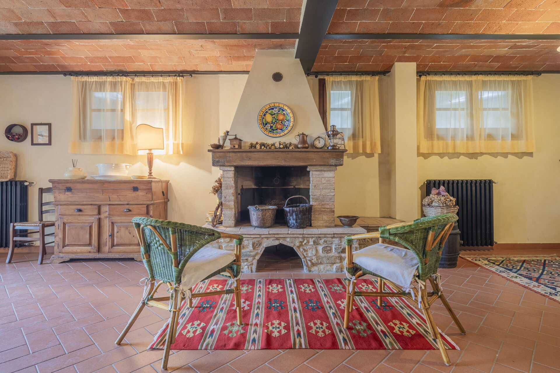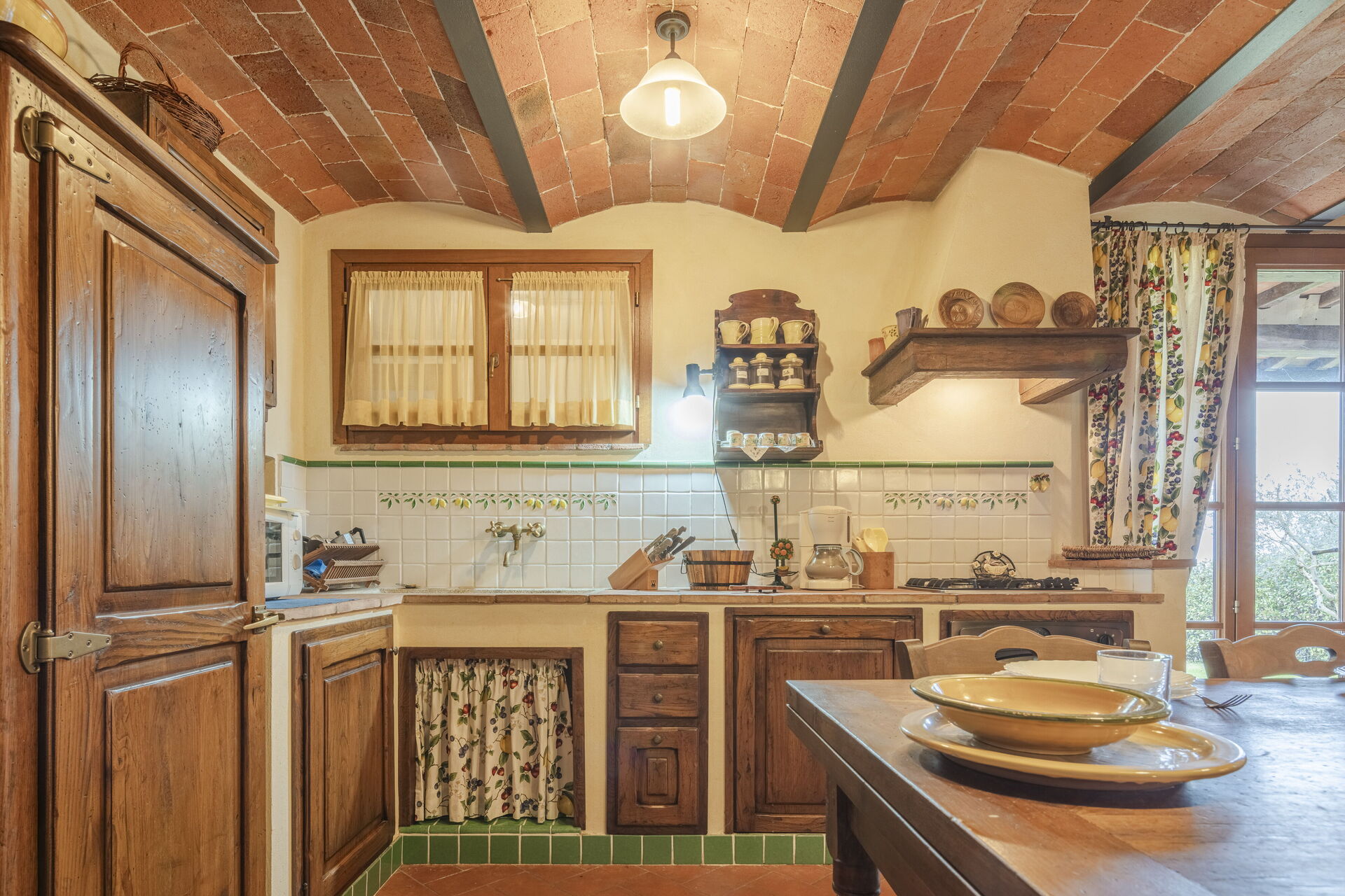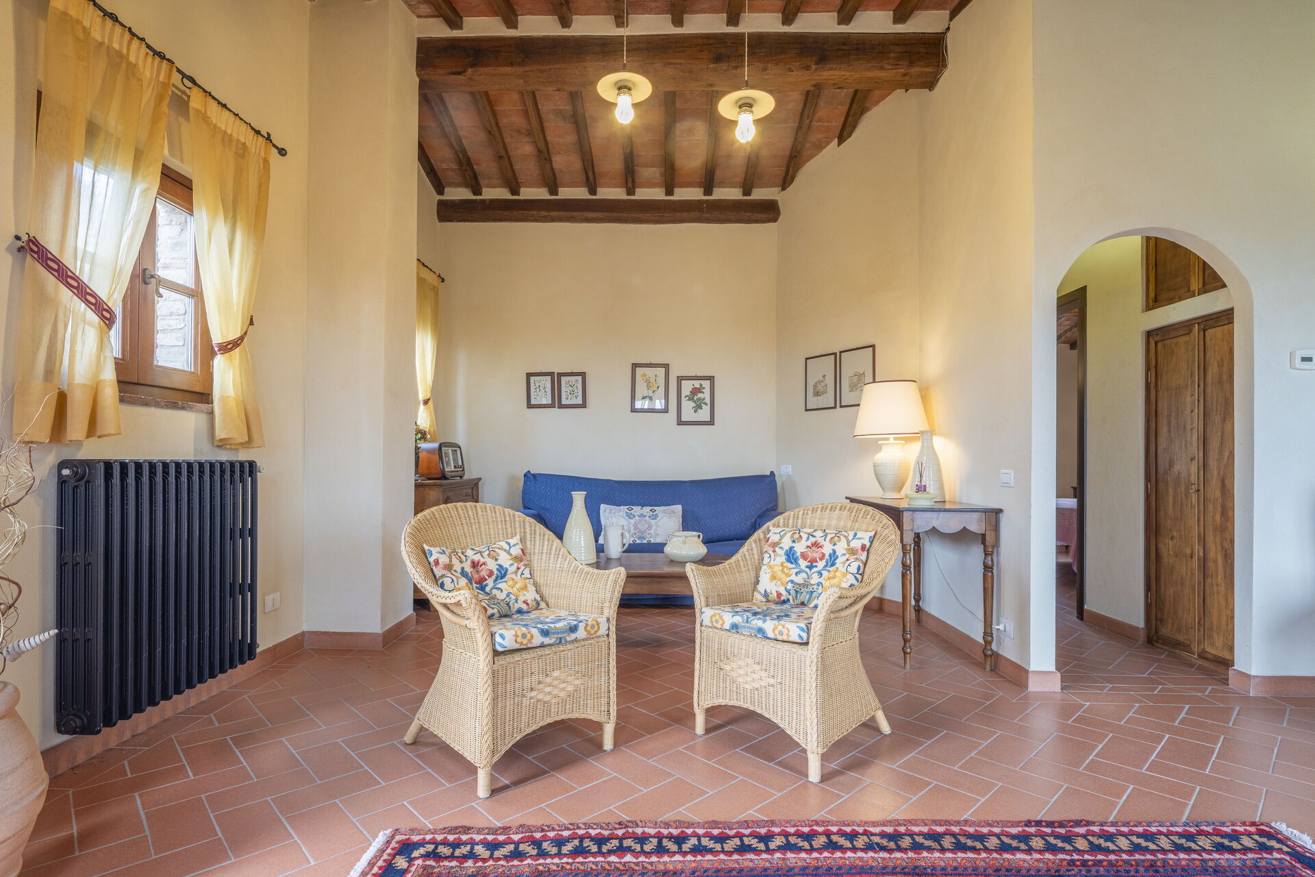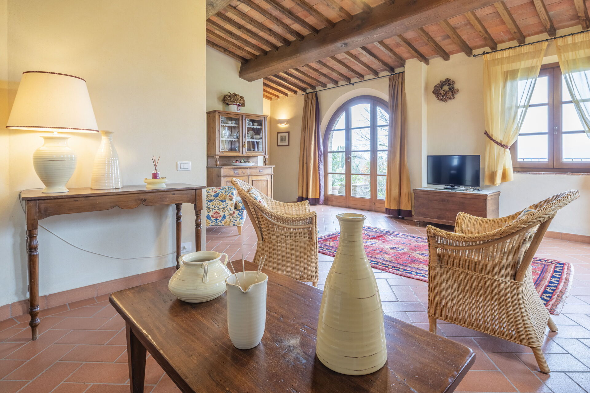 Casa indipendente con piscina ad uso condiviso a Montaione. Lo spazio esterno è attrezzato con barbecue, tavolo e sedie per cucinare e mangiare all'aperto. Dalla casa c'è accesso diretto sul giardino con veranda coperta di pertinenza degli ospiti.