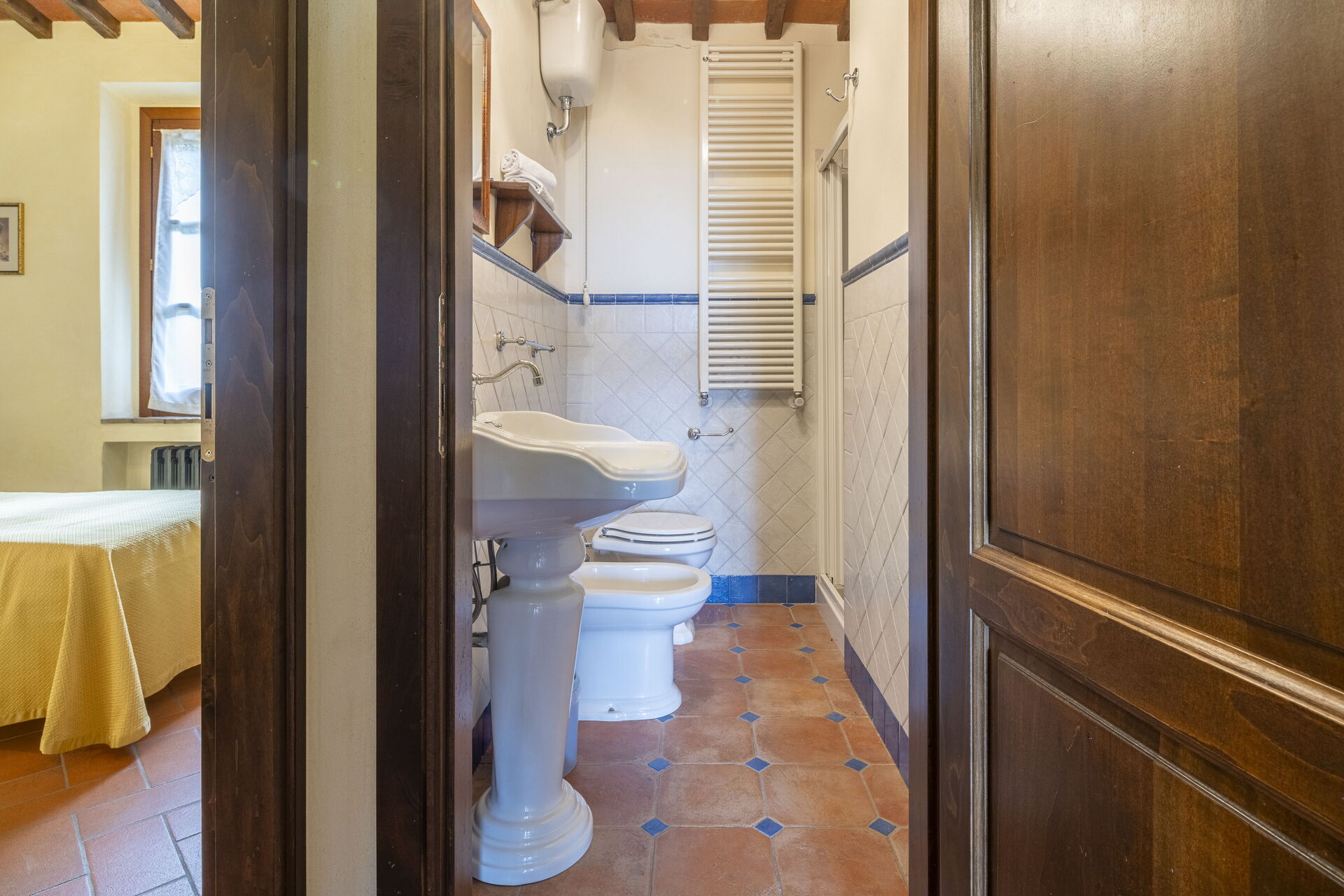 Al primo piano (accesso sul giardino con scala esterna) camera matrimoniale con bagno en suite, camera con 2 letti singoli e bagno con doccia. Soggiorno con televisione, convertibile in angolo lavoro aggiungendo una scrivania.