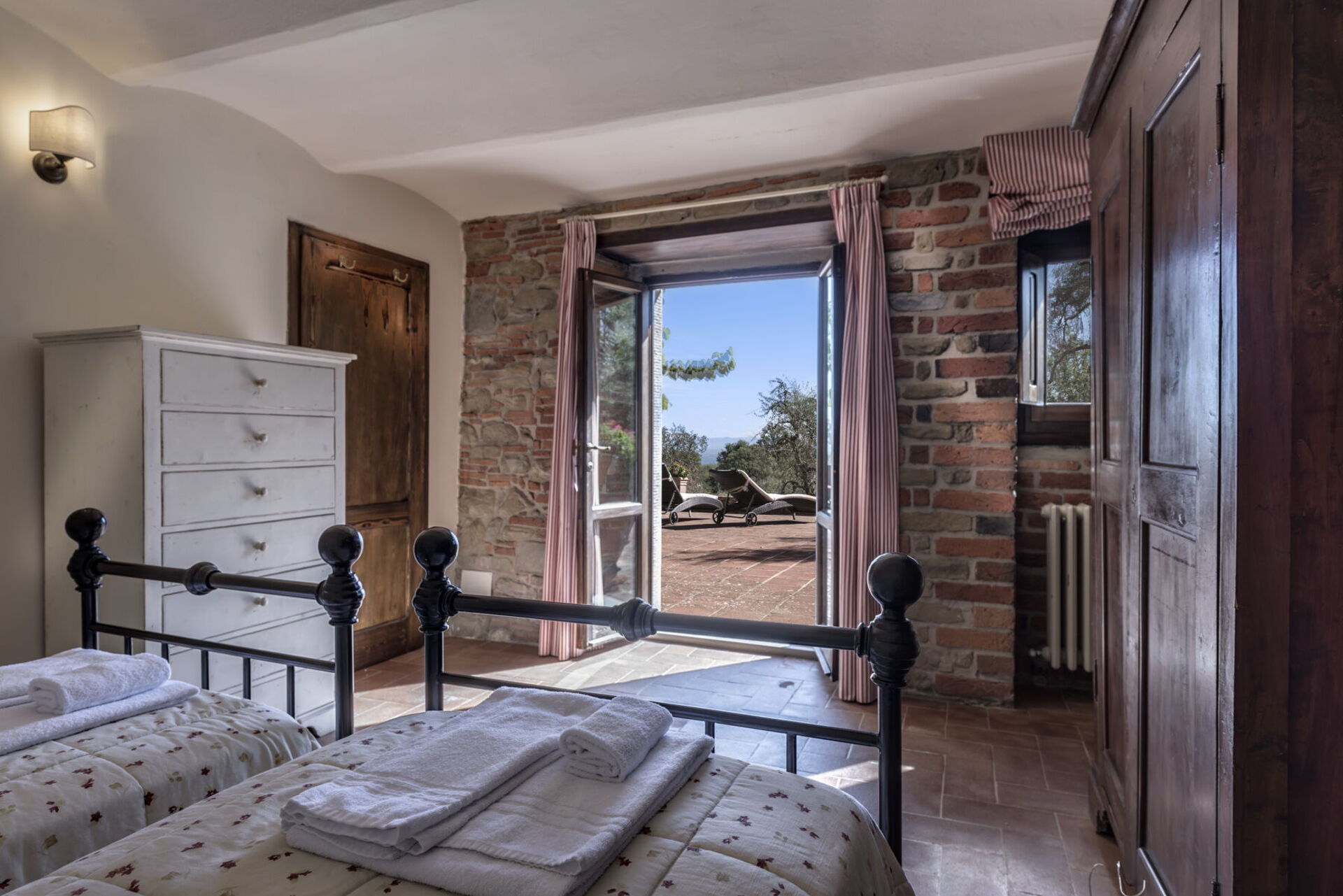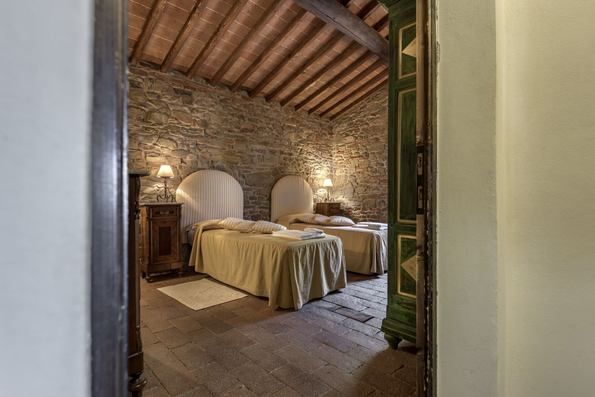 Nella zona notte mura in pietra e altri dettagli dal grande fascino vi trasmetteranno serenità facendovi sentire davvero a casa. Nelle camere troverete letti matrimoniali e letti gemelli facilmente convertibili ma anche armadi e cassettiere e porte che vi condurranno direttamente all’esterno, o in terrazza o in giardino, essendo tutte le camere dotate di terrazzo o patio attrezzato.