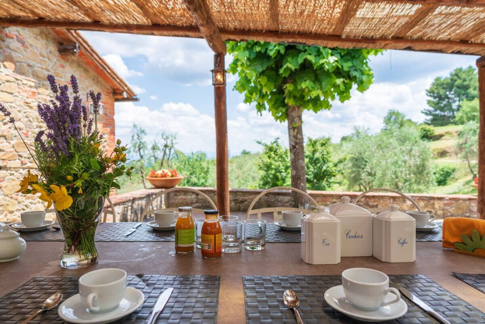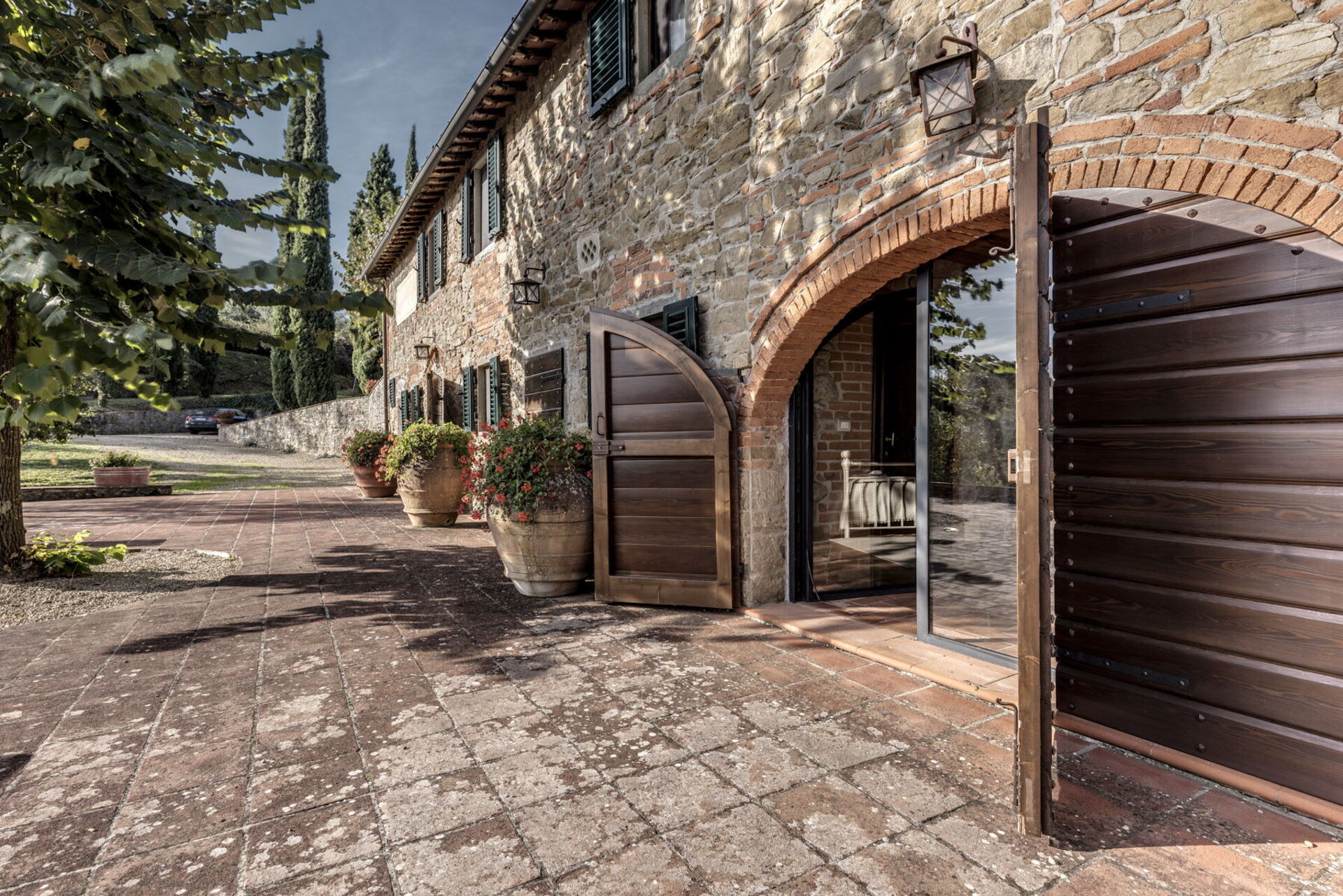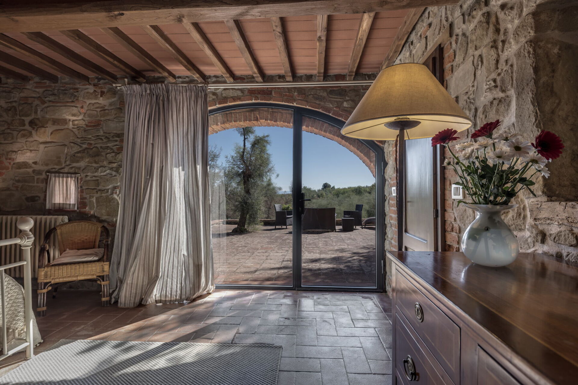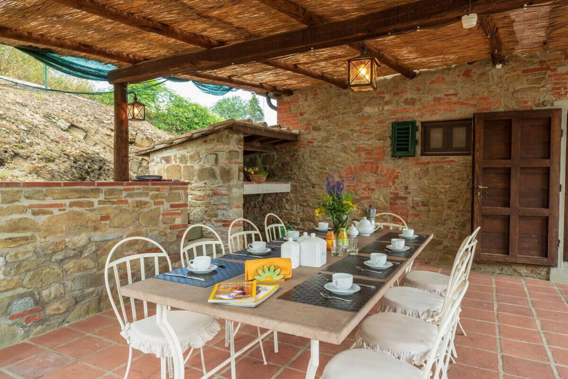 Tra uliveti, vigneti e boschi, verrete rapiti da una breve strada bianca che vi porterà direttamente fino alla proprietà immersa nel suo grande giardino con terrazzo. La dimora dispone di ampi spazi all’aperto e di un pergolato attrezzato che ne suggerisce l’identità e ne segna, da sempre, anche la storia. Sotto questo spazio potrete trascorrere ore in compagnia e organizzare momenti conviviali in famiglia o con gli amici. Troverete un tavolo con sedie e un barbecue per mangiare all’aperto ma anche il refrigerio giusto nelle calde giornate estive.