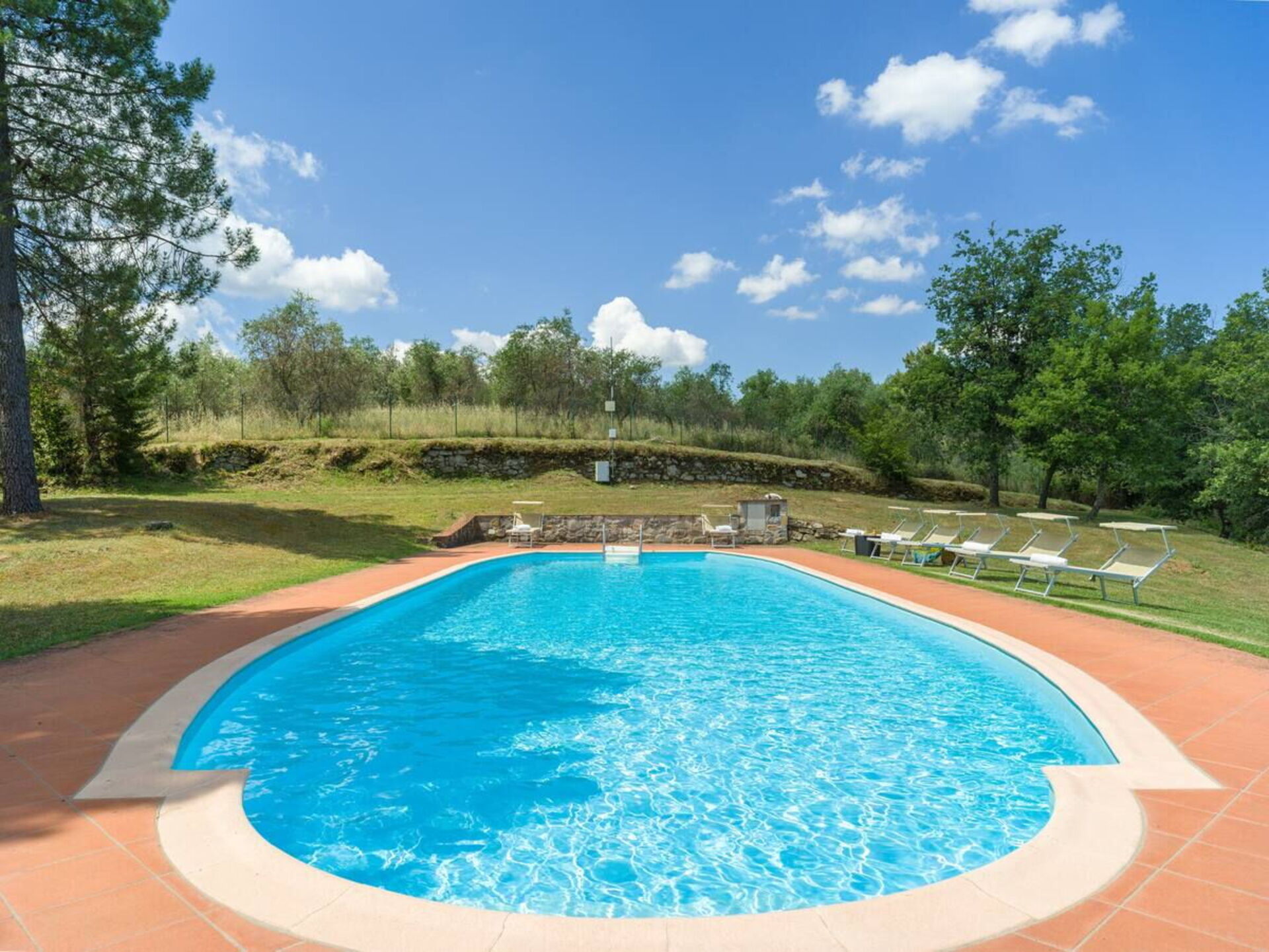 Scendendo qualche gradino potrete tuffarvi nella grande piscina all’aperto che misura 15 metri di lunghezza per 5 di larghezza e una profondità che va dal metro ai due metri e mezzo, da dove potrete scorgere alcuni borghi tipici della zona, tra cui Gaiole, Montevarchi e altre realtà della campagna toscana più o meno note ma tutte assolutamente interessanti da visitare ed esplorare.