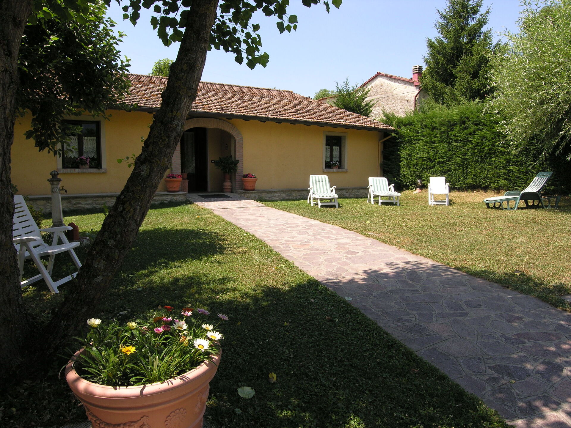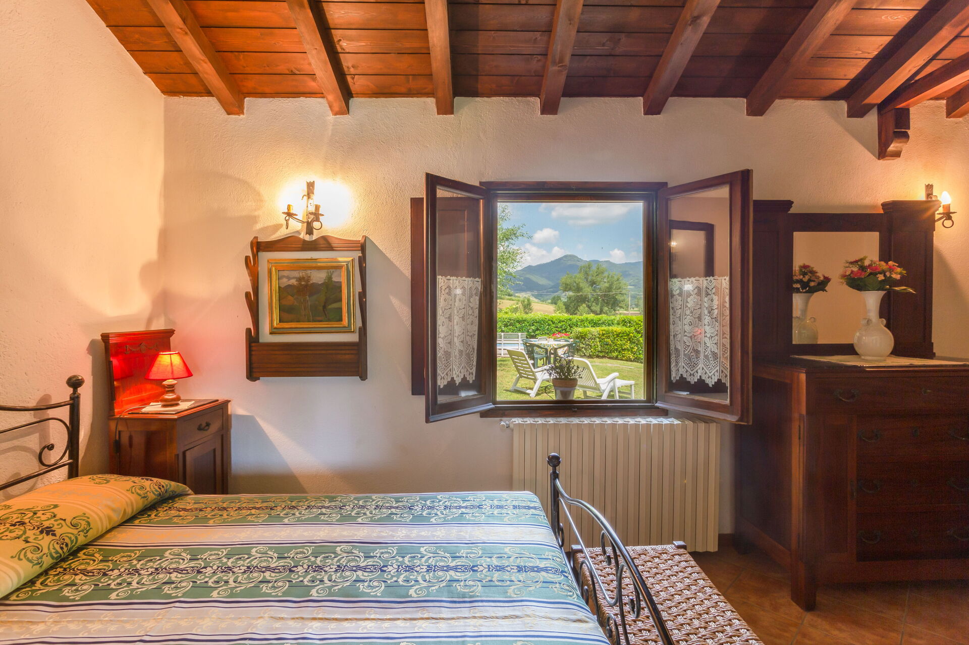 Casa colonica ben ristrutturata, su due livelli, arredata con cura e gusto. La proprietà è immersa nella verde vallata del Mugello, a pochi chilometri da Firenze, in posizione molto tranquilla con bella vista sulla campagna circostante. La casa è dotata di un bel giardino recintato di 1500mq. attrezzato con piscina seminterrata ad uso esclusivo degli ospiti (8m. x 4m. prof. 150cm.). La proprietà dispone inoltre di spazio esterno attrezzato con barbecue per pranzi e cene all’aperto e di parcheggio privato. Internet Wi-Fi gratuito. La casa si trova a 4km. da “Vicchio” (paese natale di Giotto e del Beato Angelico), a 28km. da Firenze, a 23km. dal “Barberino Designer Outlet” (oltre 100 negozi di grandi marchi della moda italiana e internazionale) e dal lago di “Bilancino” (canoa, vela, windsurf), a 15km. dal “Poggio dei Medici golf club”.