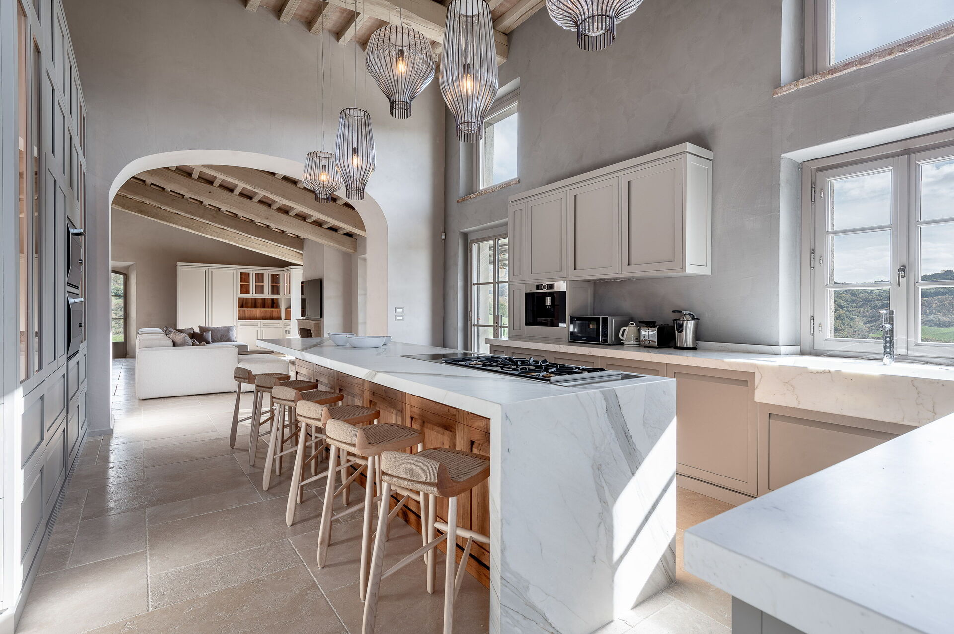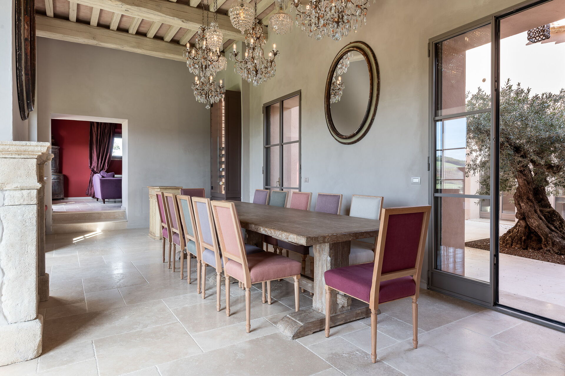 La villa è perfettamente restaurata con arredi eleganti e curati in ogni particolare con soffitti con travi a vista, dove poter trascorrere giornate e serate speciali. All’interno ci sono aree comuni con caminetti, TV a schermo piatto oltre ad una sala da pranzo che si apre su un cortile interno. La splendida cucina in stile dotata di tutti gli elettrodomestici moderni dove possono essere preparati colazioni e pasti per pranzi e cene.