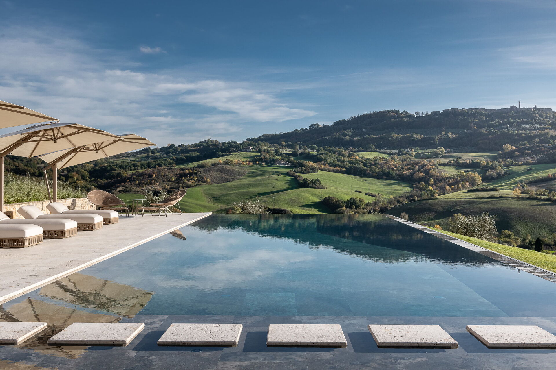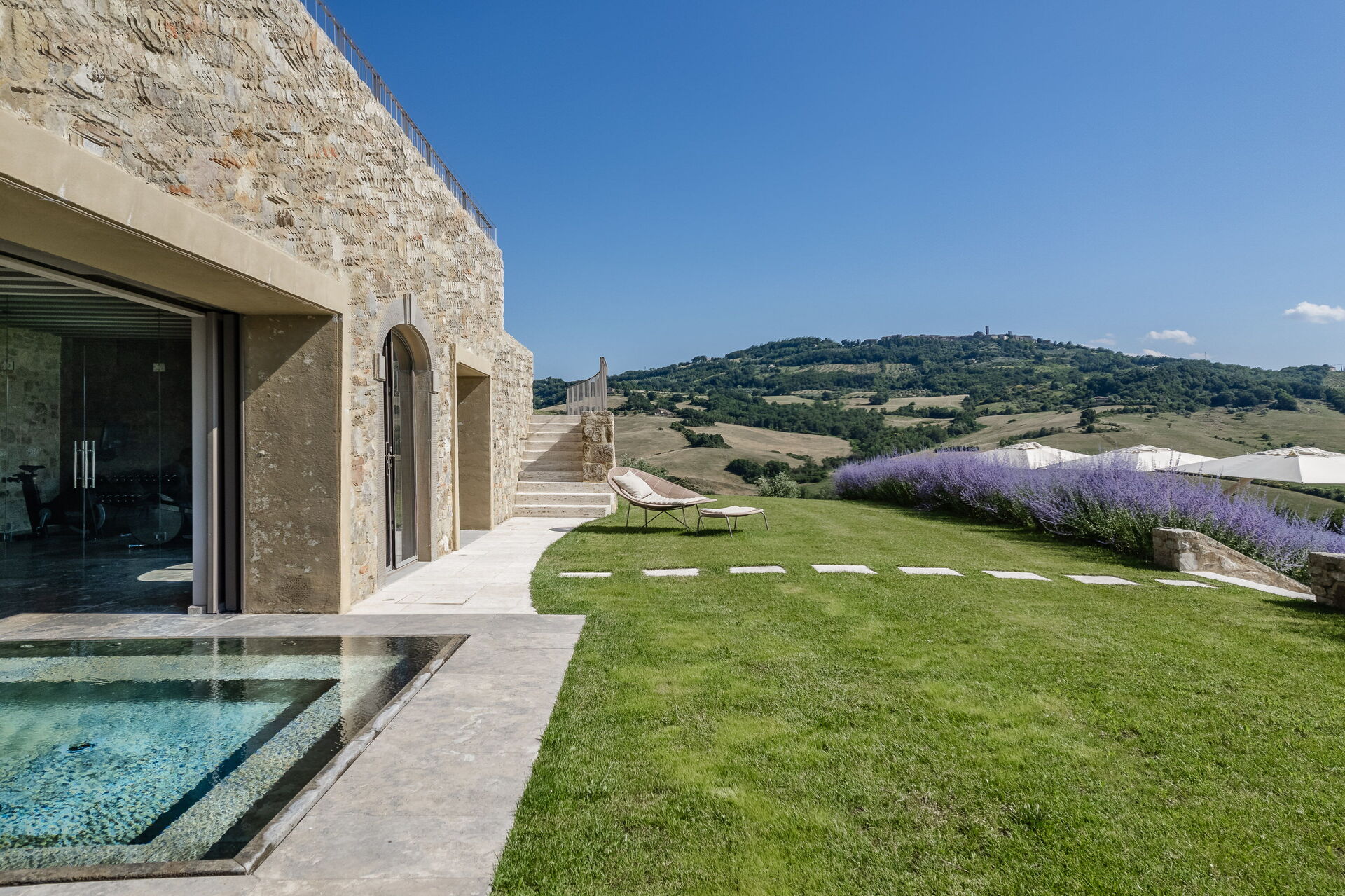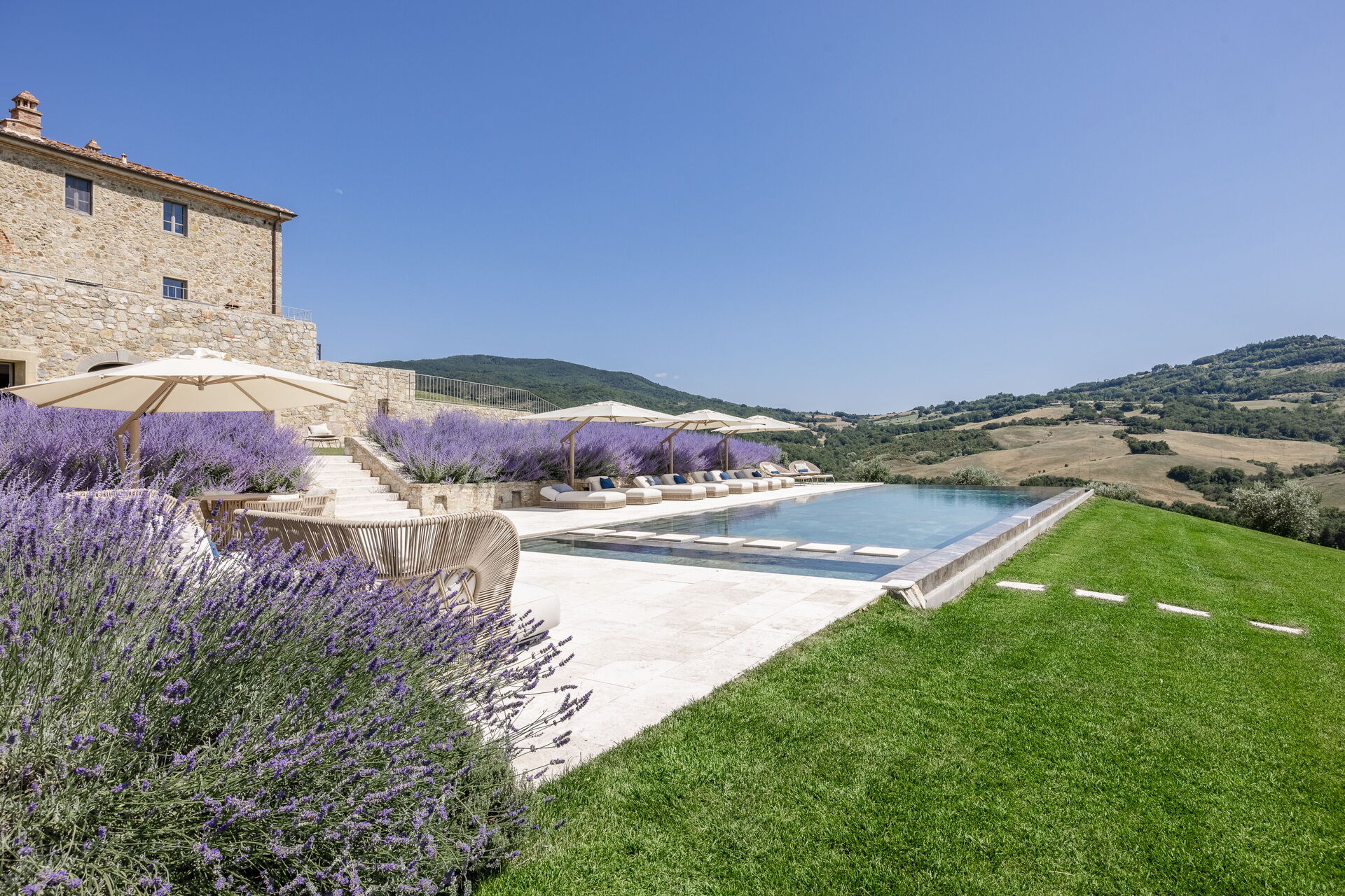 La proprietà è costituita da una villa principale, il tutto immerso nei vasti giardini con prati curatissimi, dove è ubicata la piscina a sfioro di ampie dimensioni ( 22metri) con getti massaggianti alle sue estremità perfetta per immergersi e godere sui lettini della bellissima vista sul panorama circostante fatto di vigneti e ulivi.