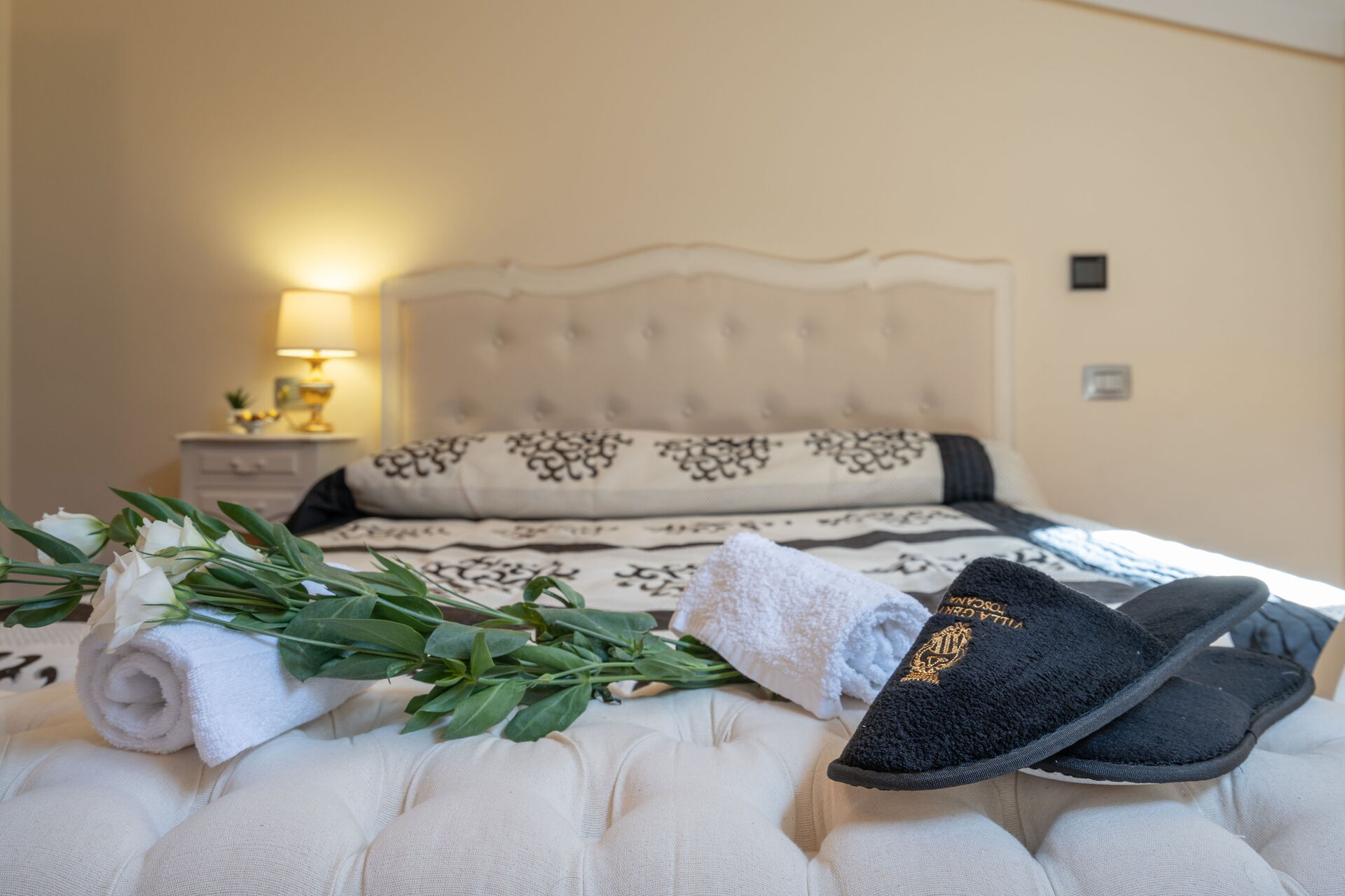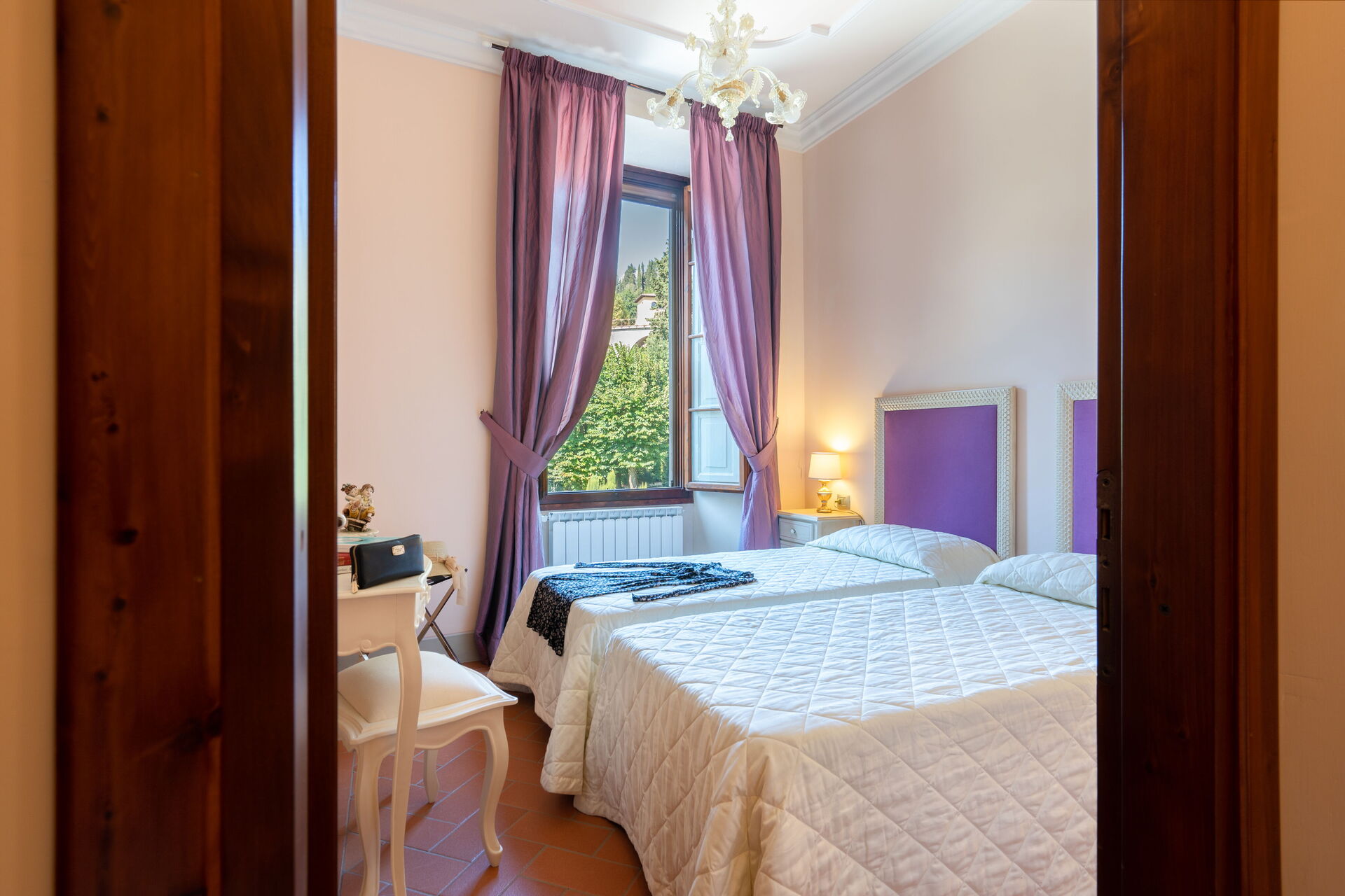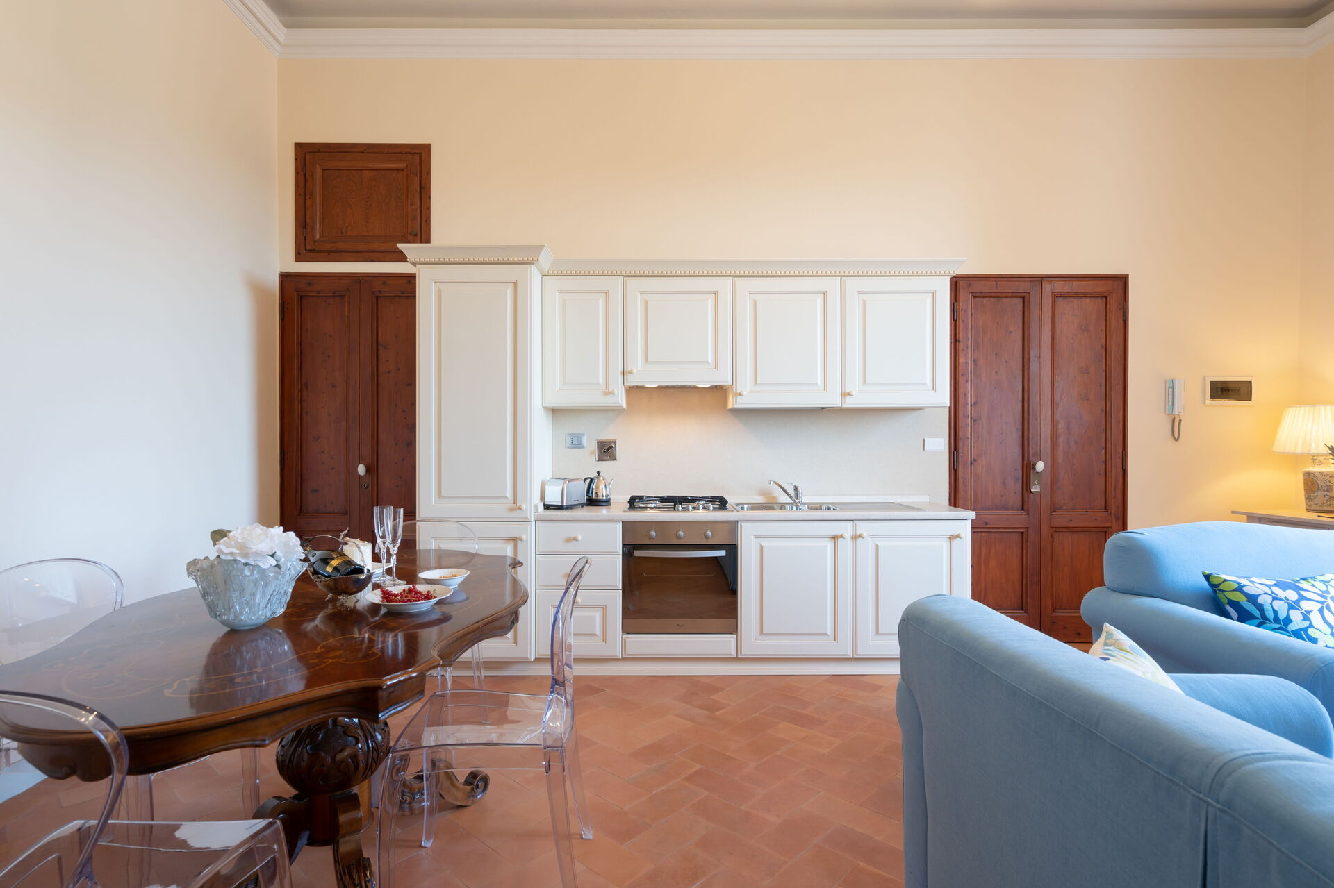 La villa, risalente al 1700 e recentemente ristrutturata, è disposta su più livelli e comprende 6 unità autonome per un totale di 26 posti. L'arredamento è finemente curato nei dettagli, garantendo l'atmosfera e l’autenticità di una villa del Settecento, con mobili in stile ed elementi d'antiquariato. La struttura si presta molto bene ad essere affittata come ambiente unico in quanto al piano terra troviamo un’ampia sala da pranzo dove poter comodamente mangiare tutti insieme, mentre al primo piano c'è una cucina professionale comune completamente accessoriata. L’utilizzo della cucina professionale è consentito esclusivamente allo chef incaricato dalla proprietà o a professionisti con certificazione HACCP, previa approvazione della proprietà.