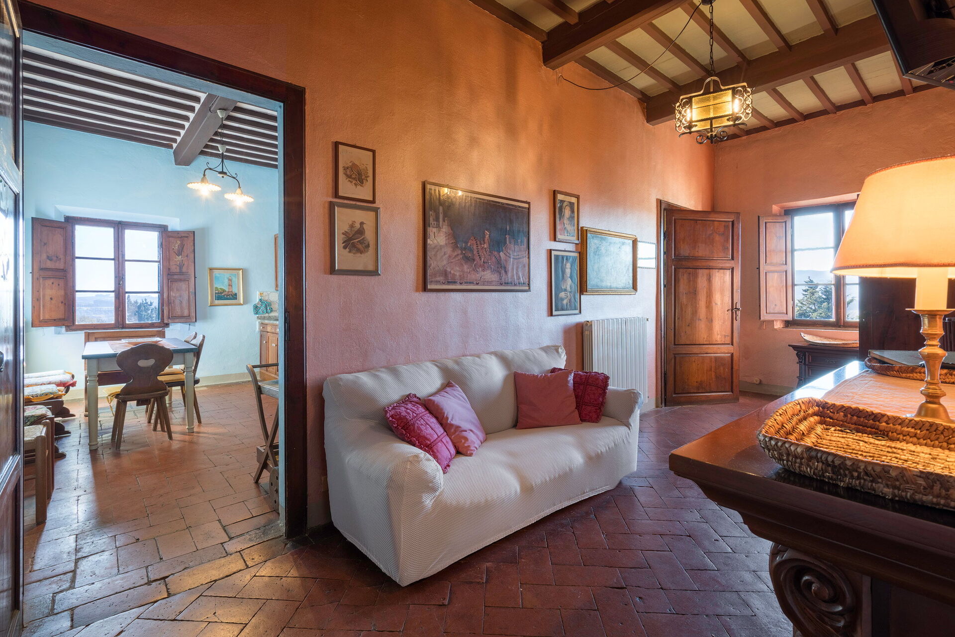 Gli spazi interni si sviluppano al secondo piano, composto da cucina-soggiorno, arredata con tavolo da pranzo, divano e televisione. La zona notte presenta 3 camere matrimoniali.